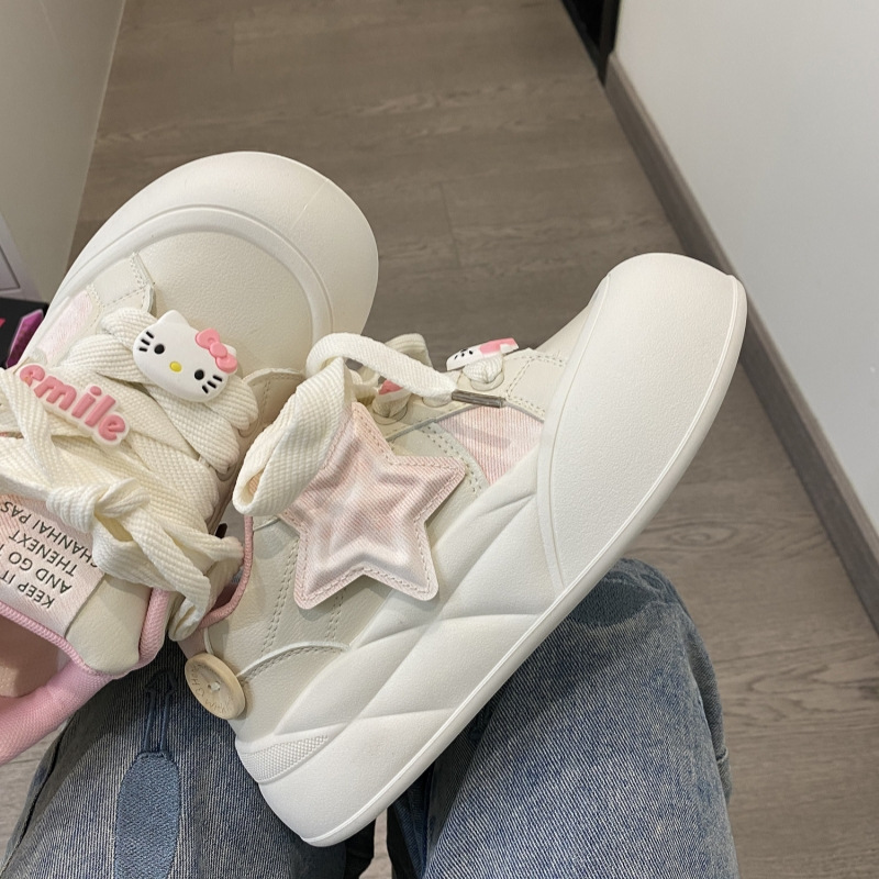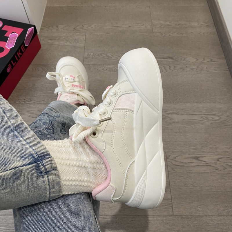 트렌디하고 귀여운 Kt 고양이 흰색 신발 여성용 세련된 홍콩 스타일 캐주얼 신발 여성을위한 모든 경기 두꺼운 슬라브 신발