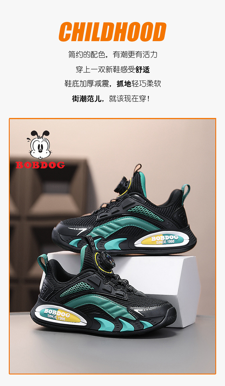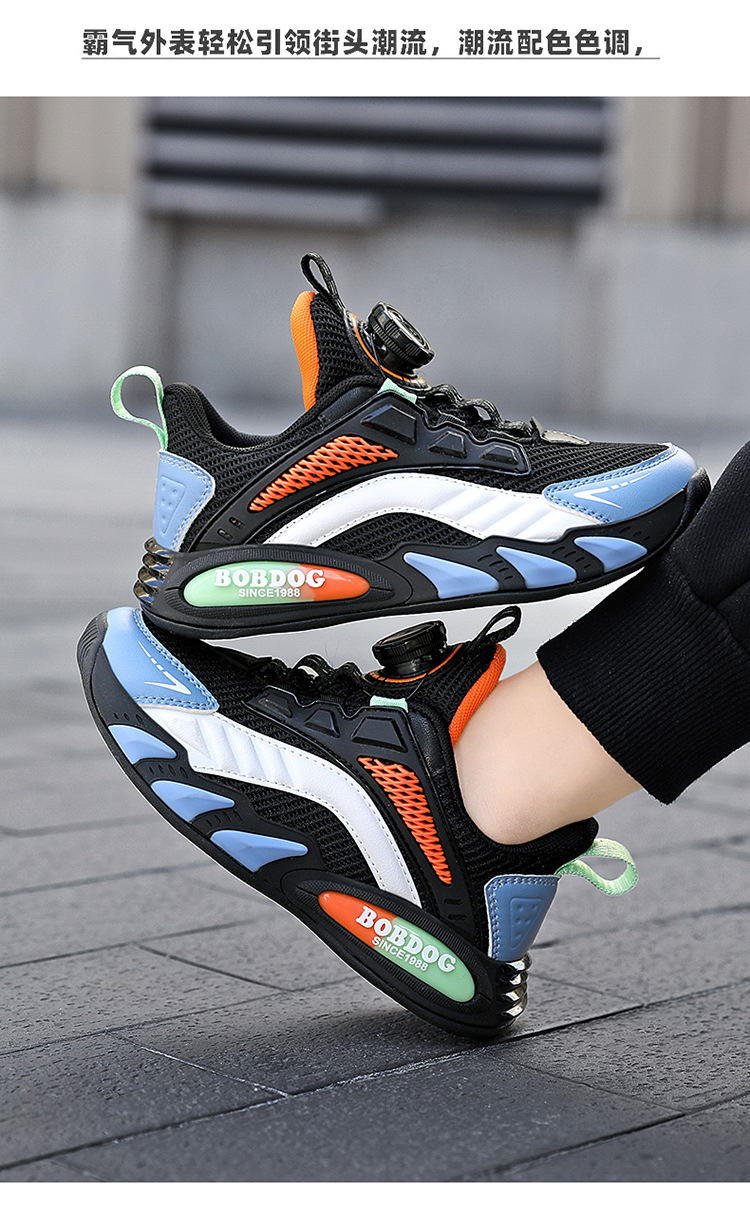 바부 콩 소년 신발 2024 봄과 가을 새로운 어린이 버튼 운동화 큰 어린이 메쉬 통기성 농구 신발스토어 가기