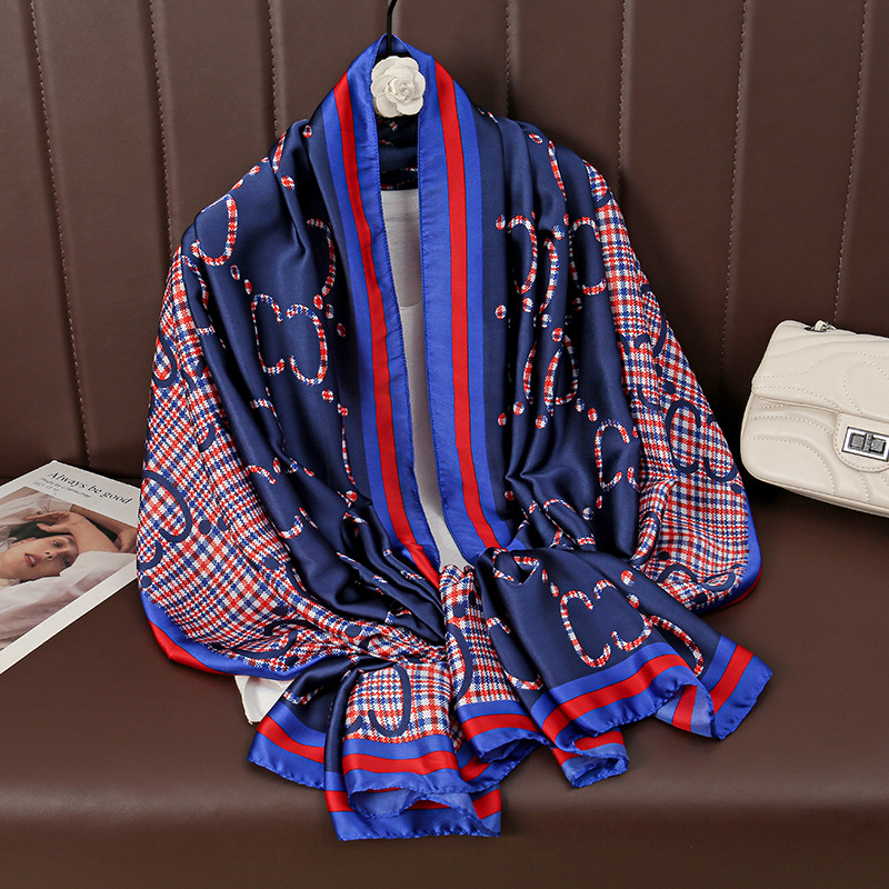 패션 대외 무역 기하학적 말굽 버클 실크 같은 긴 실크 스카프 에어컨 여성 외부 목 보호 대형 목도리 스카프
