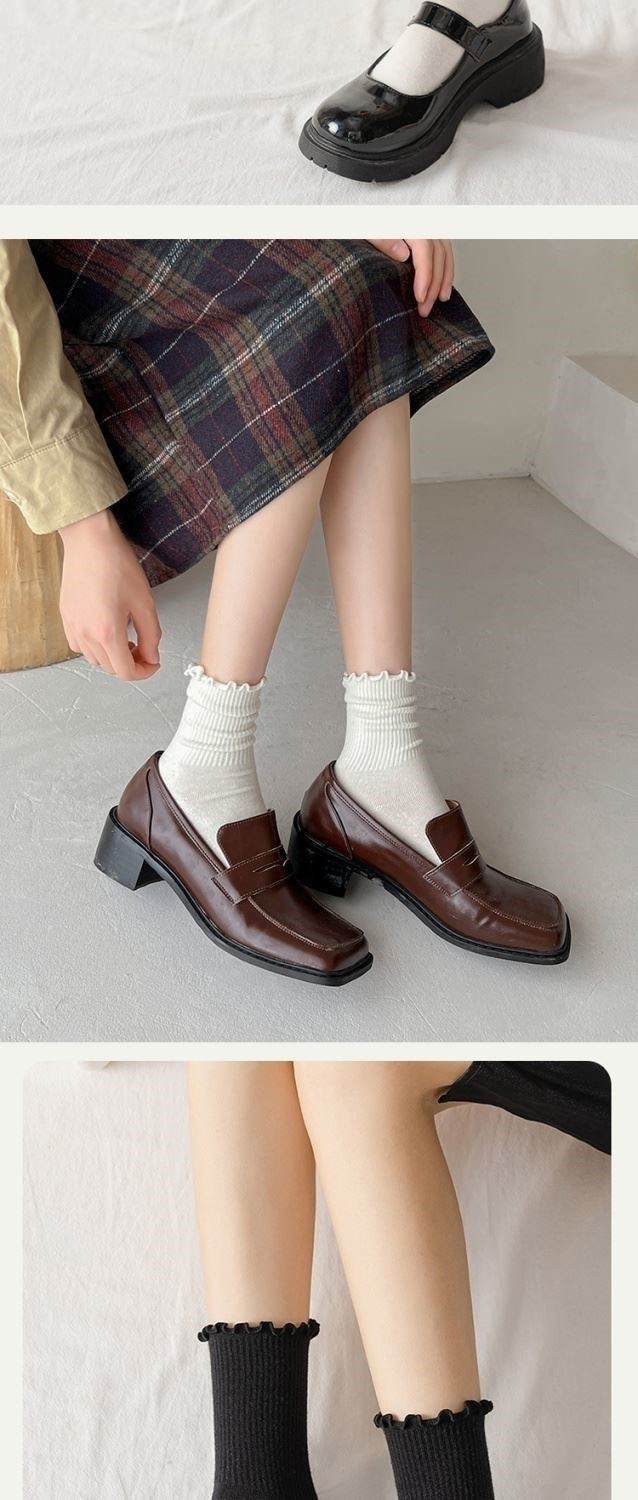 나무 귀 JK 양말 여성 중간 길이 양말 봄과 가을 메리 제인 작은 가죽 신발 여름 흑백 레이스 팩 양말스토어 가기
