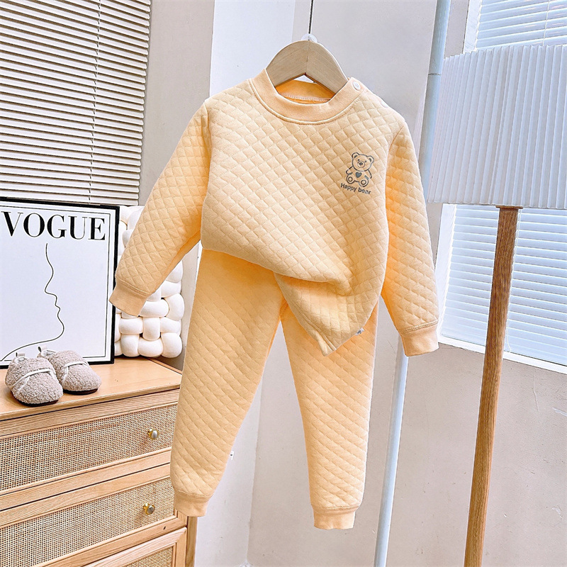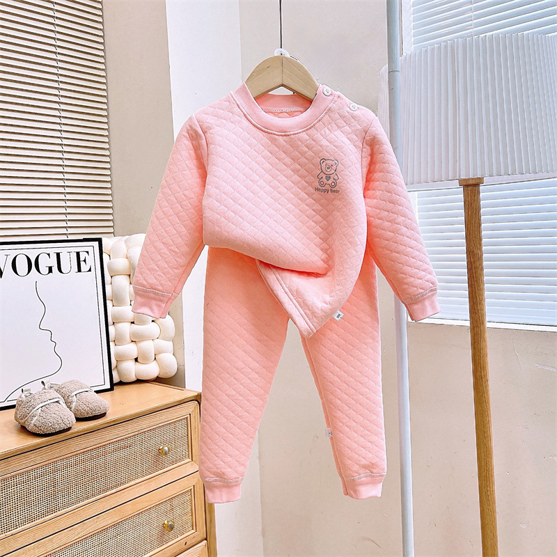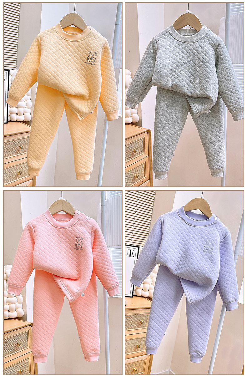소년 소녀를위한 어린이 3 층 면화 따뜻한 세트 가을과 겨울 새로운 속옷 아기 두꺼운 가을 바지스토어 가기