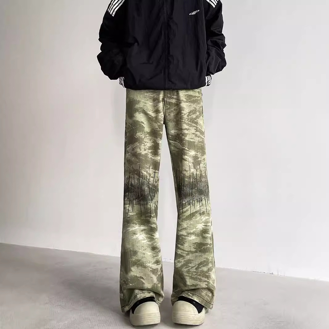 봄과 가을 미국 스타일의 복고풍 강아지 잘 생긴 위장 청바지 남자의 넓은 다리 스트레이트 튜브 하이 스트리트 디자인 센스 긴 바지 남자스토어 가기