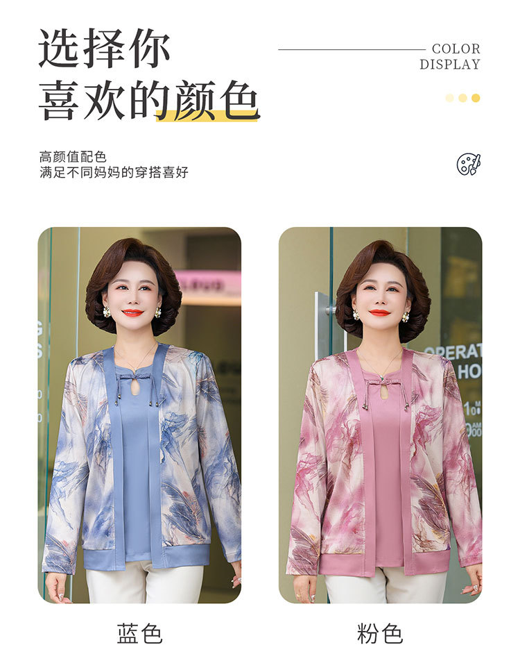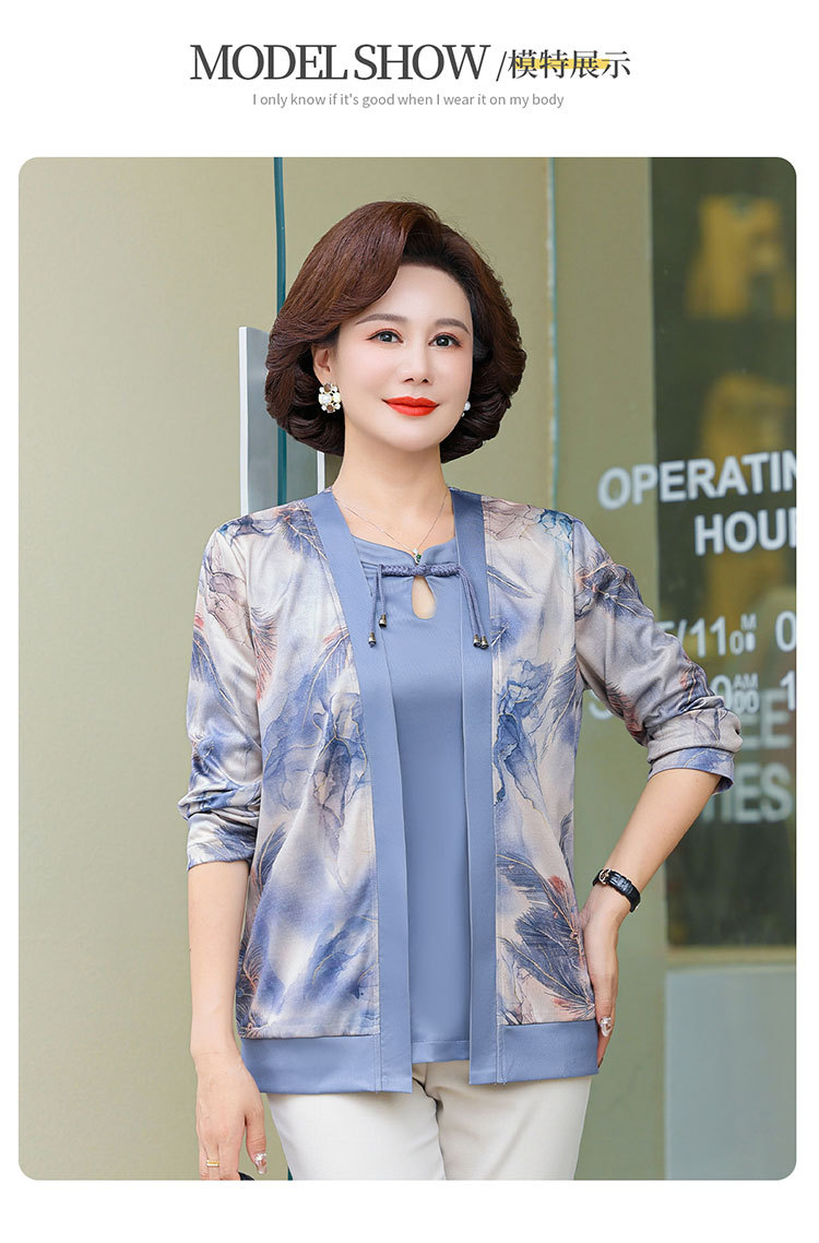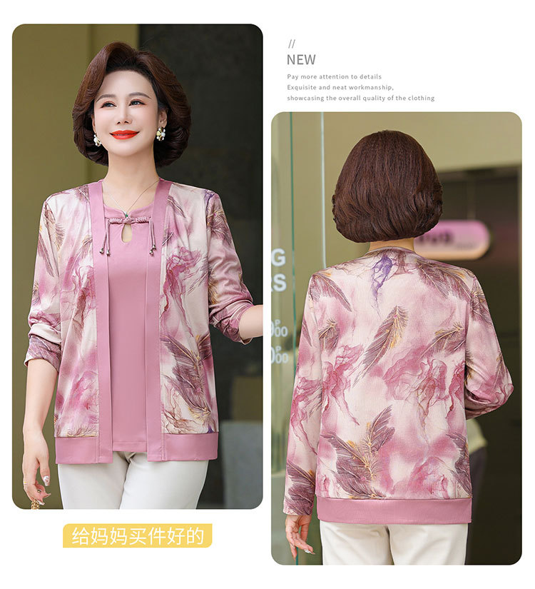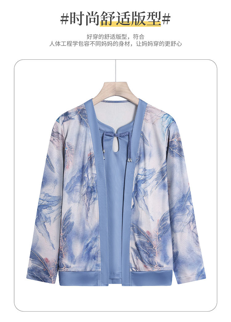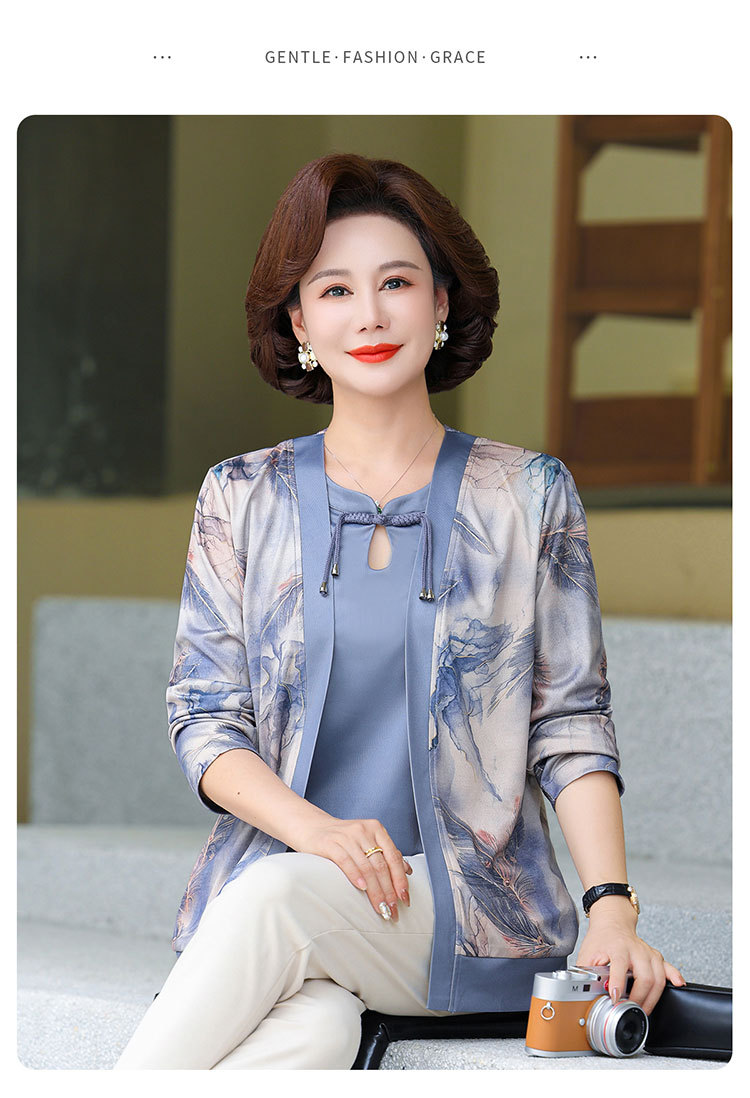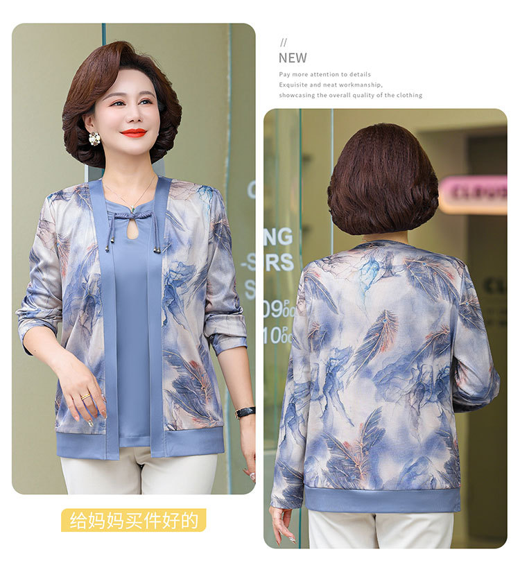 2024 년 어머니 봄과 가을 옷 국가 스타일 서양식 투피스 세트 중년 및 노인 카디건 봄과 가을 여성의 새로운 우아한 작은 셔츠스토어 가기