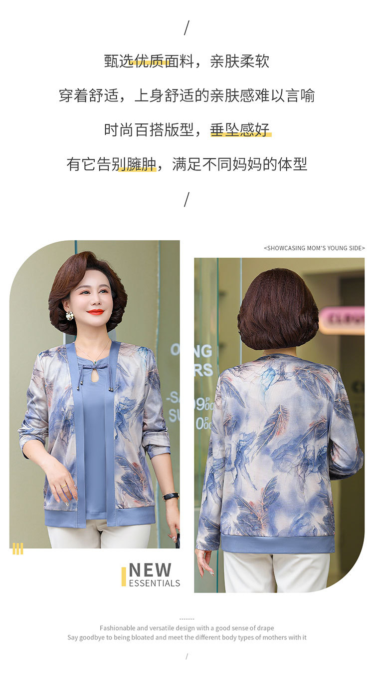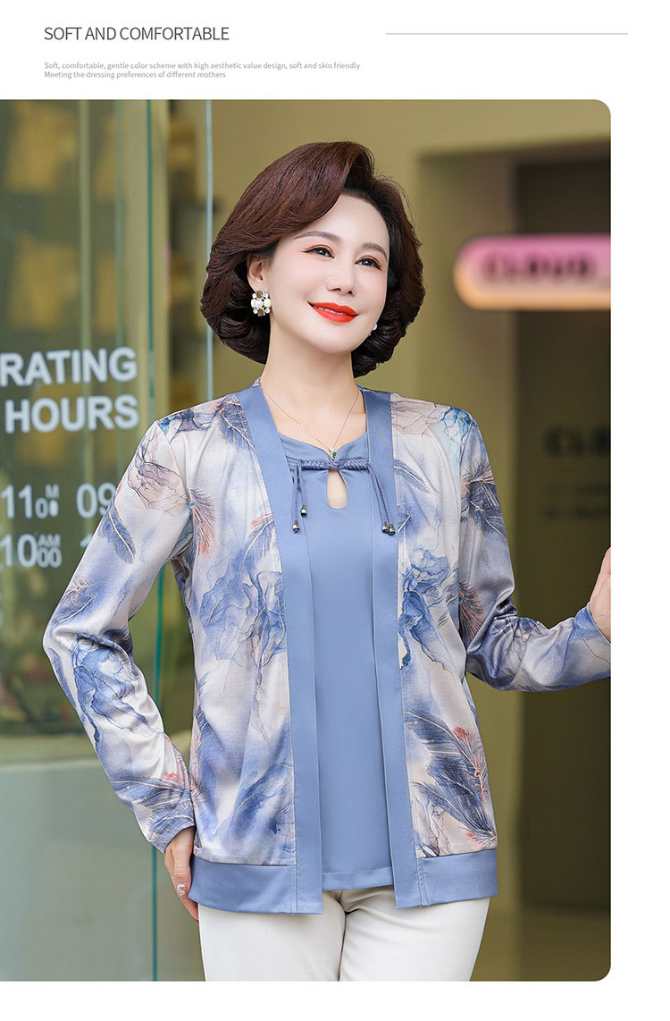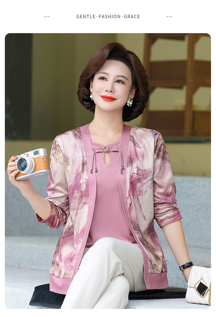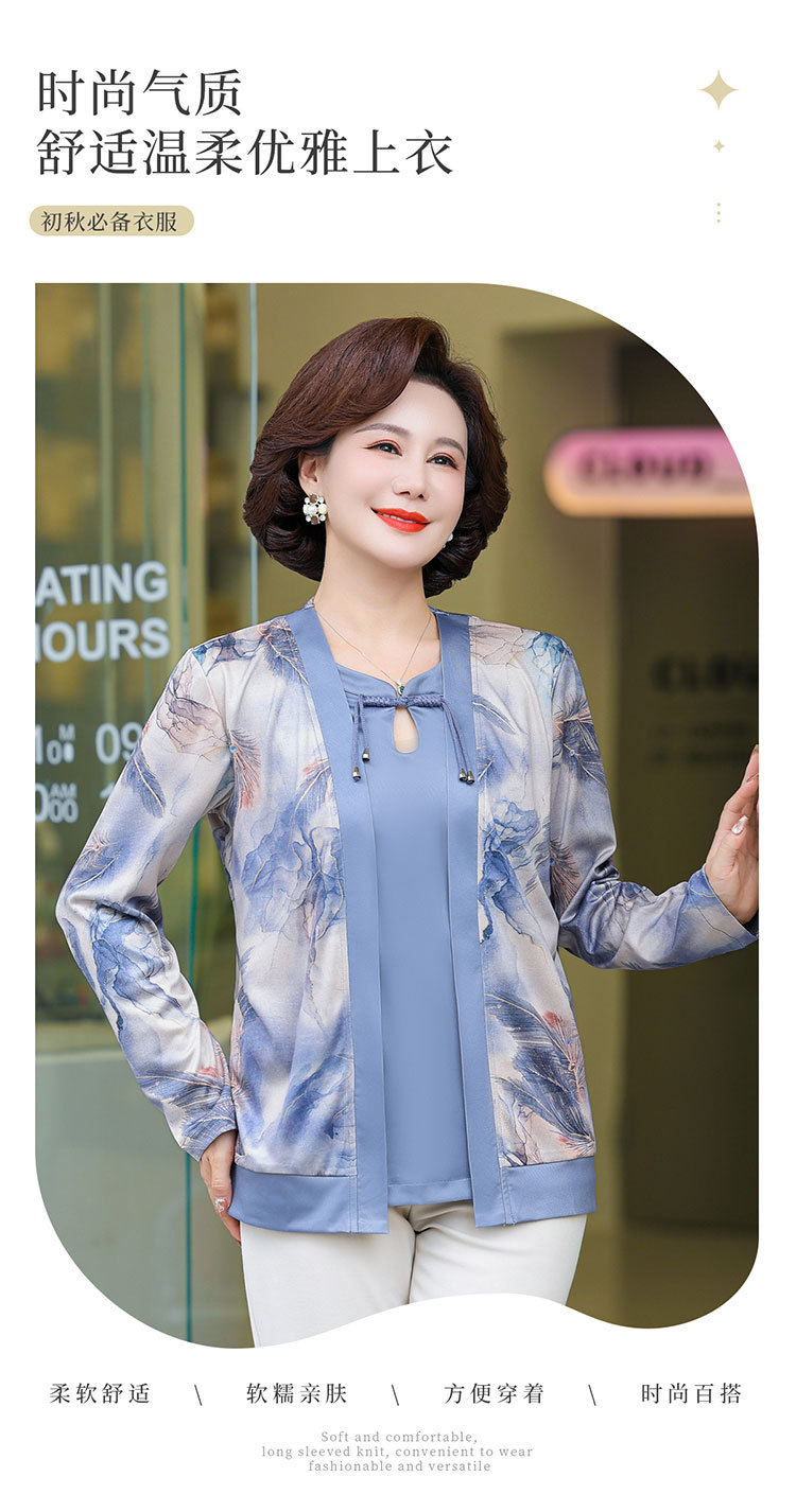 2024 년 어머니 봄과 가을 옷 국가 스타일 서양식 투피스 세트 중년 및 노인 카디건 봄과 가을 여성의 새로운 우아한 작은 셔츠스토어 가기