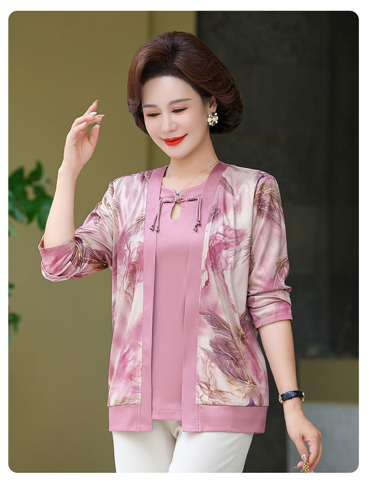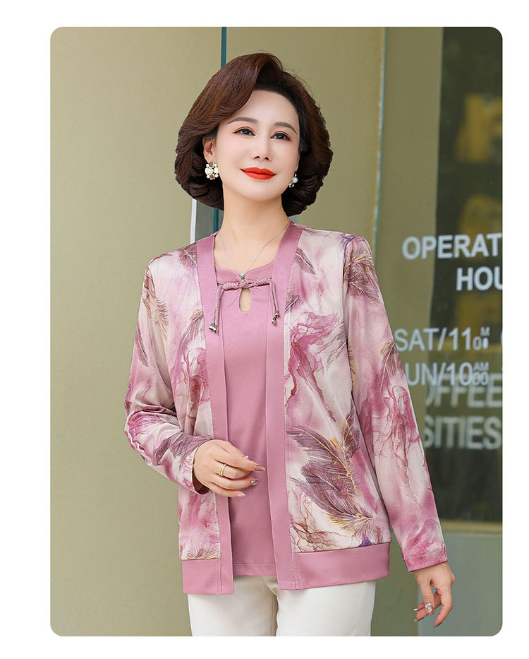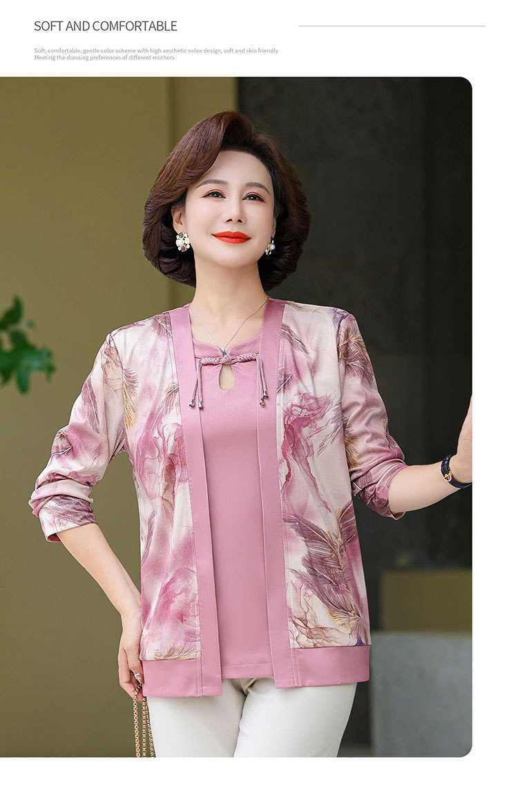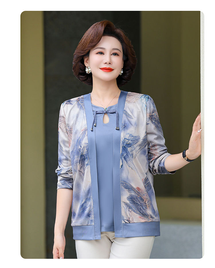 2024 년 어머니 봄과 가을 옷 국가 스타일 서양식 투피스 세트 중년 및 노인 카디건 봄과 가을 여성의 새로운 우아한 작은 셔츠