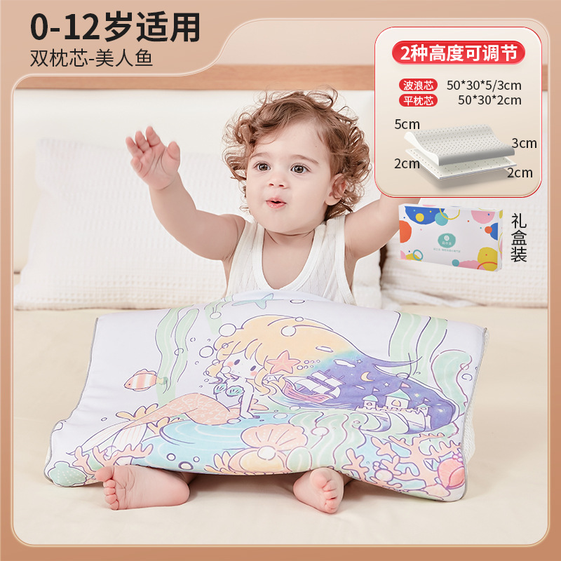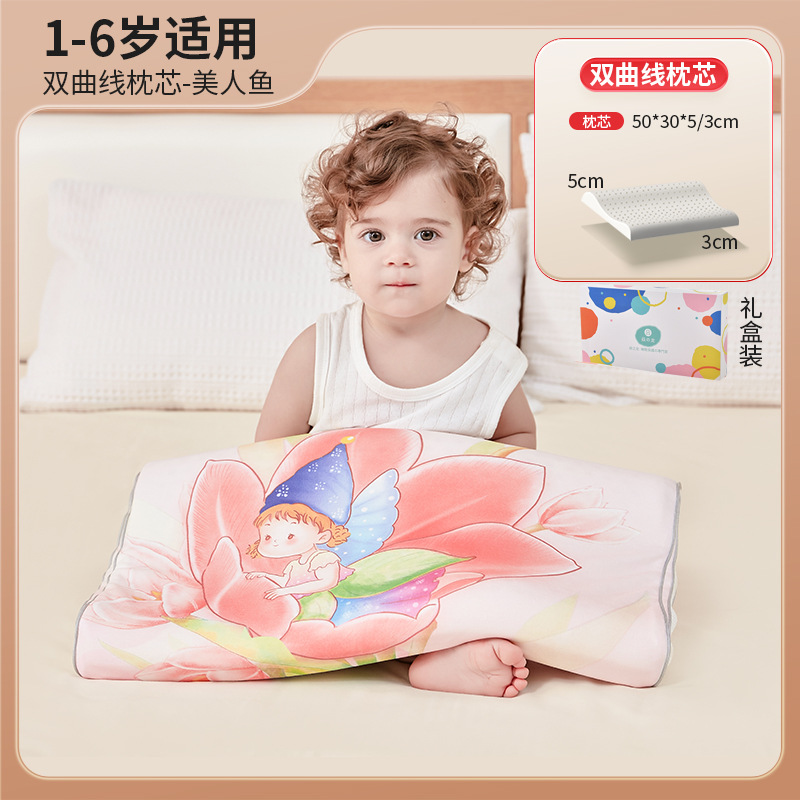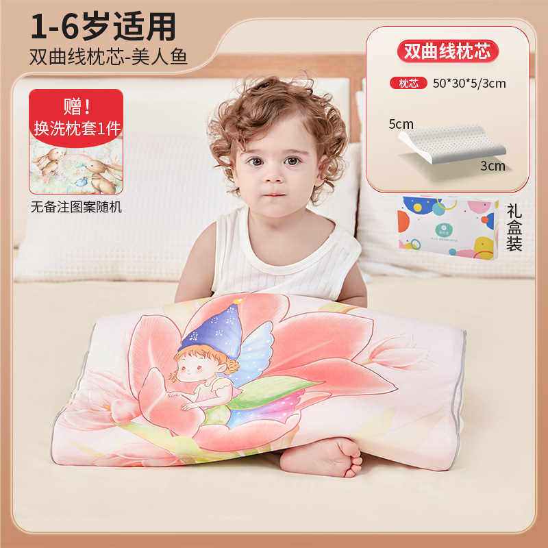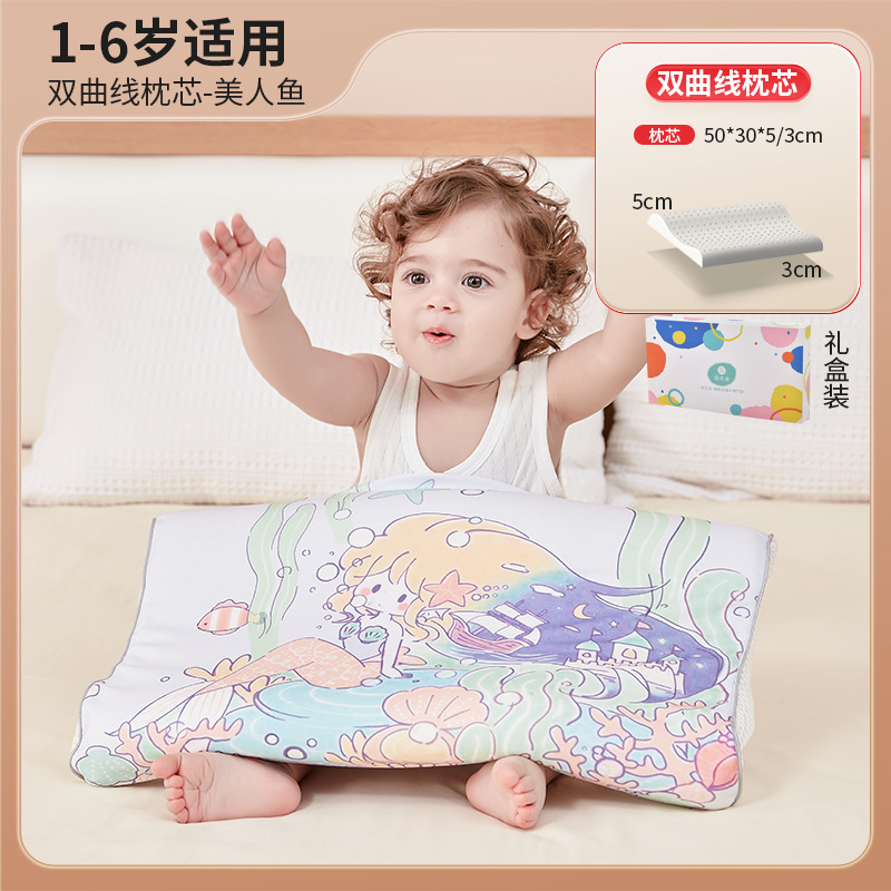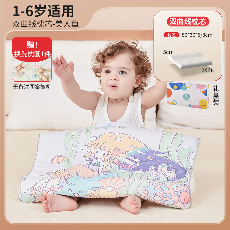 1-3-6세 이상 어린이용 라텍스 베개 순면 A급 유아 아기 어린이 학생용 베개 측면 수면용 베개 코어스토어 가기