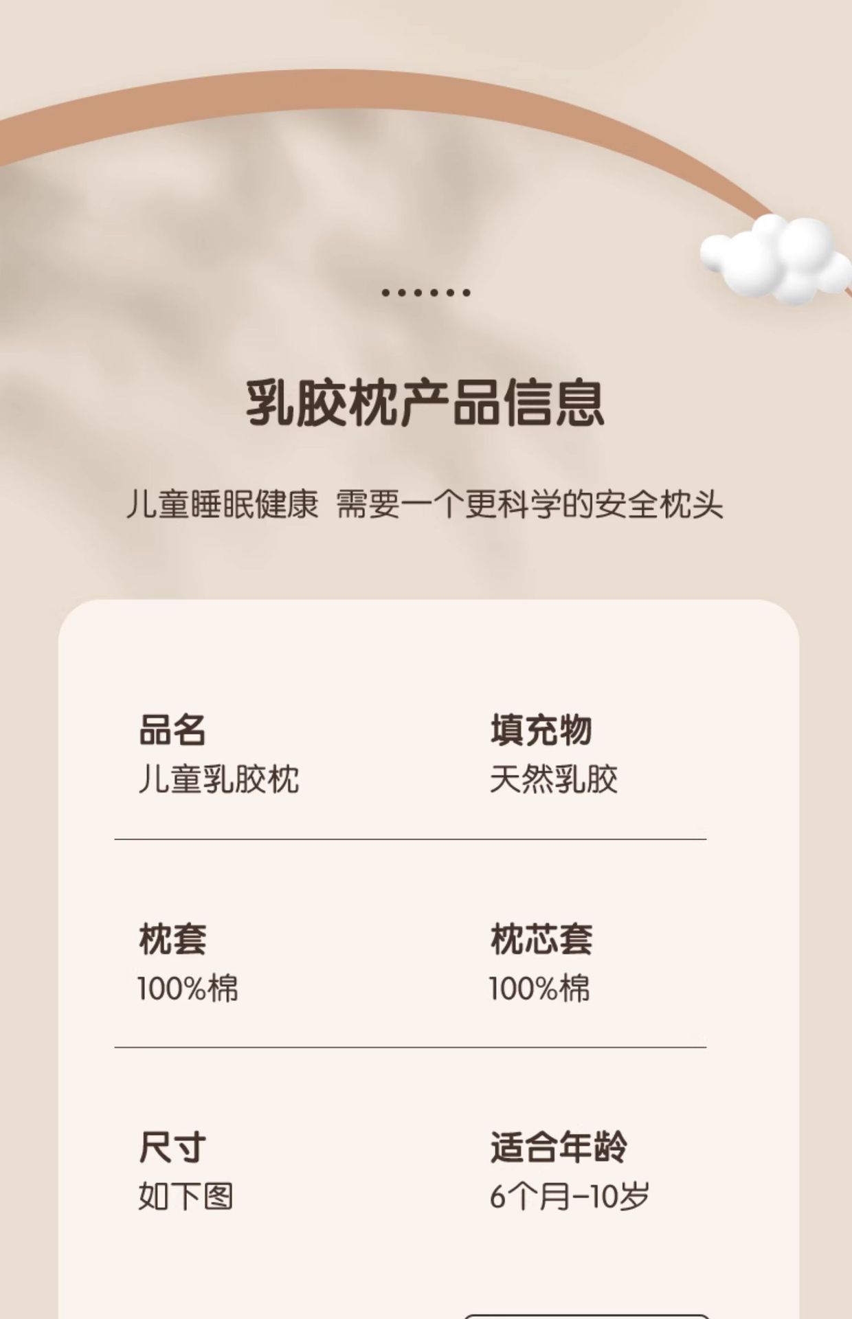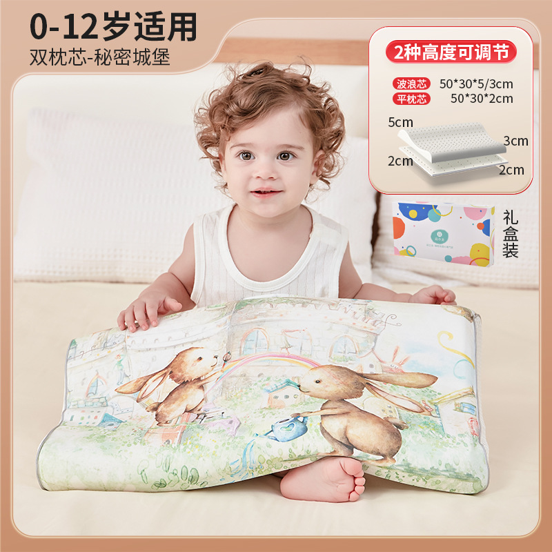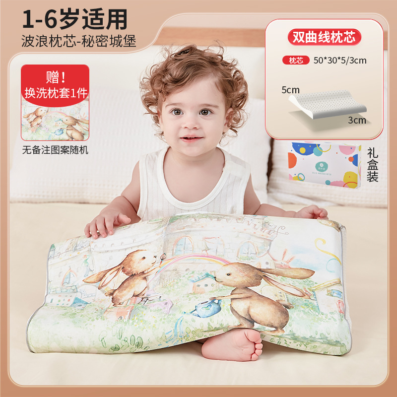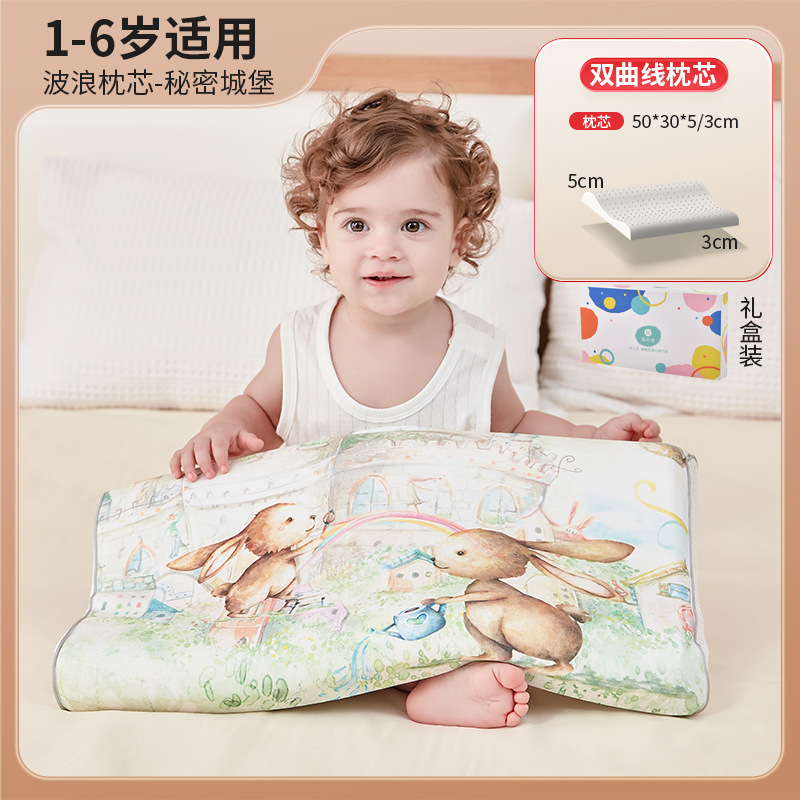 1-3-6세 이상 어린이용 라텍스 베개 순면 A급 유아 아기 어린이 학생용 베개 측면 수면용 베개 코어스토어 가기