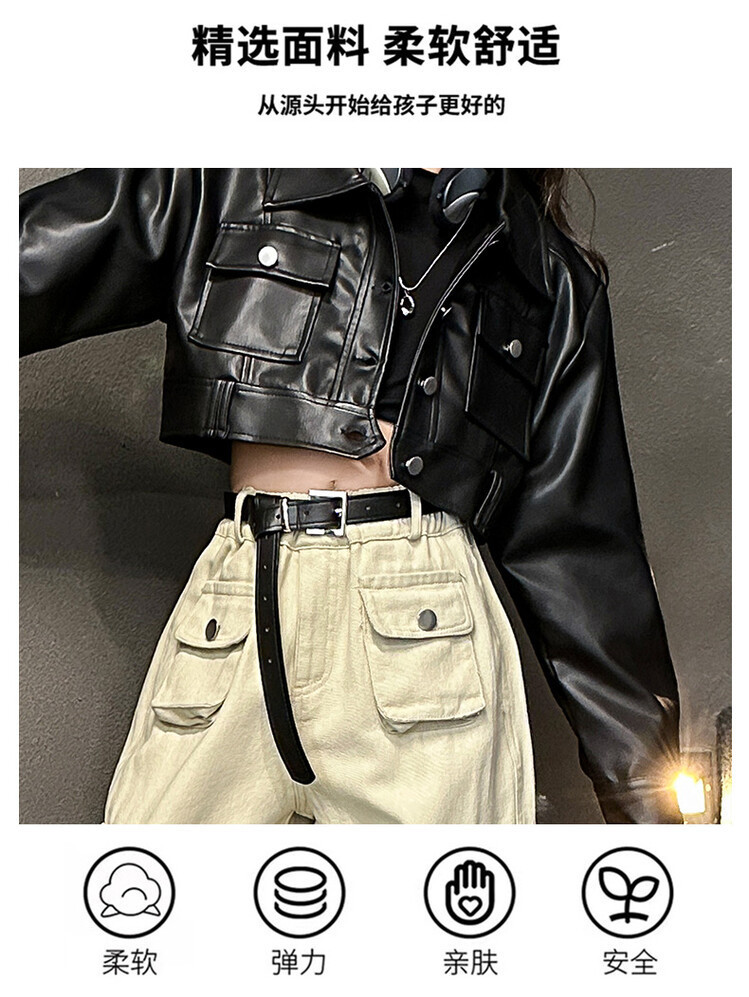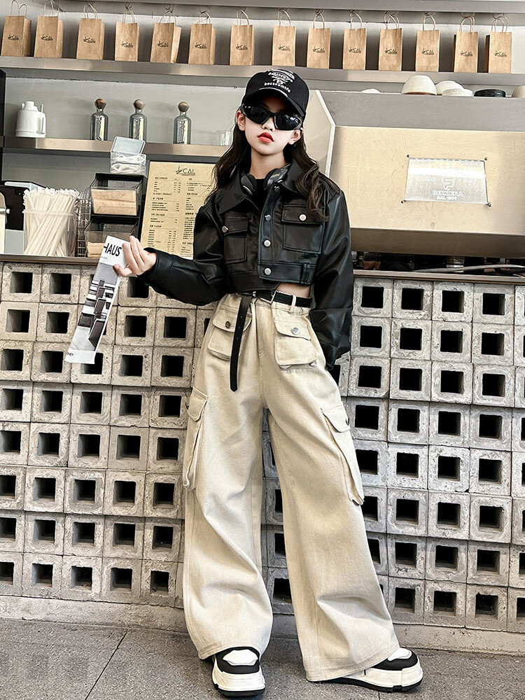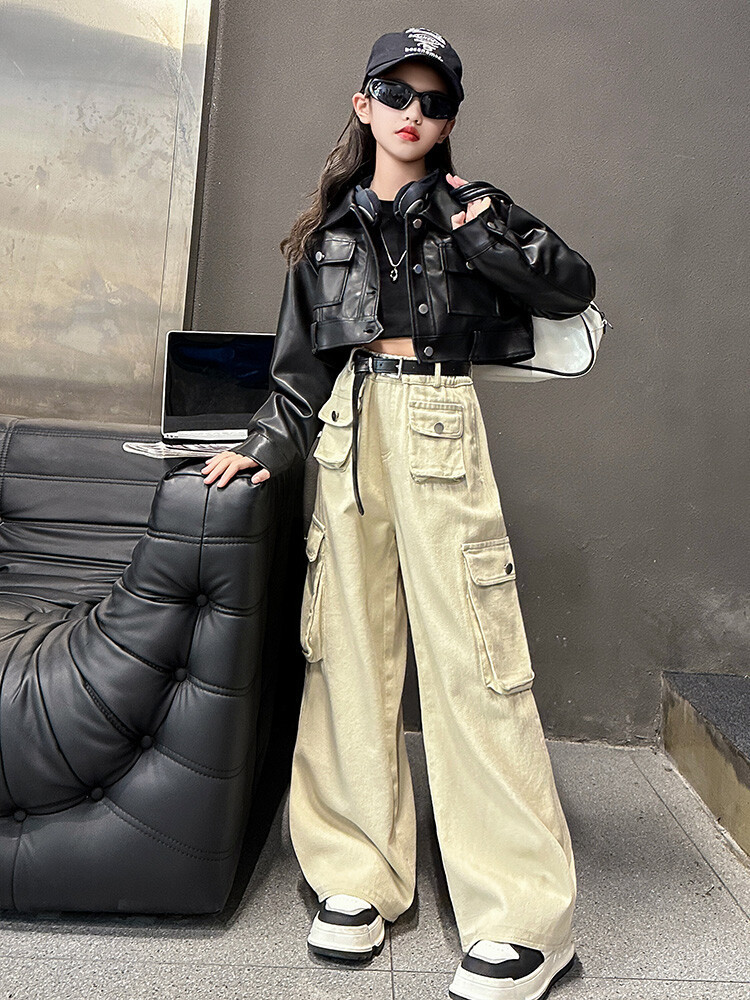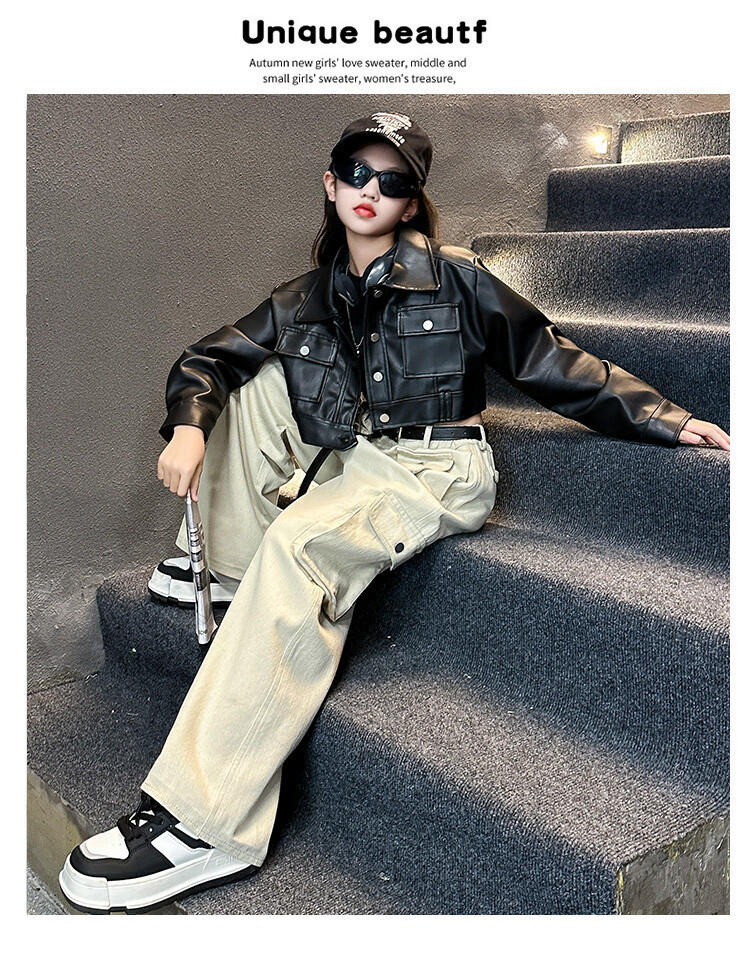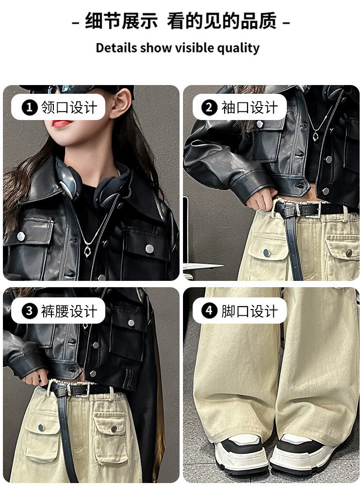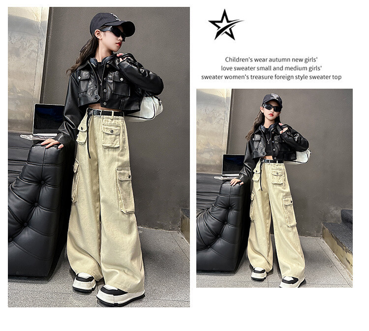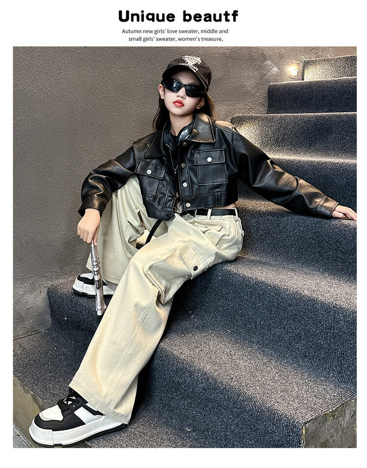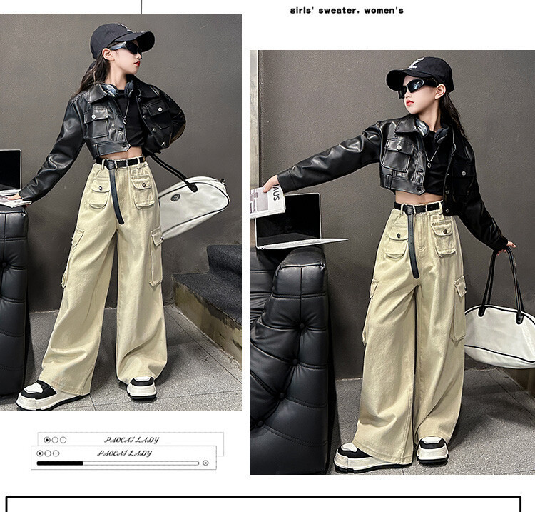 대외 무역 소녀 가죽 코트 바지 한 팬 차오 퀴어 어린이 의류 소녀 유행 봄 가을 인터넷 연예인 투피스 세트스토어 가기