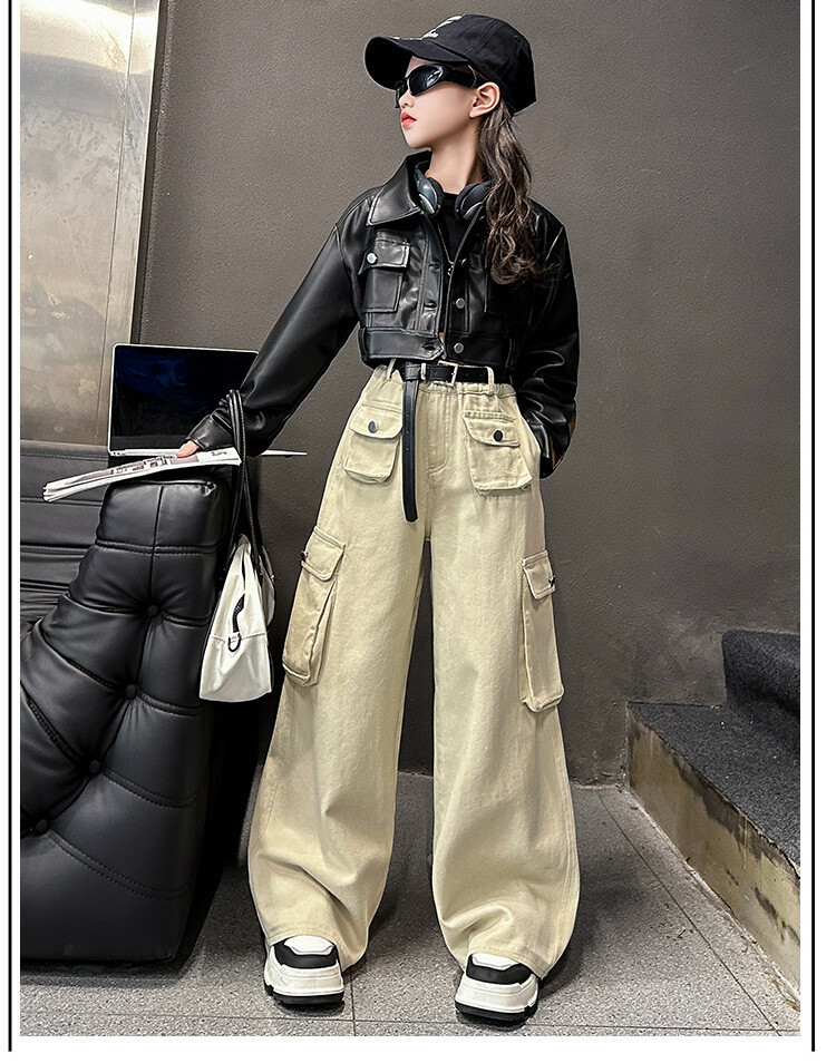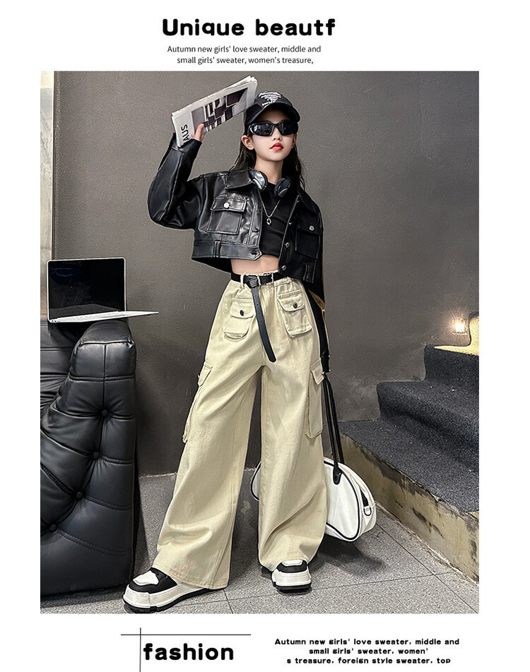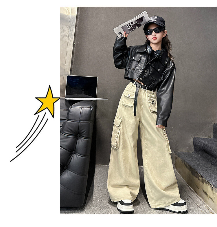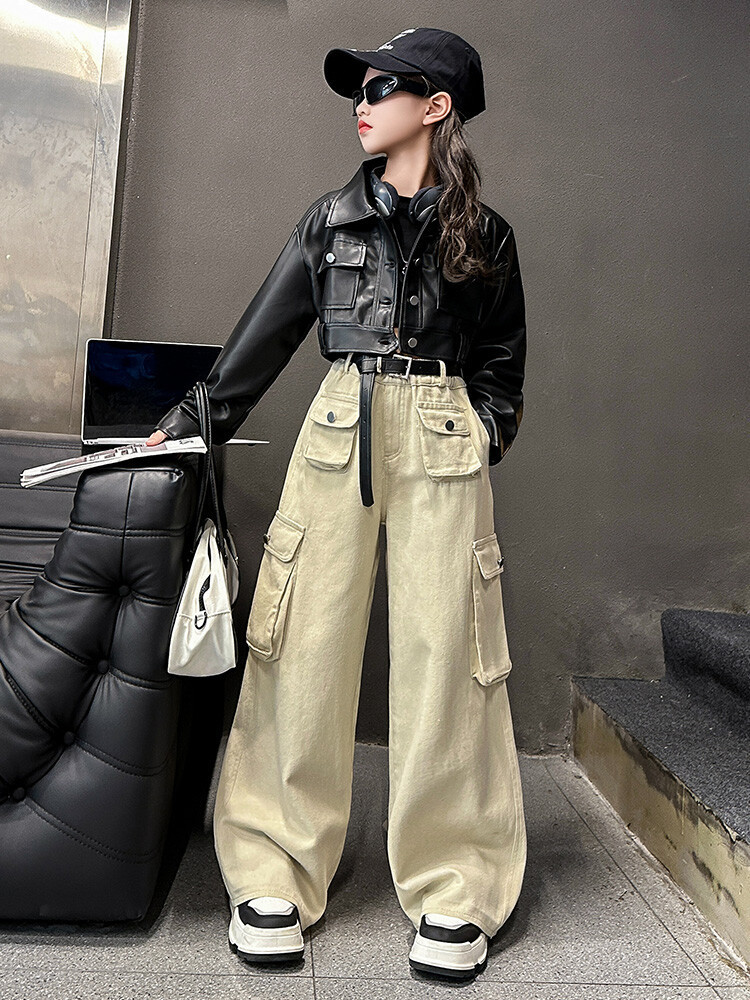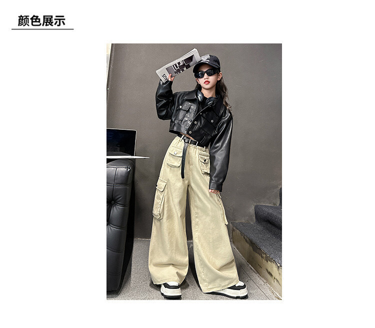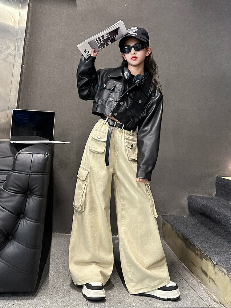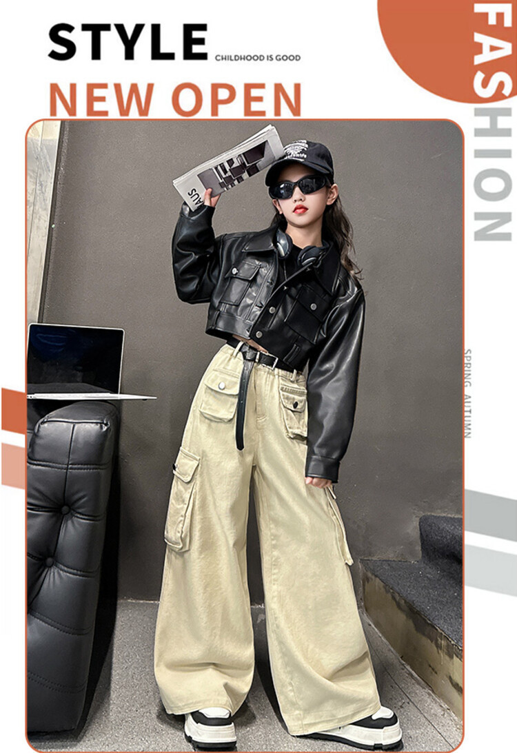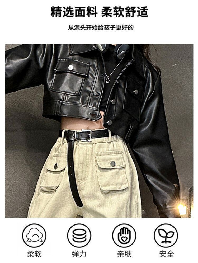 대외 무역 소녀 가죽 코트 바지 한 팬 차오 퀴어 어린이 의류 소녀 유행 봄 가을 인터넷 연예인 투피스 세트스토어 가기