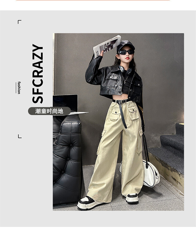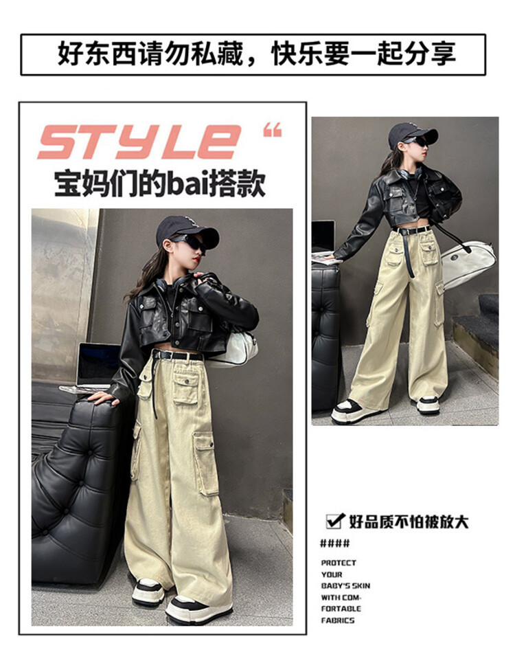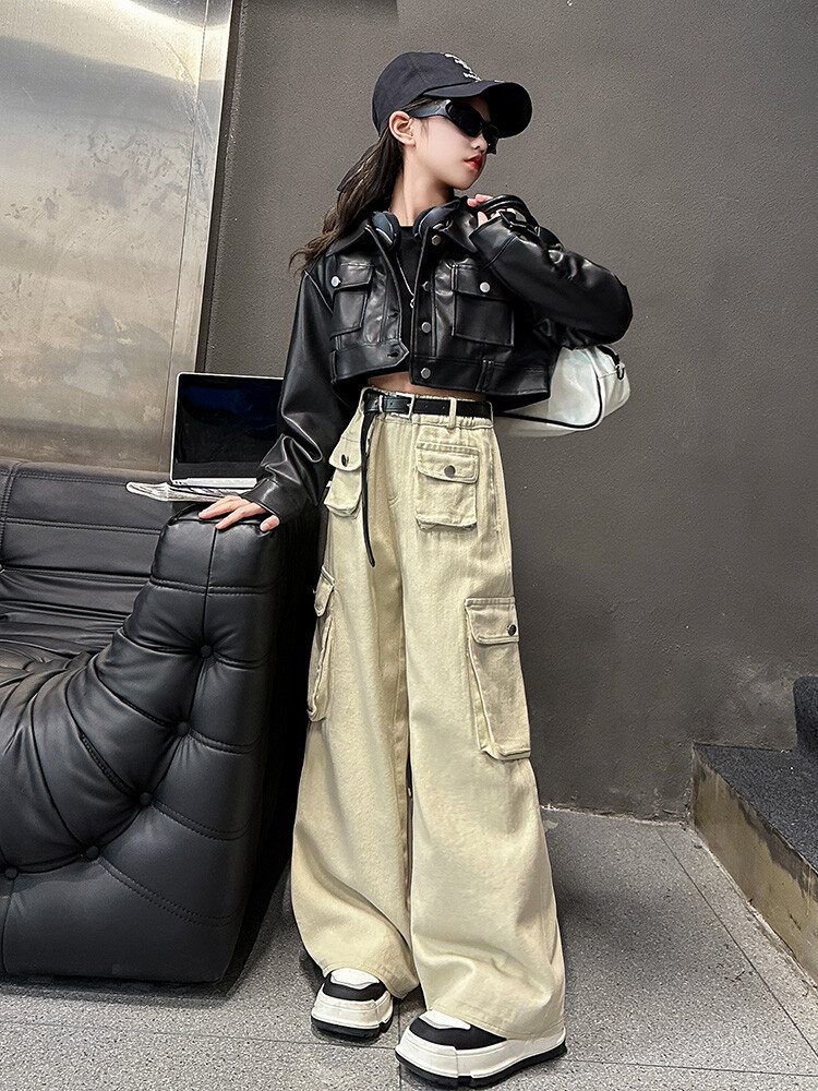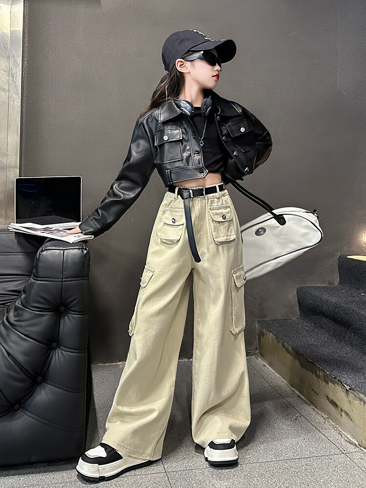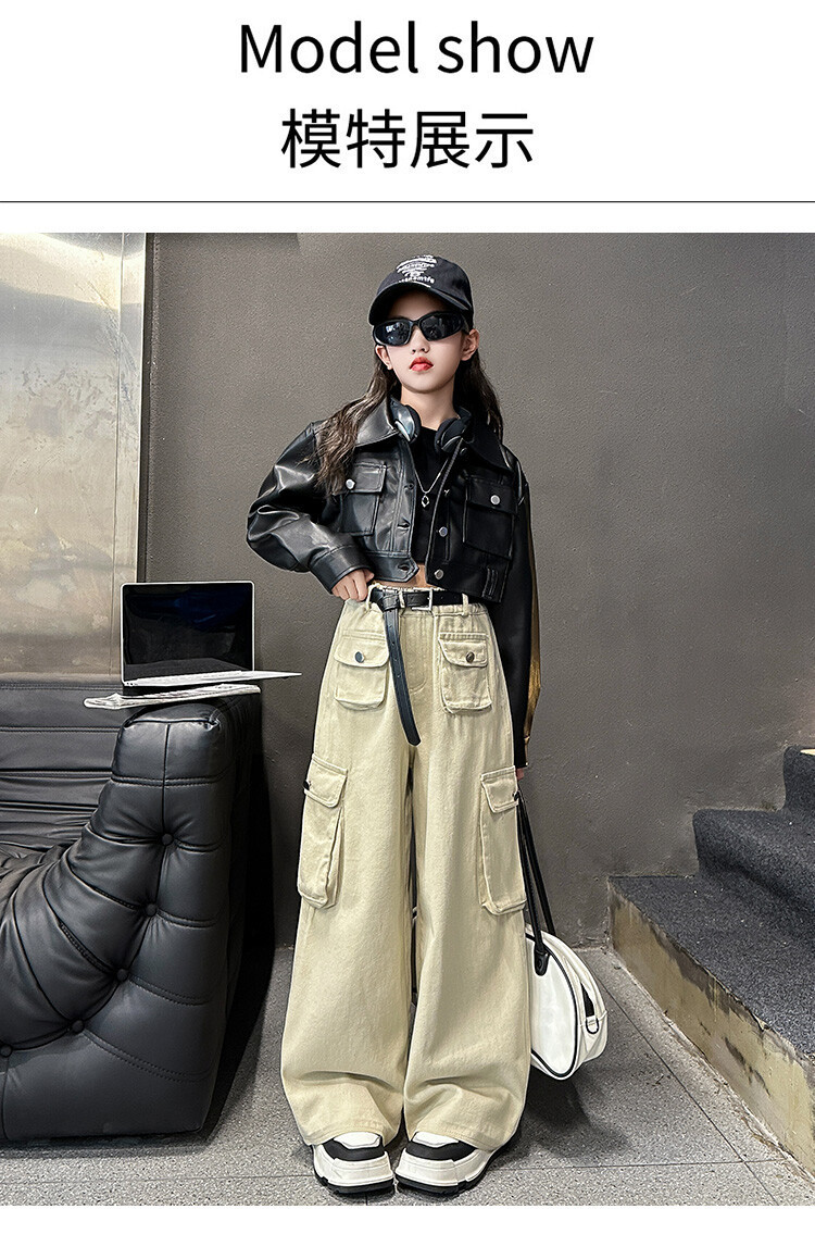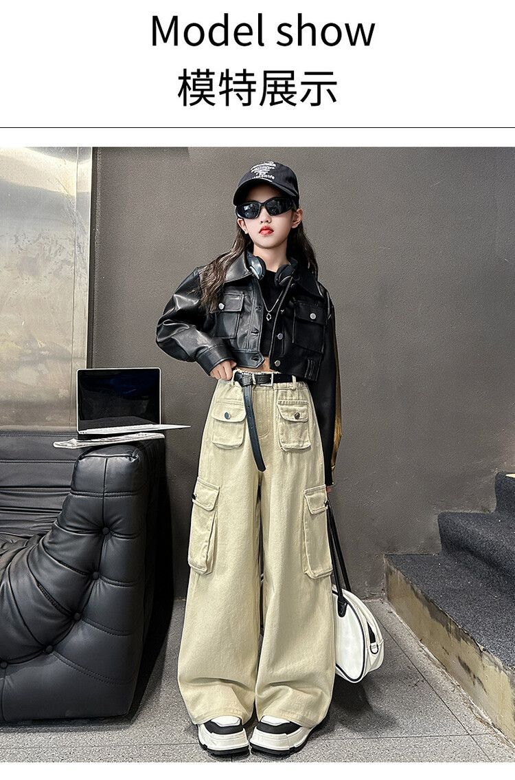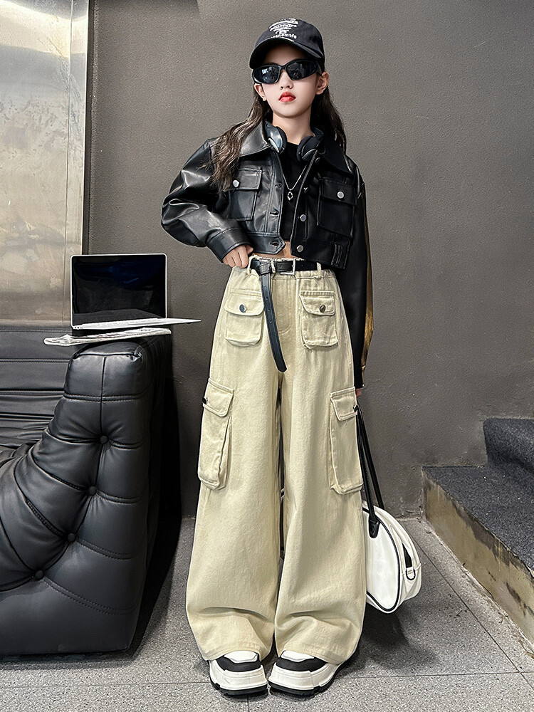 대외 무역 소녀 가죽 코트 바지 한 팬 차오 퀴어 어린이 의류 소녀 유행 봄 가을 인터넷 연예인 투피스 세트스토어 가기