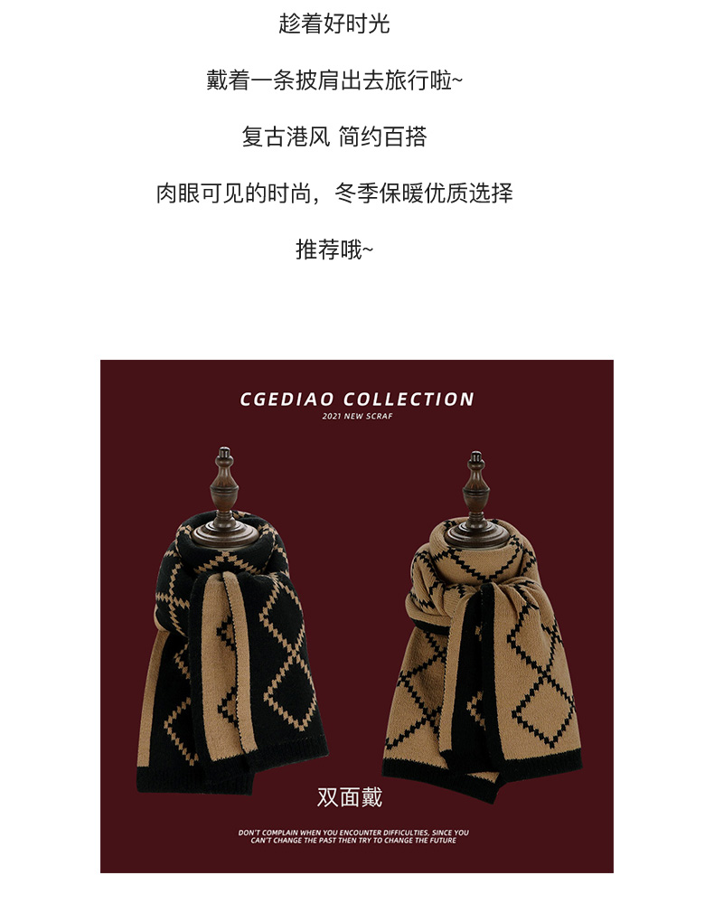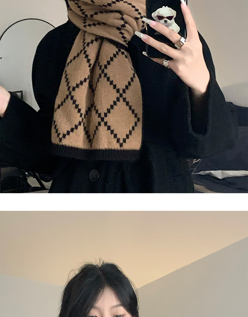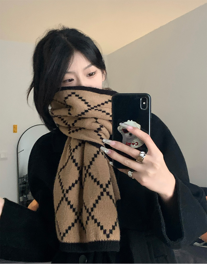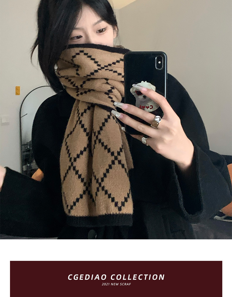 스카프 소녀의 2024 새로운 겨울 양면 올 매치 하이 엔드 센스 따뜻한 두꺼운 양모 니트 격자 무늬 스카프 패션스토어 가기