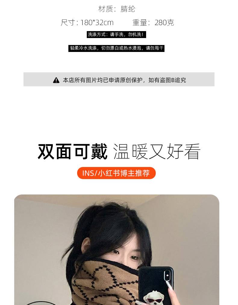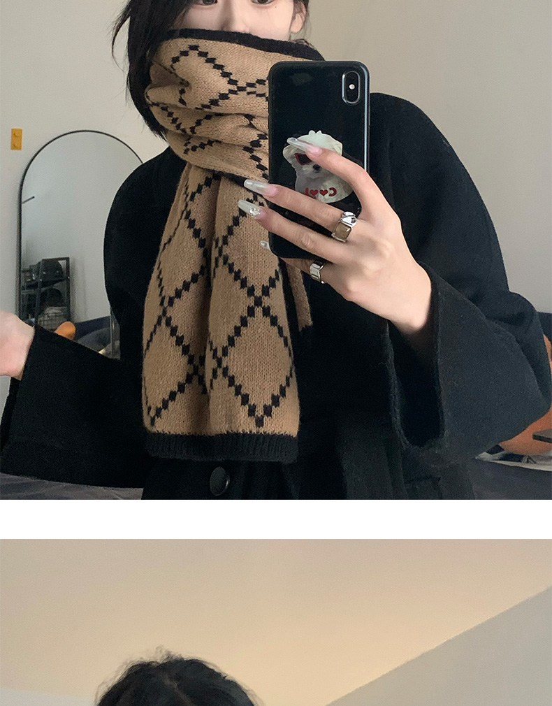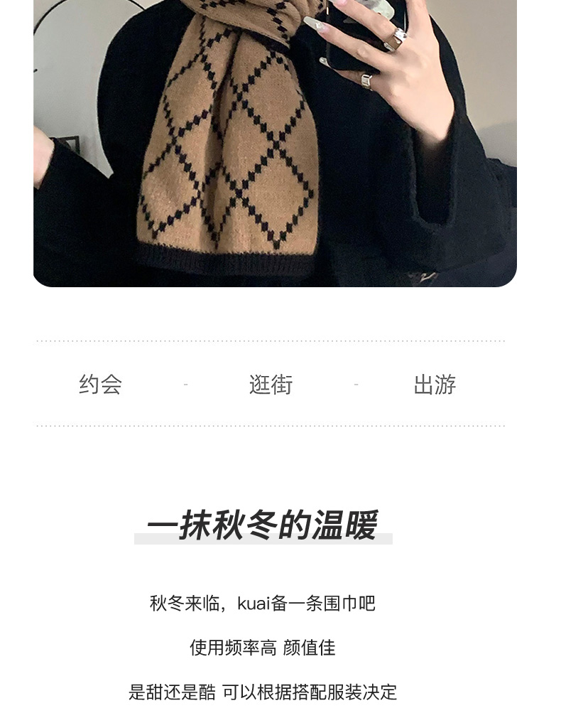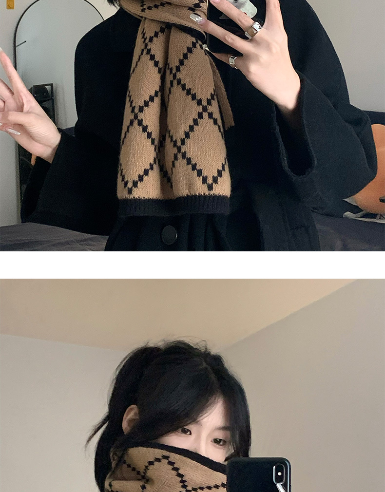 스카프 소녀의 2024 새로운 겨울 양면 올 매치 하이 엔드 센스 따뜻한 두꺼운 양모 니트 격자 무늬 스카프 패션스토어 가기
