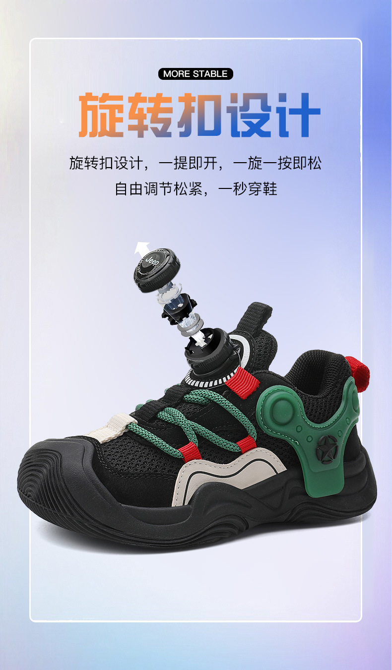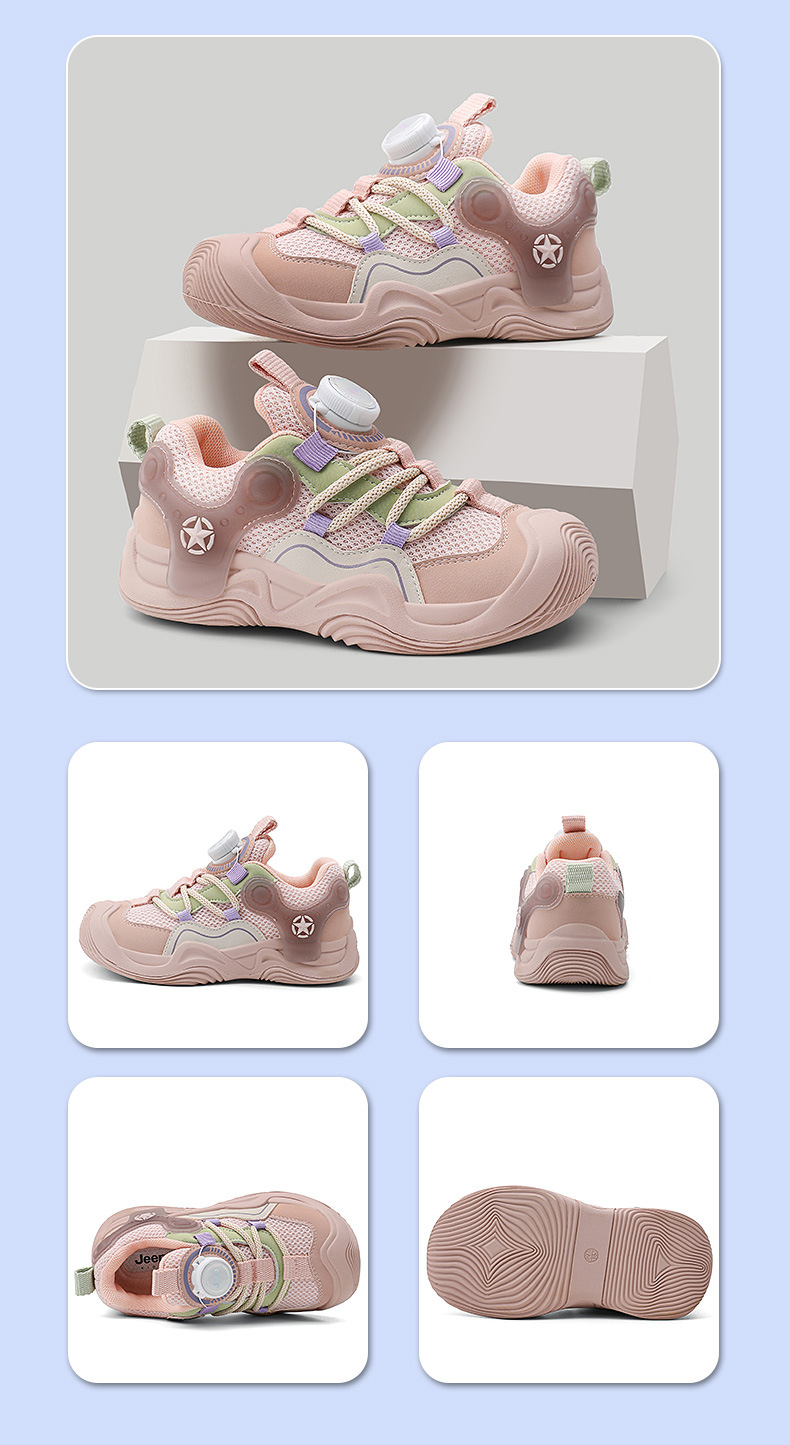 지프 어린이 신발 2024 가을 새로운 도착 운동화 회전 버튼 남성 신발 편안한 경량 여성 신발 올매치 트렌디