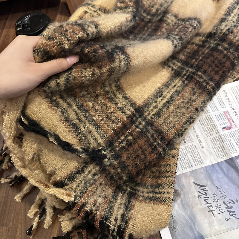 가을과 겨울 따뜻한 스카프 여성 패션 대비 컬러 하이 엔드 올 매치 스카프 2024 새로운 Maillard 체크 무늬 목도리스토어 가기