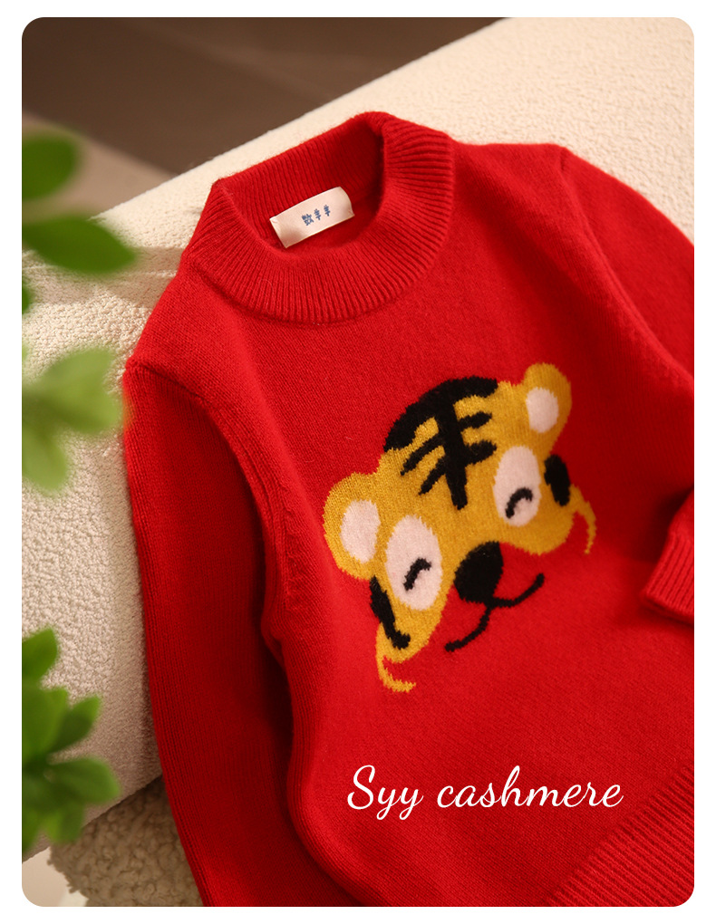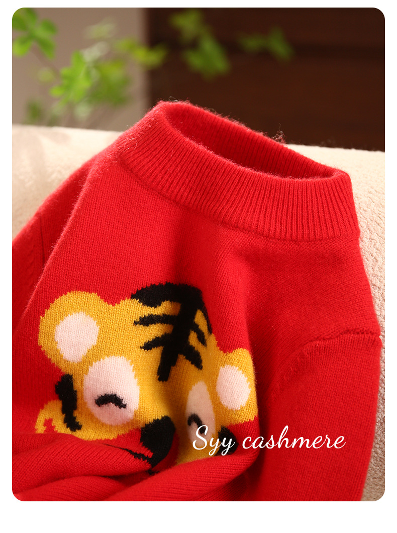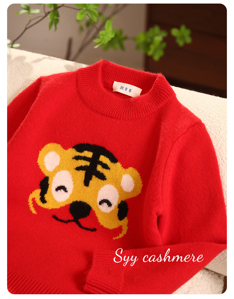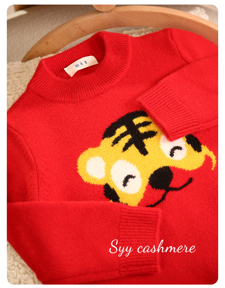 여러 양과 양 가을과 겨울의 새로운 부드럽고 편안한 작은 호랑이 새해 빨간 만화 스웨터 풀오버 라운드 목의 세대