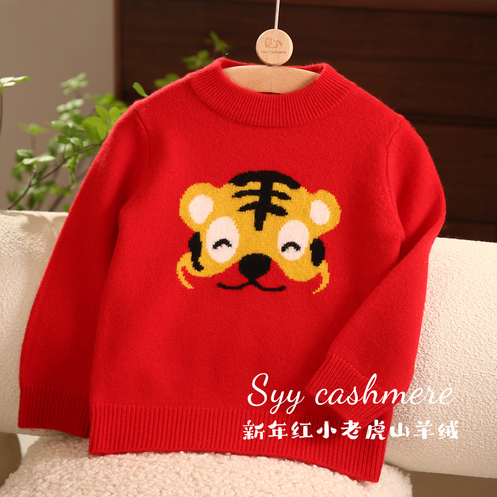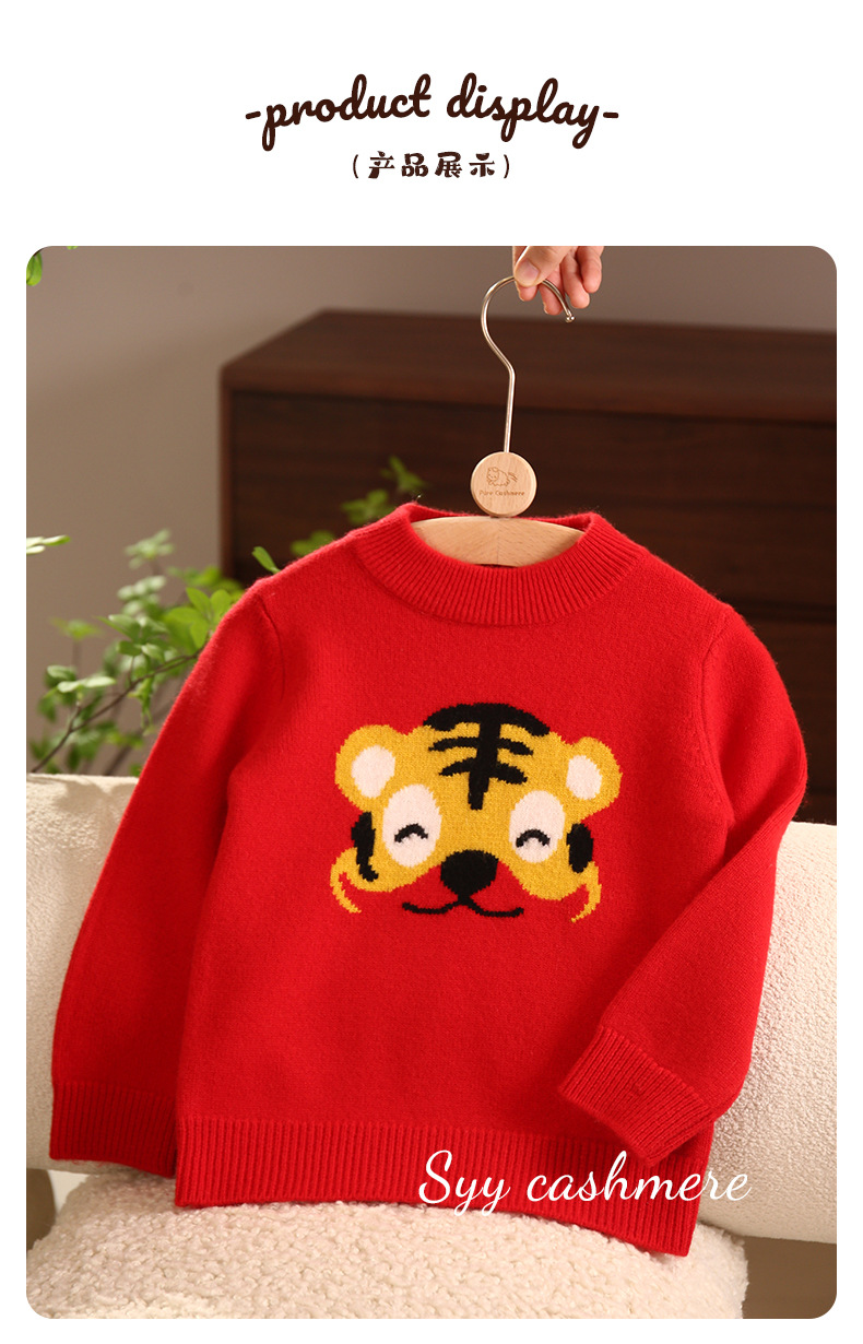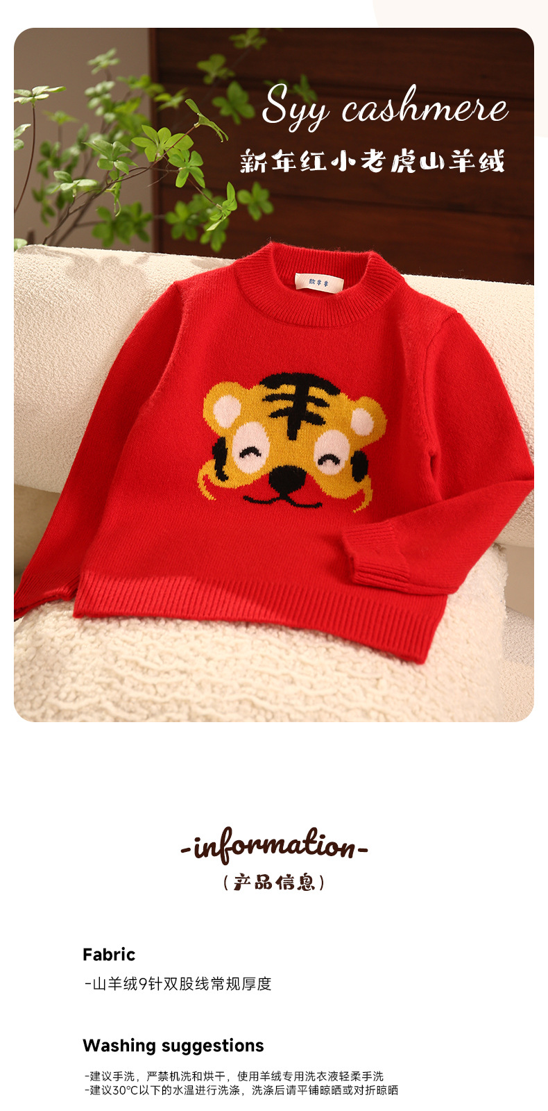 여러 양과 양 가을과 겨울의 새로운 부드럽고 편안한 작은 호랑이 새해 빨간 만화 스웨터 풀오버 라운드 목의 세대