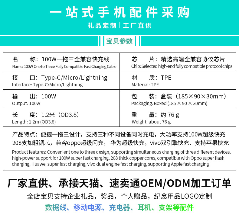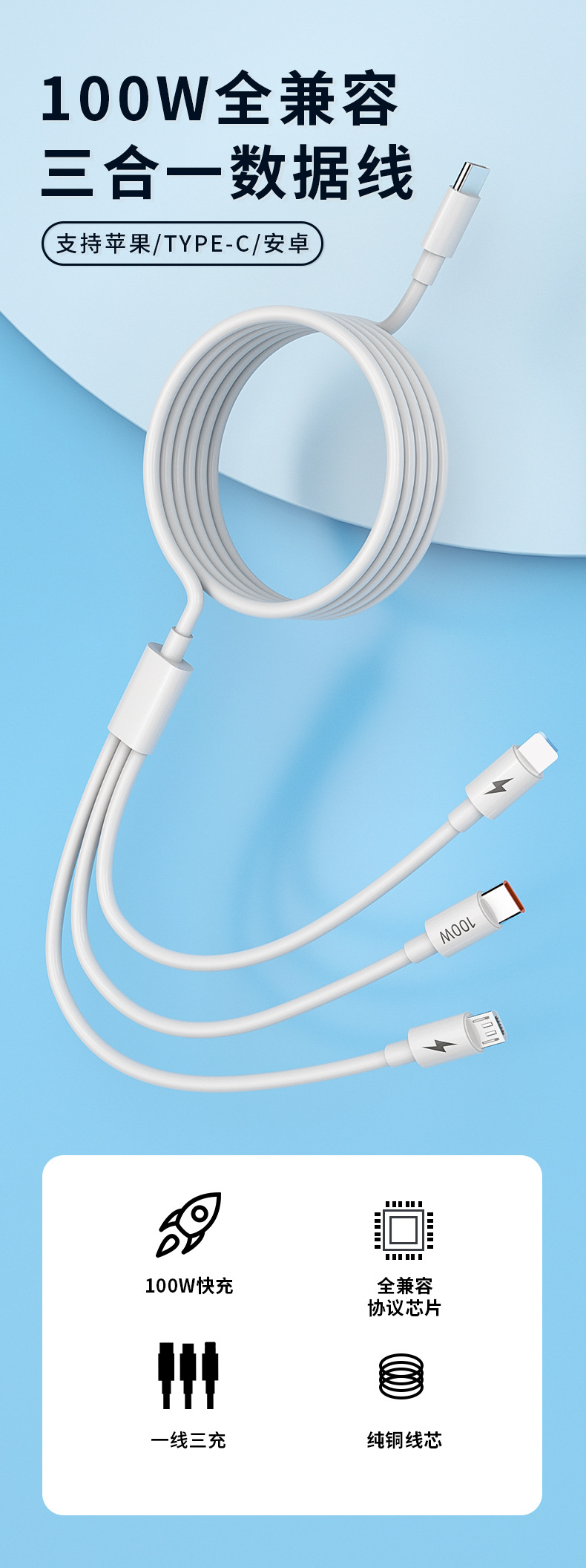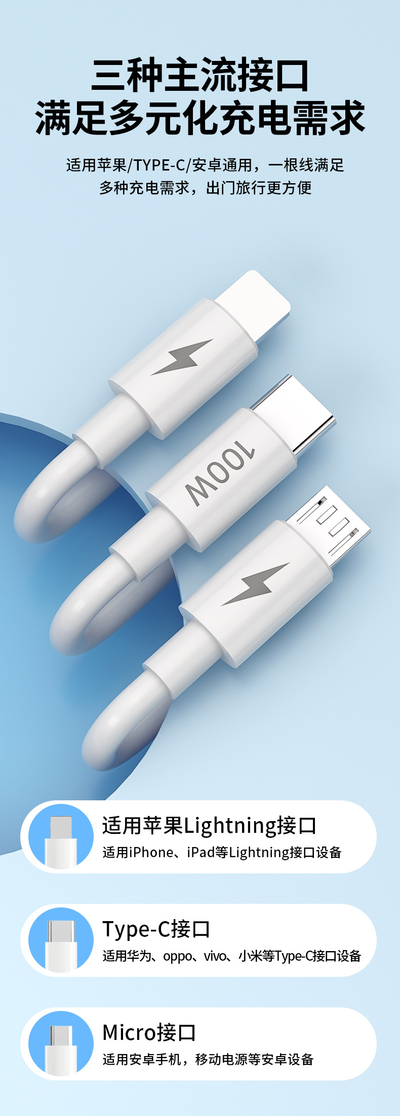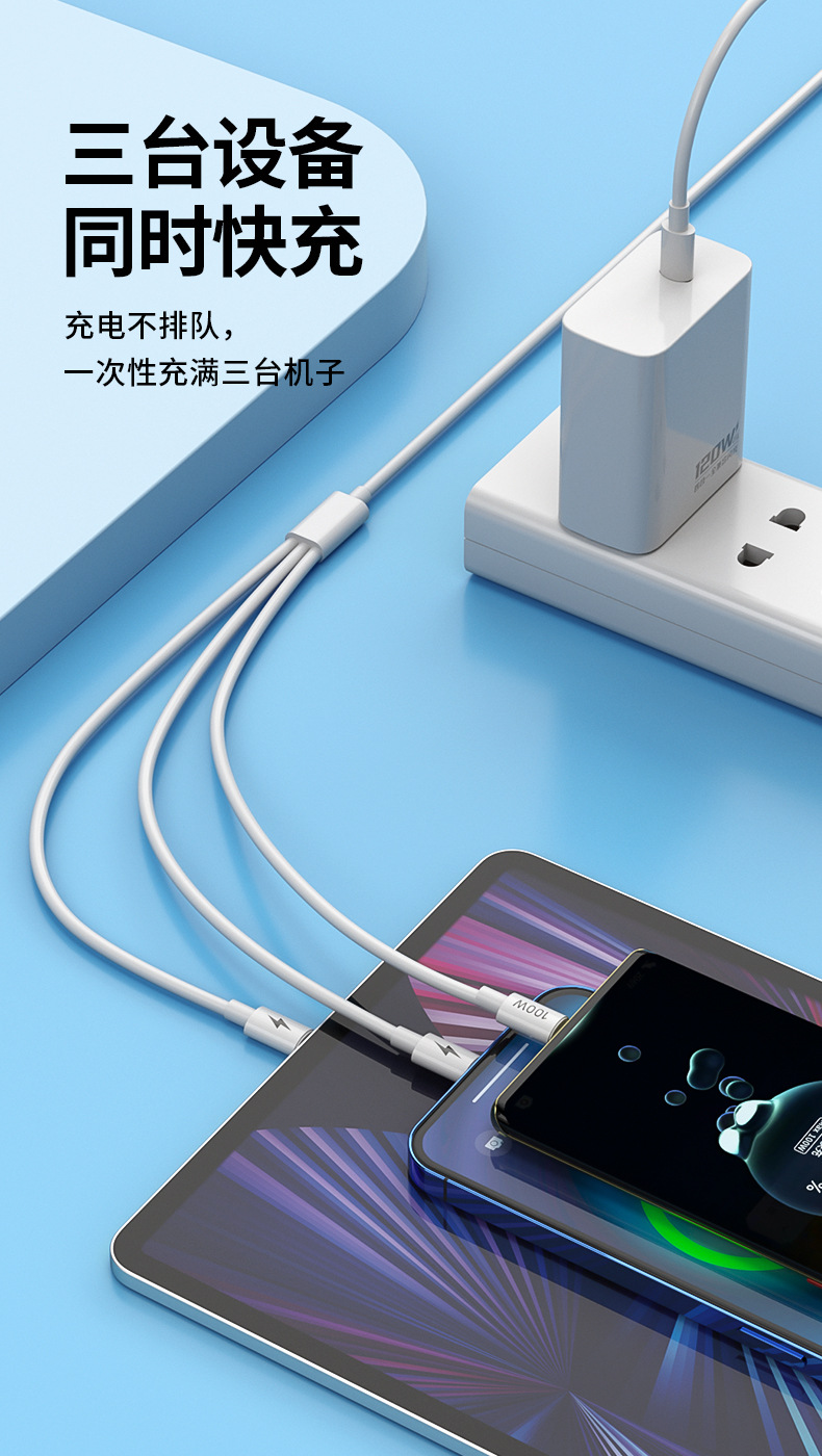 타입-c 일대일 데이터 라인 100W 애플에 적용 16/15 화웨이 충전 라인 3 대 1 고속 충전 라인스토어 가기