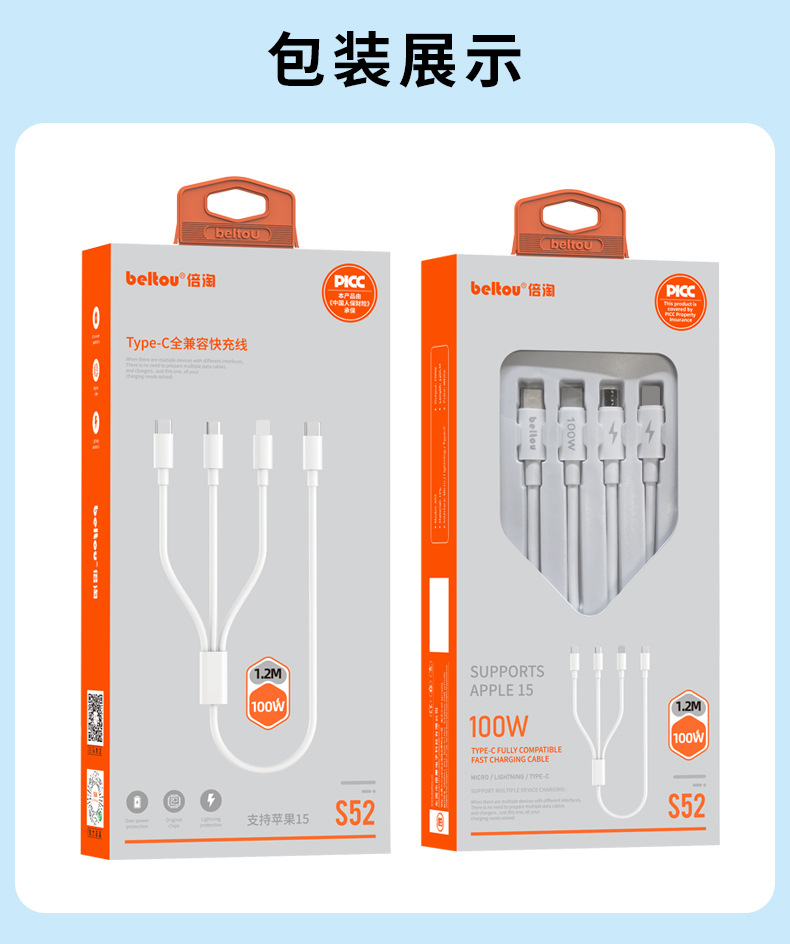 • S52 1~3개의 고속 충전 데이터 케이블 type-c 인터페이스 [흰색 박스형]