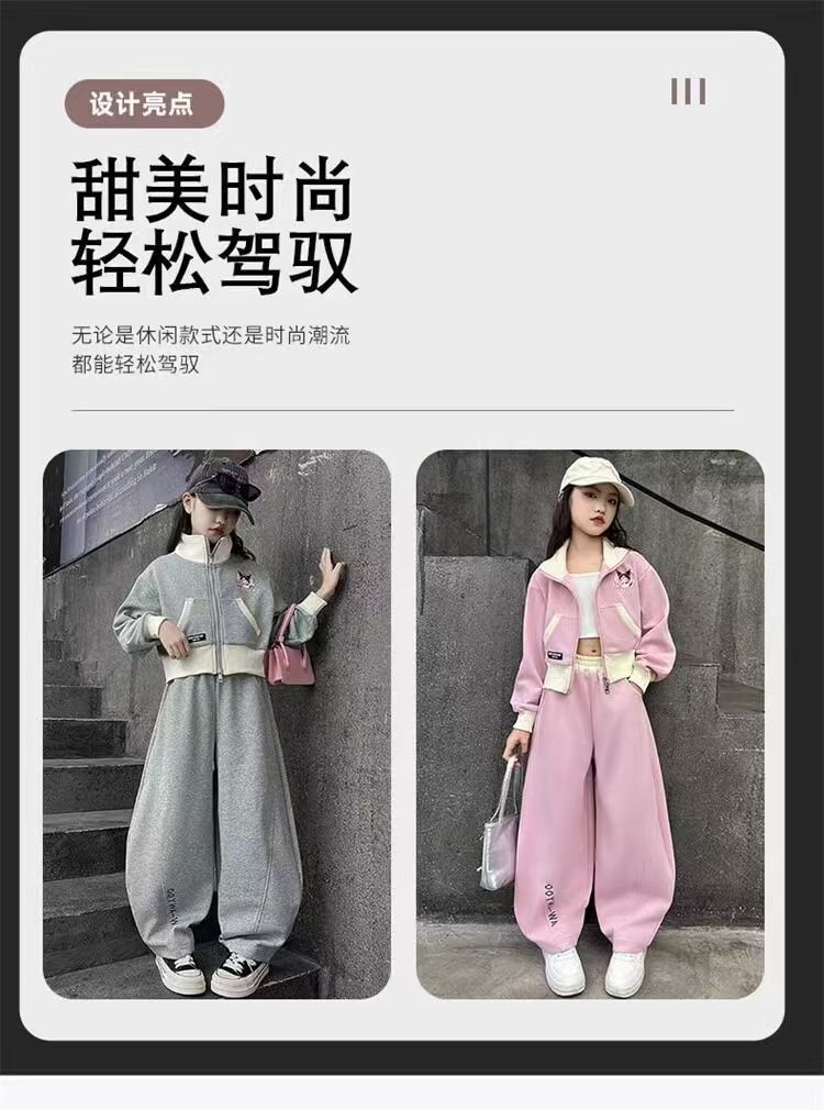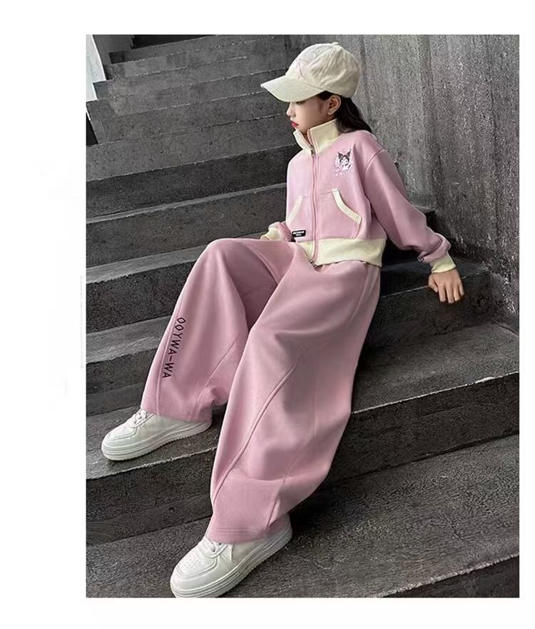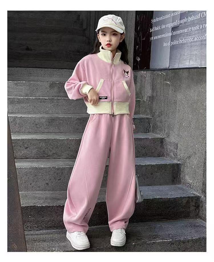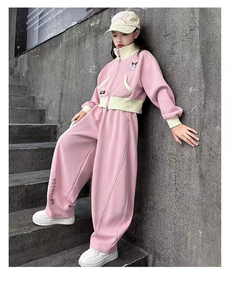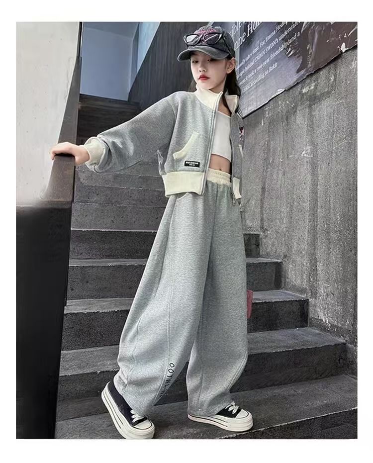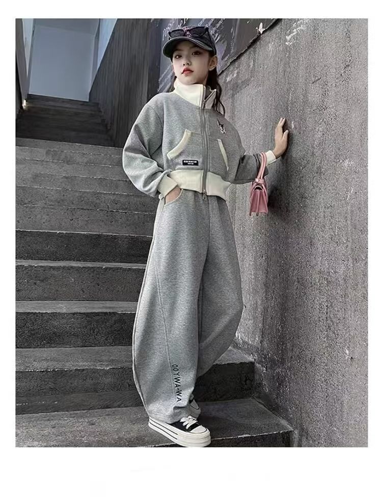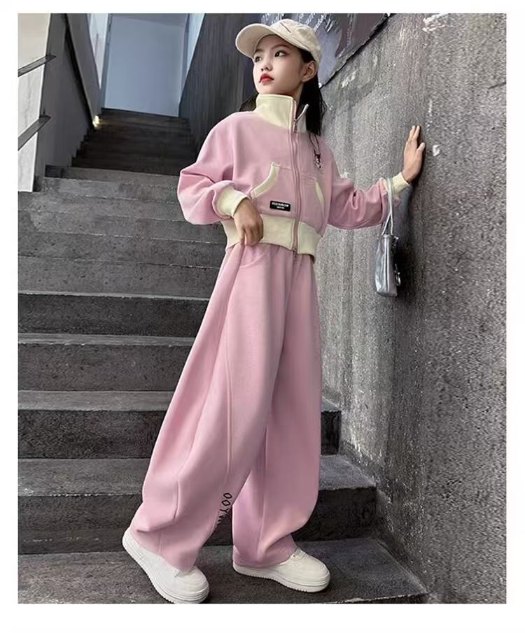 가을 새로운 어린이 지퍼 스탠드 칼라 운동복 바지 세트 중소 소녀 캔디 컬러 캐주얼 스포츠 투피스 세트