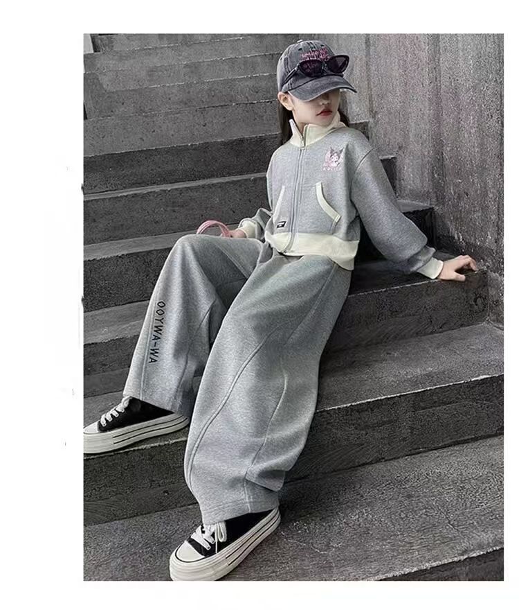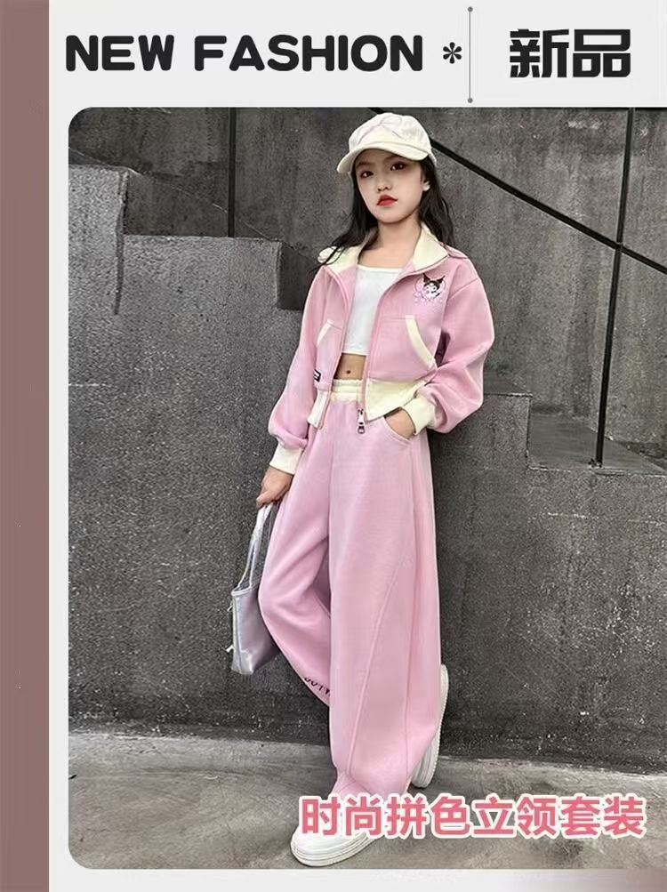 가을 새로운 어린이 지퍼 스탠드 칼라 운동복 바지 세트 중소 소녀 캔디 컬러 캐주얼 스포츠 투피스 세트스토어 가기