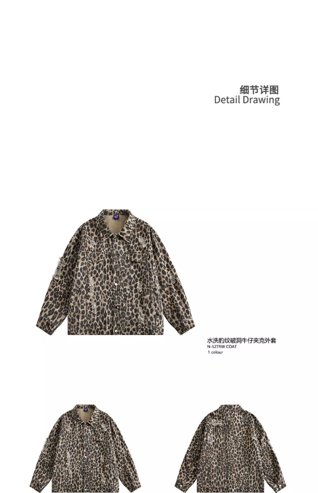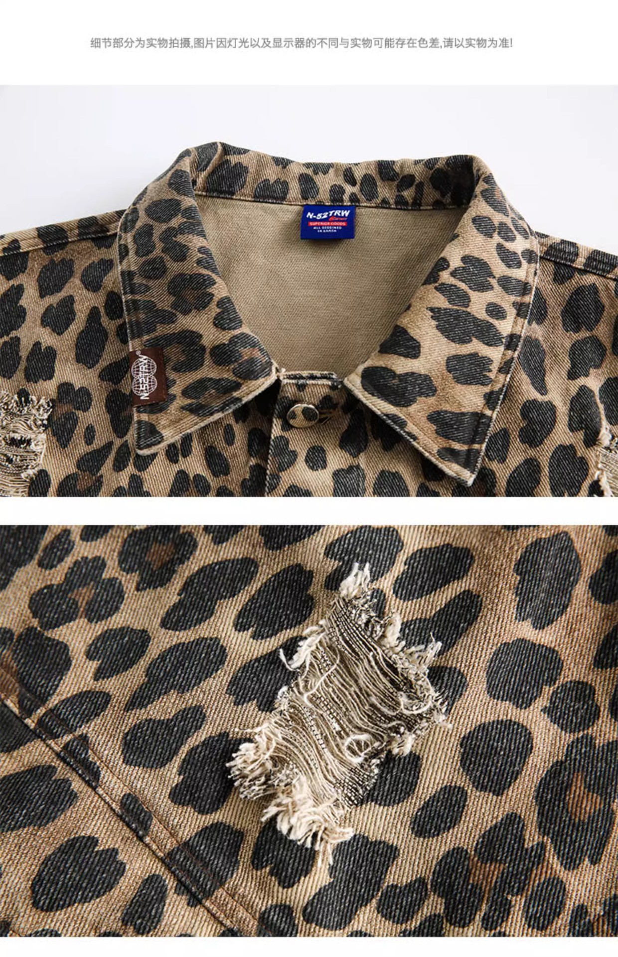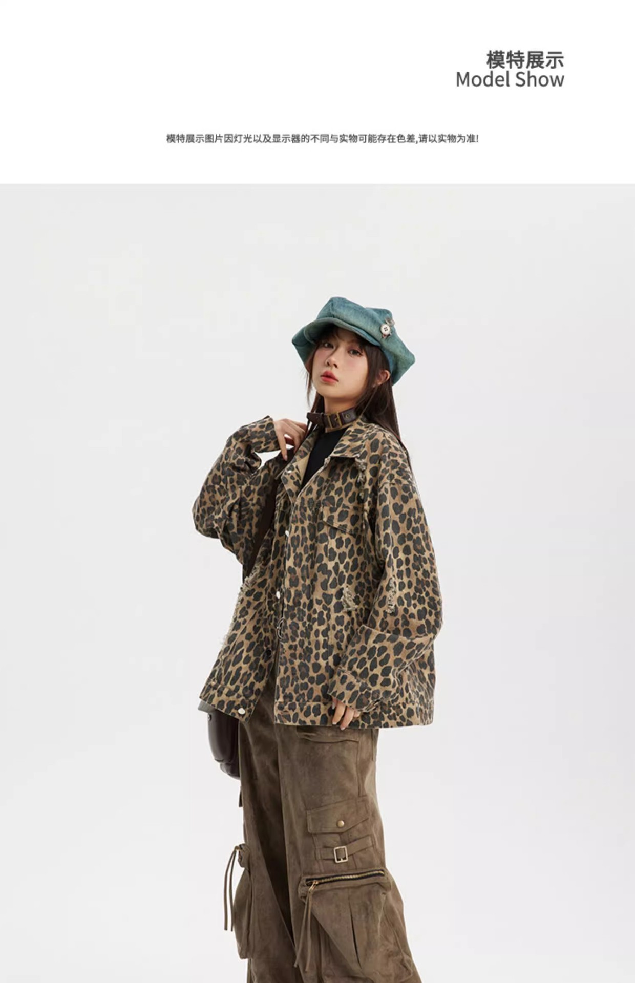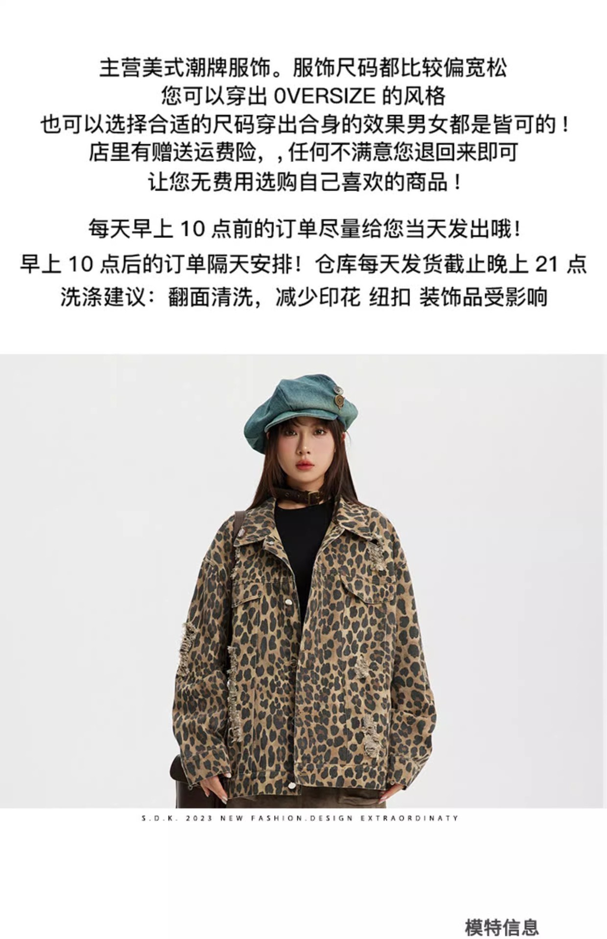 미국 스타일의 트렌디 한 브랜드 Lel Tooling 레오파드 무늬 커플 재킷 남성과 여성을위한 가을 Bf 스타일 캐주얼 독특한 Instagram 스타일 트렌디 탑스토어 가기