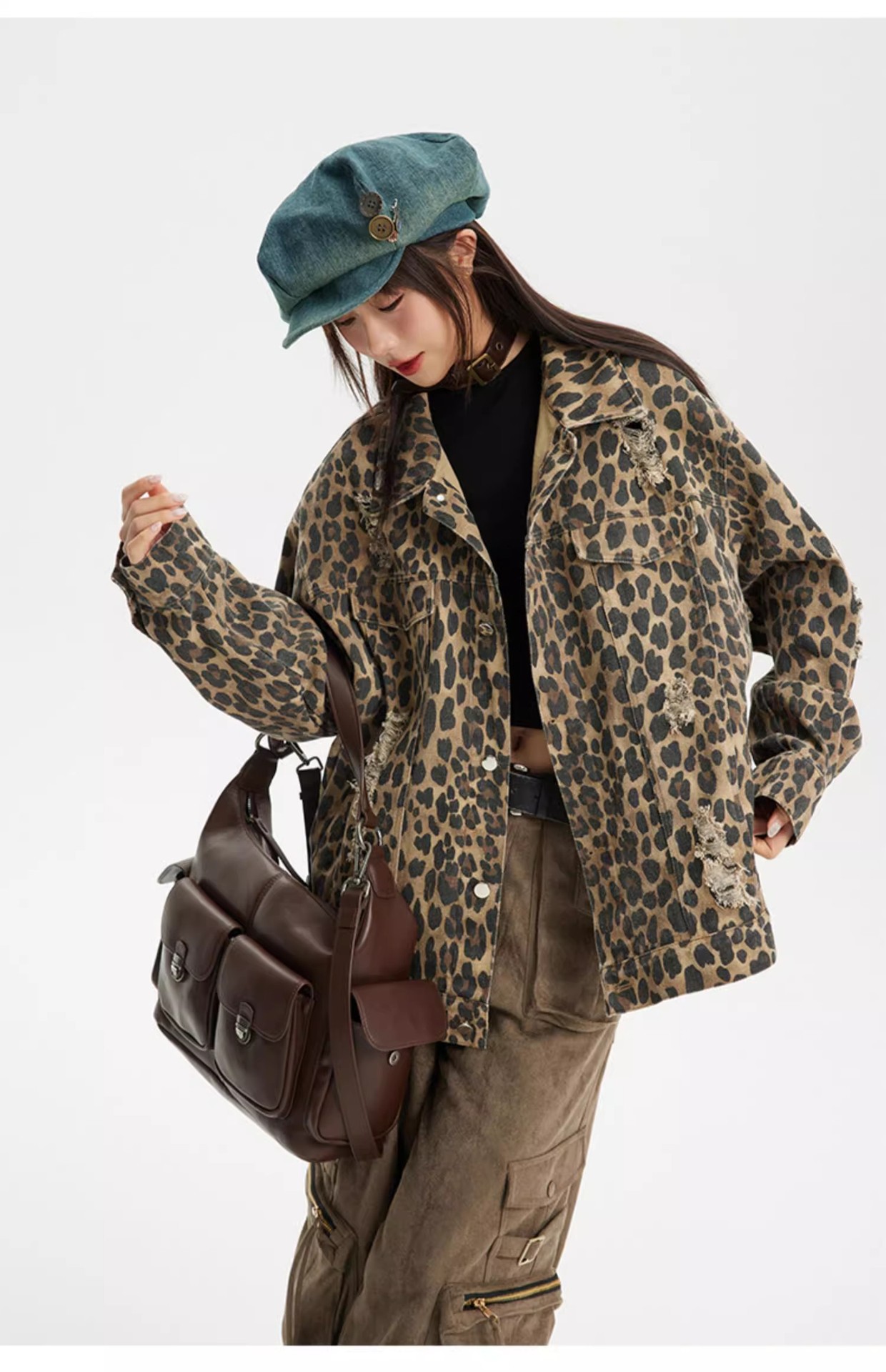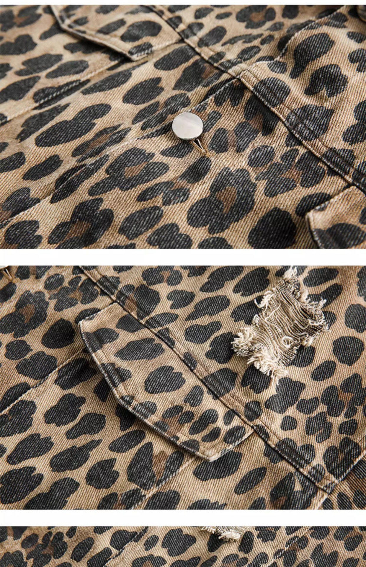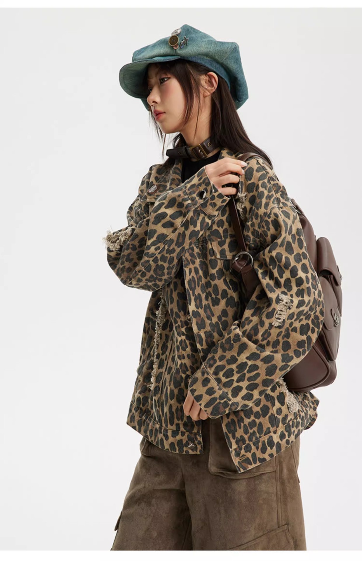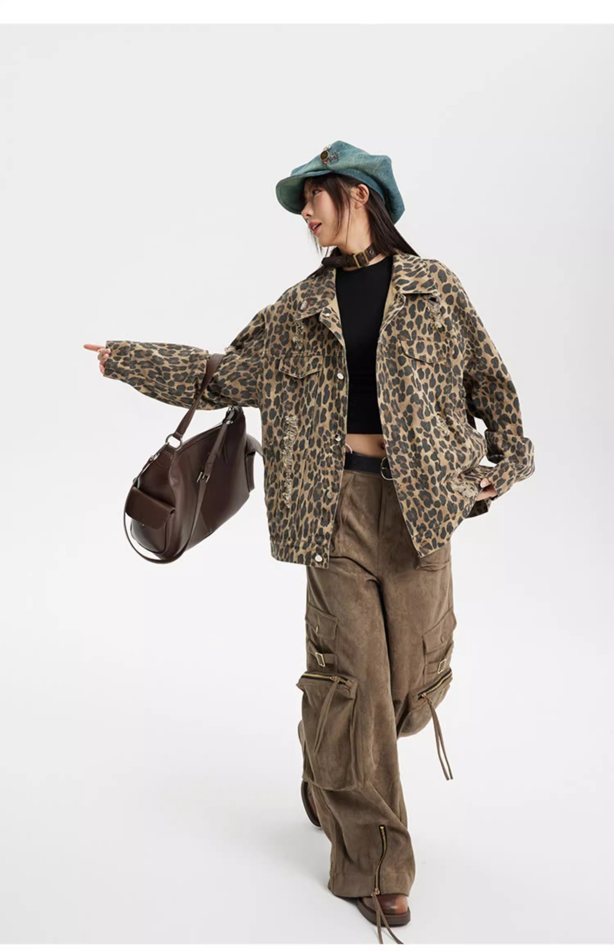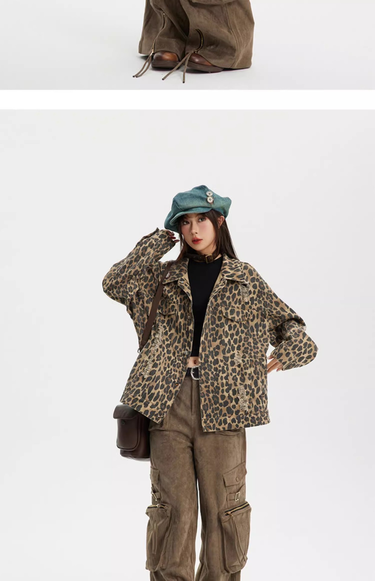 미국 스타일의 트렌디 한 브랜드 Lel Tooling 레오파드 무늬 커플 재킷 남성과 여성을위한 가을 Bf 스타일 캐주얼 독특한 Instagram 스타일 트렌디 탑스토어 가기