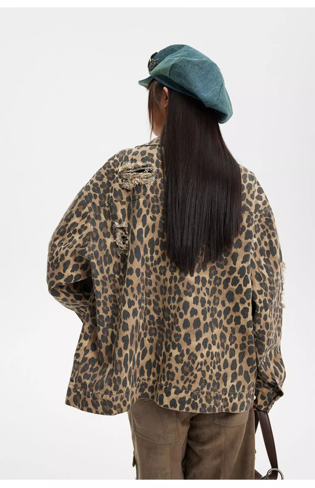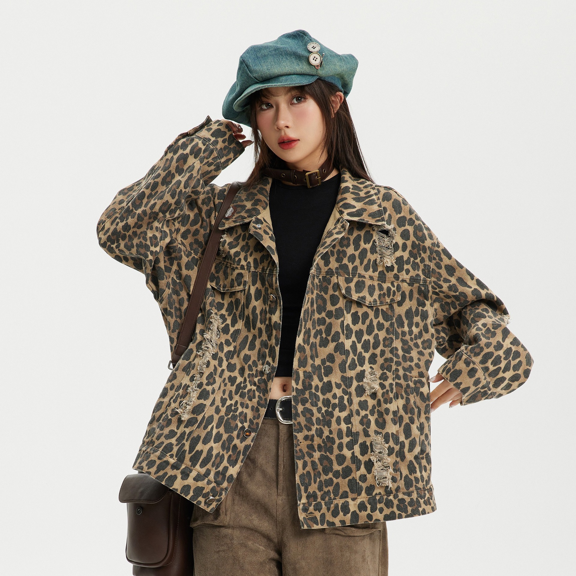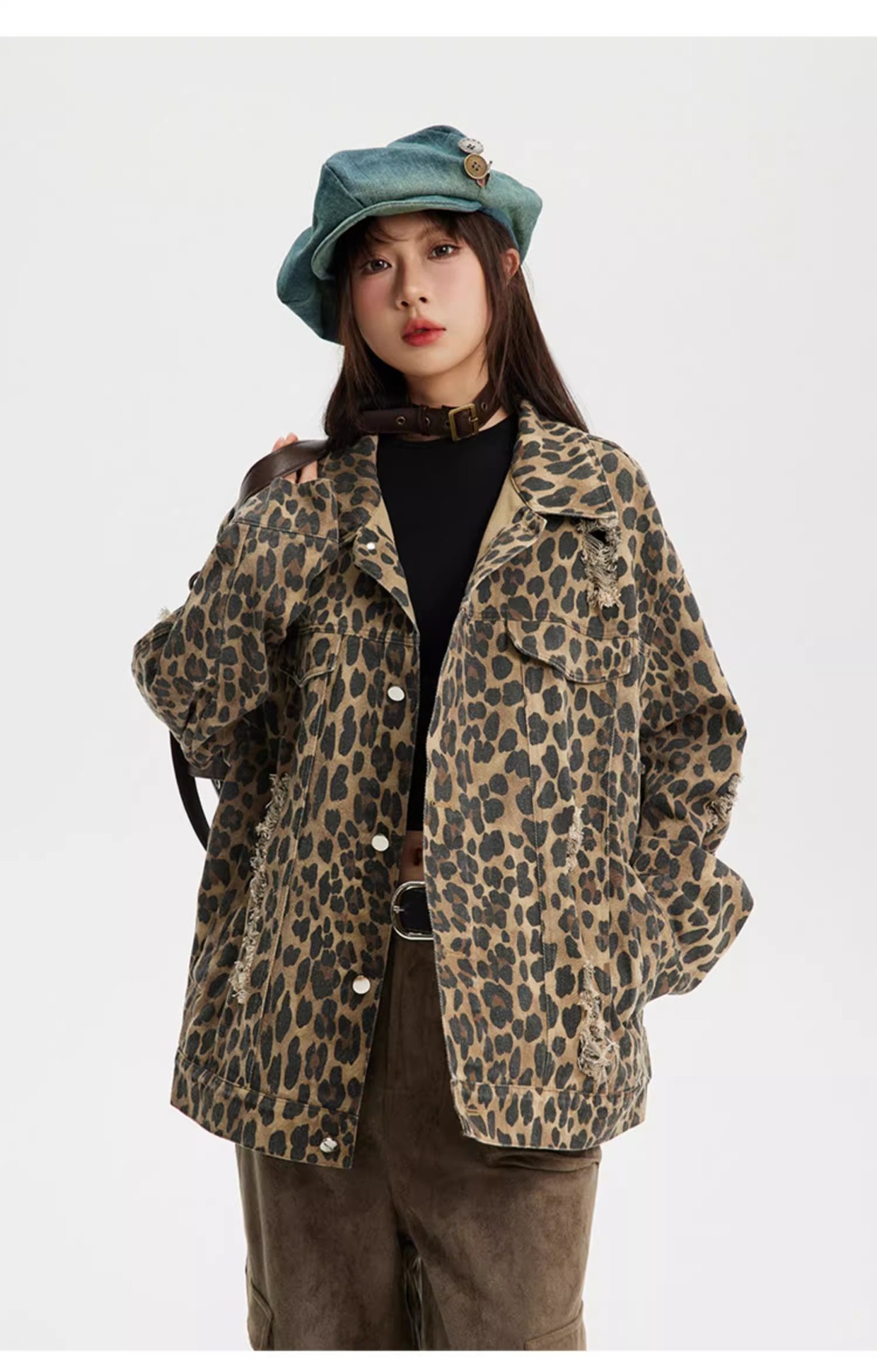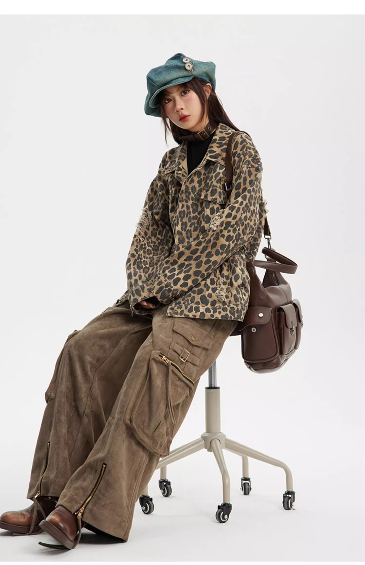 미국 스타일의 트렌디 한 브랜드 Lel Tooling 레오파드 무늬 커플 재킷 남성과 여성을위한 가을 Bf 스타일 캐주얼 독특한 Instagram 스타일 트렌디 탑스토어 가기