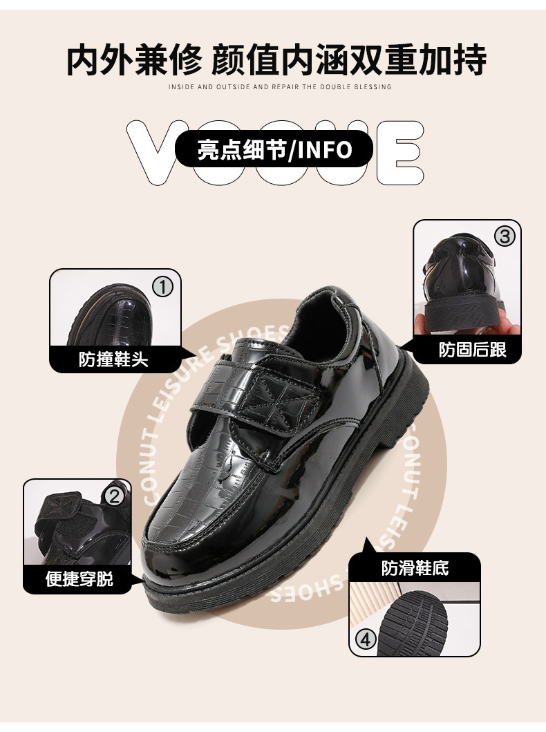 소년 가죽 신발 봄과 가을 2025 새로운 패션 한국어 버전 부드러운 밑창 검정색 중대형 어린이 초등학교 캠퍼스 퍼포먼스 신발스토어 가기