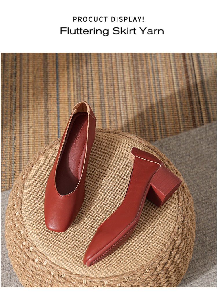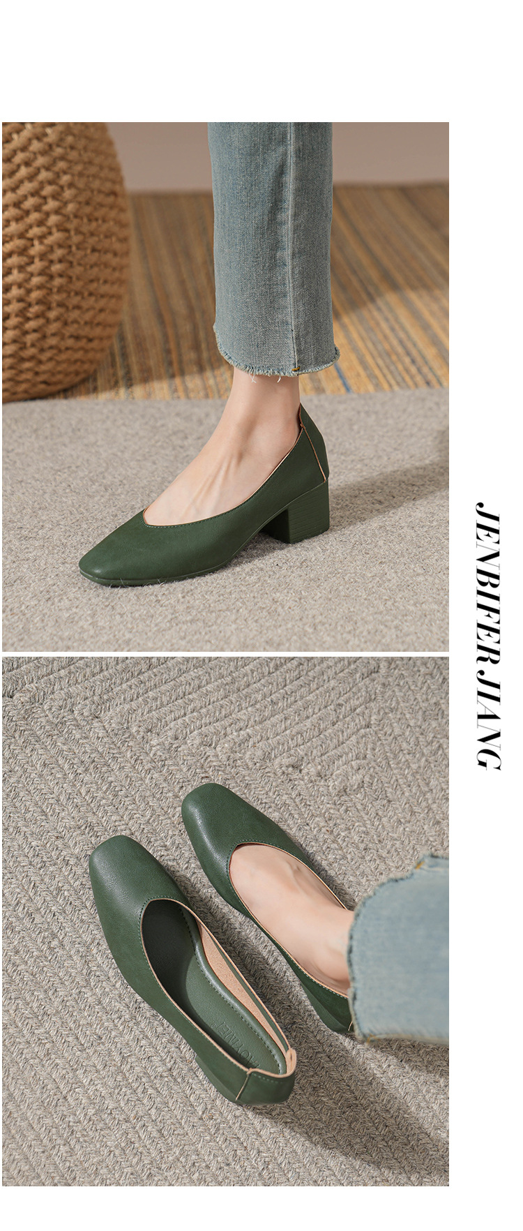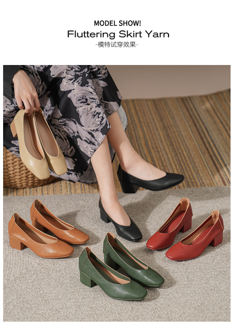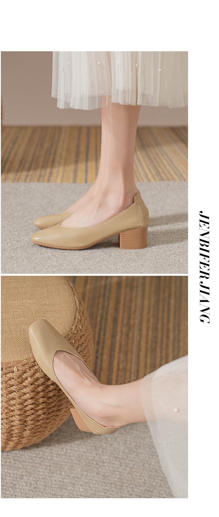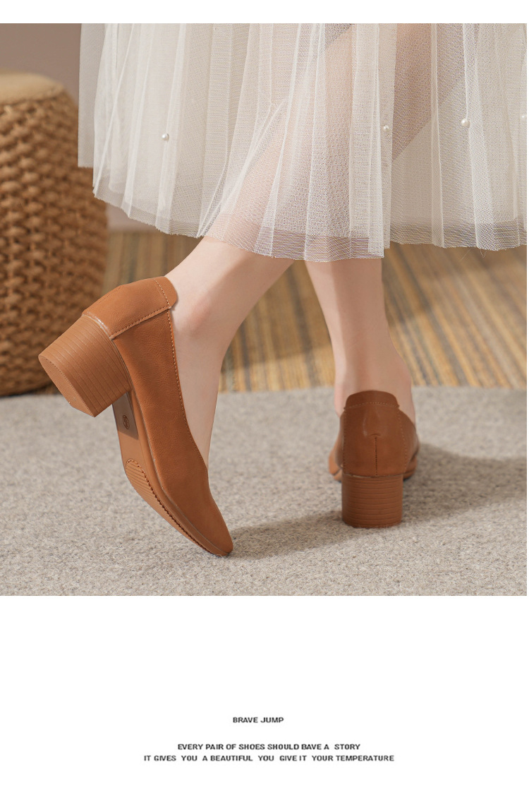 통근 밀크 신발 여성 레트로 소프트 가죽 V-입 미드 힐 요정 하이힐 여성 두꺼운 힐 메리 제인 신발 여성 여름스토어 가기