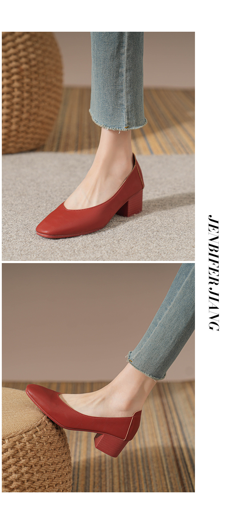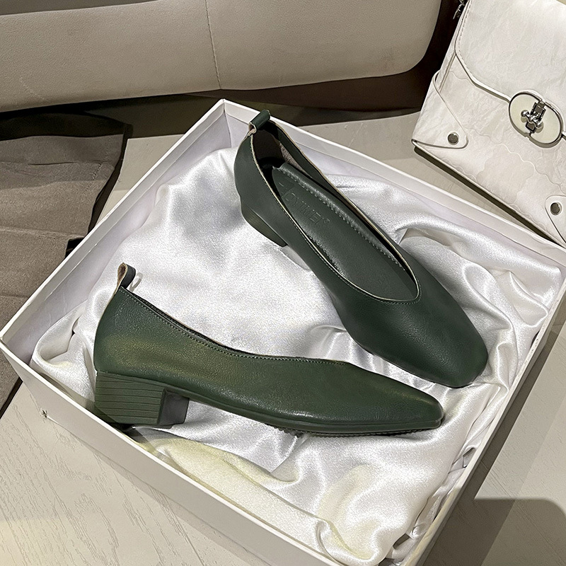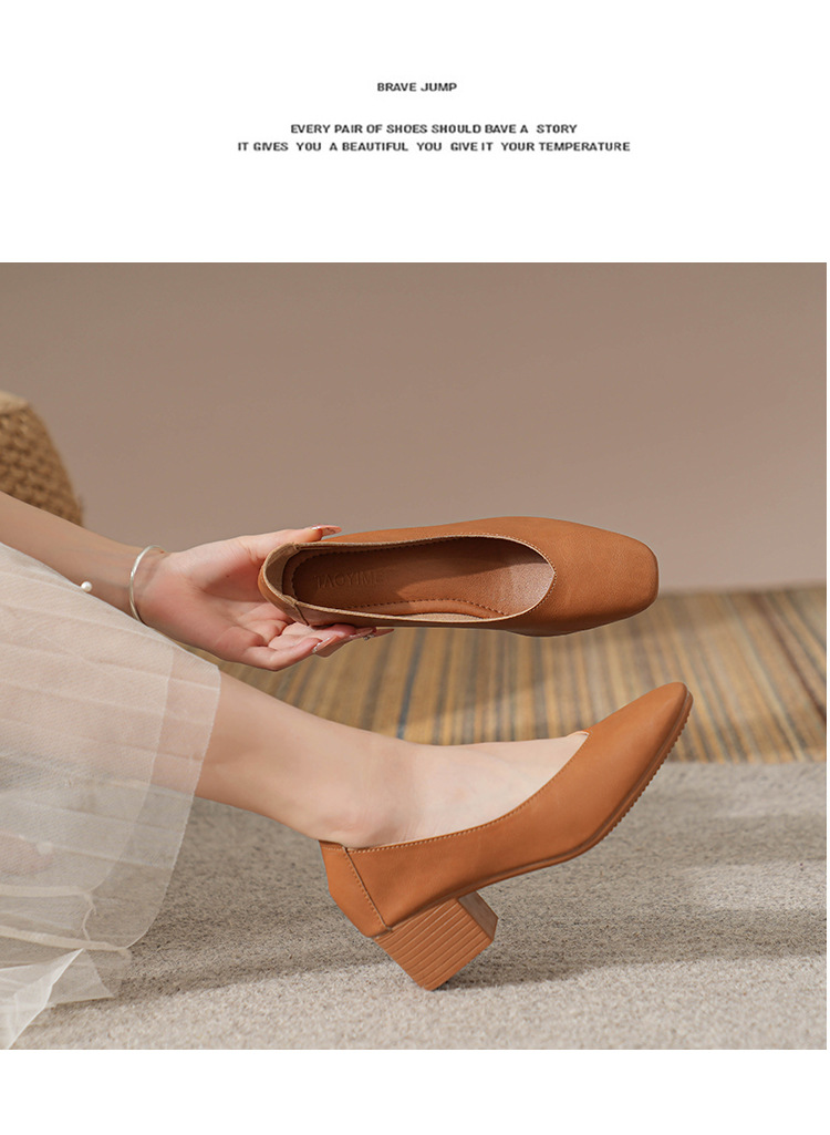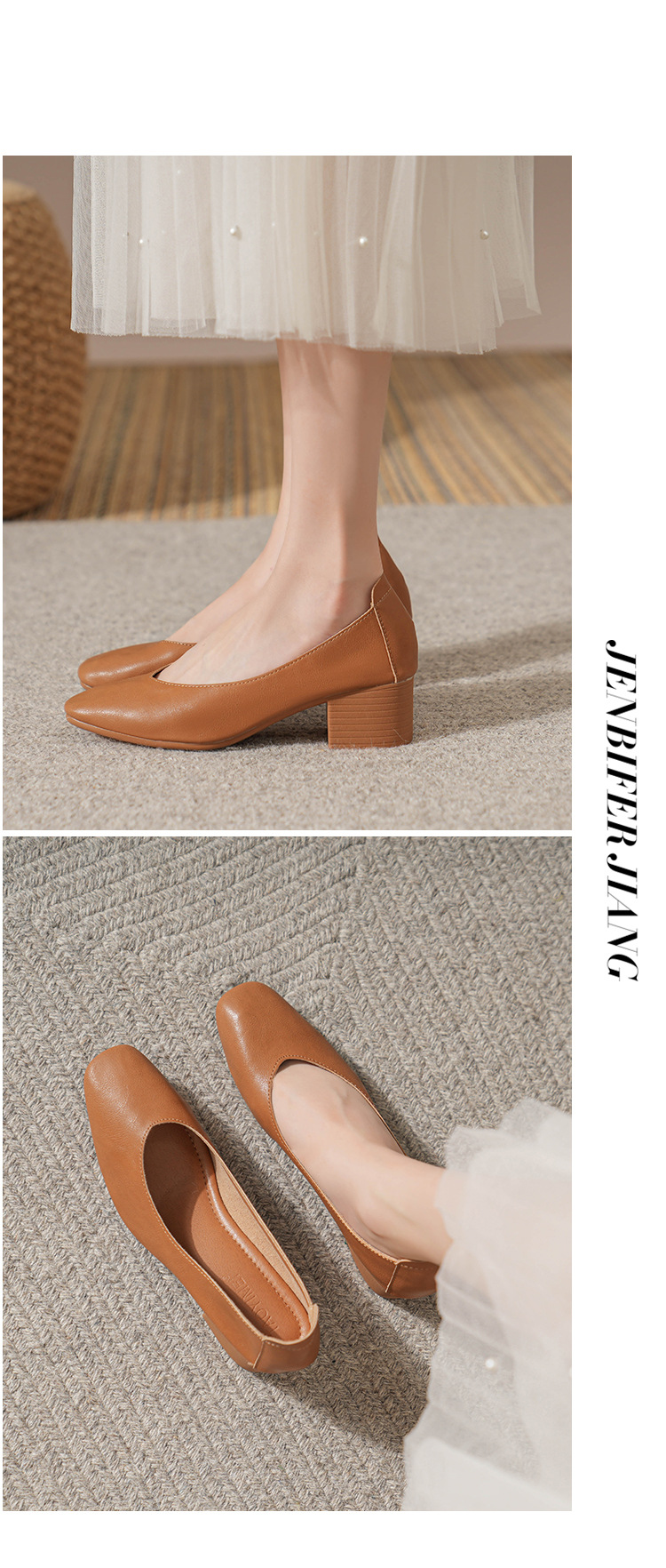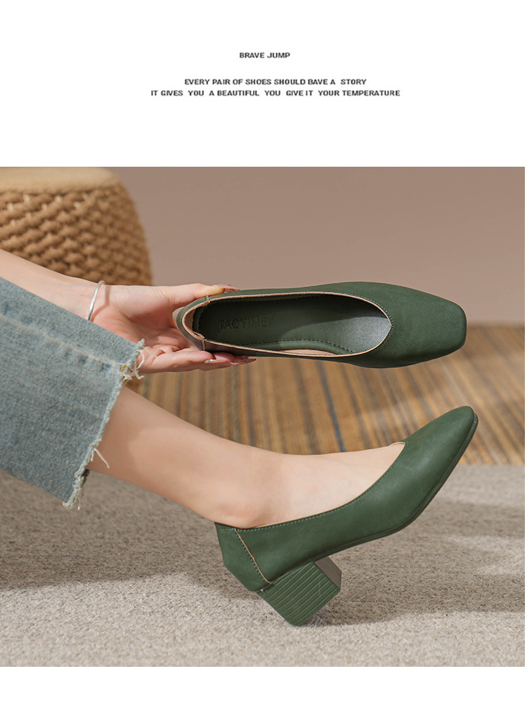 통근 밀크 신발 여성 레트로 소프트 가죽 V-입 미드 힐 요정 하이힐 여성 두꺼운 힐 메리 제인 신발 여성 여름스토어 가기