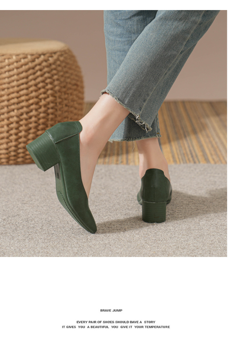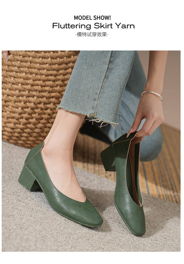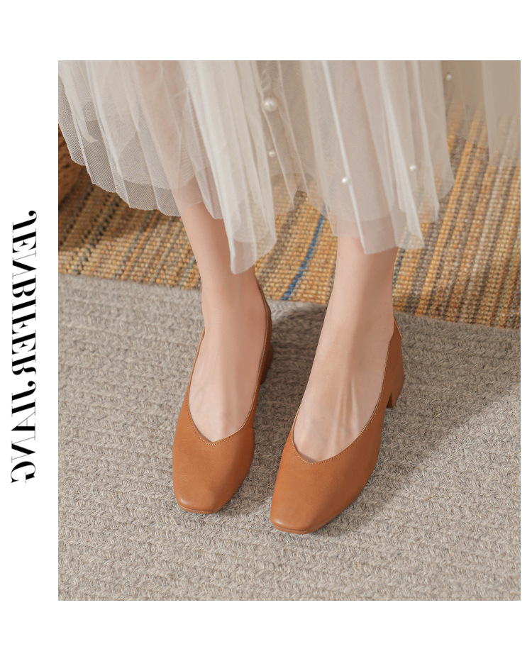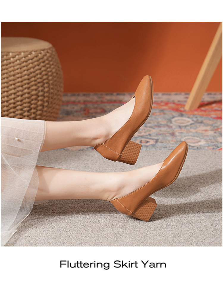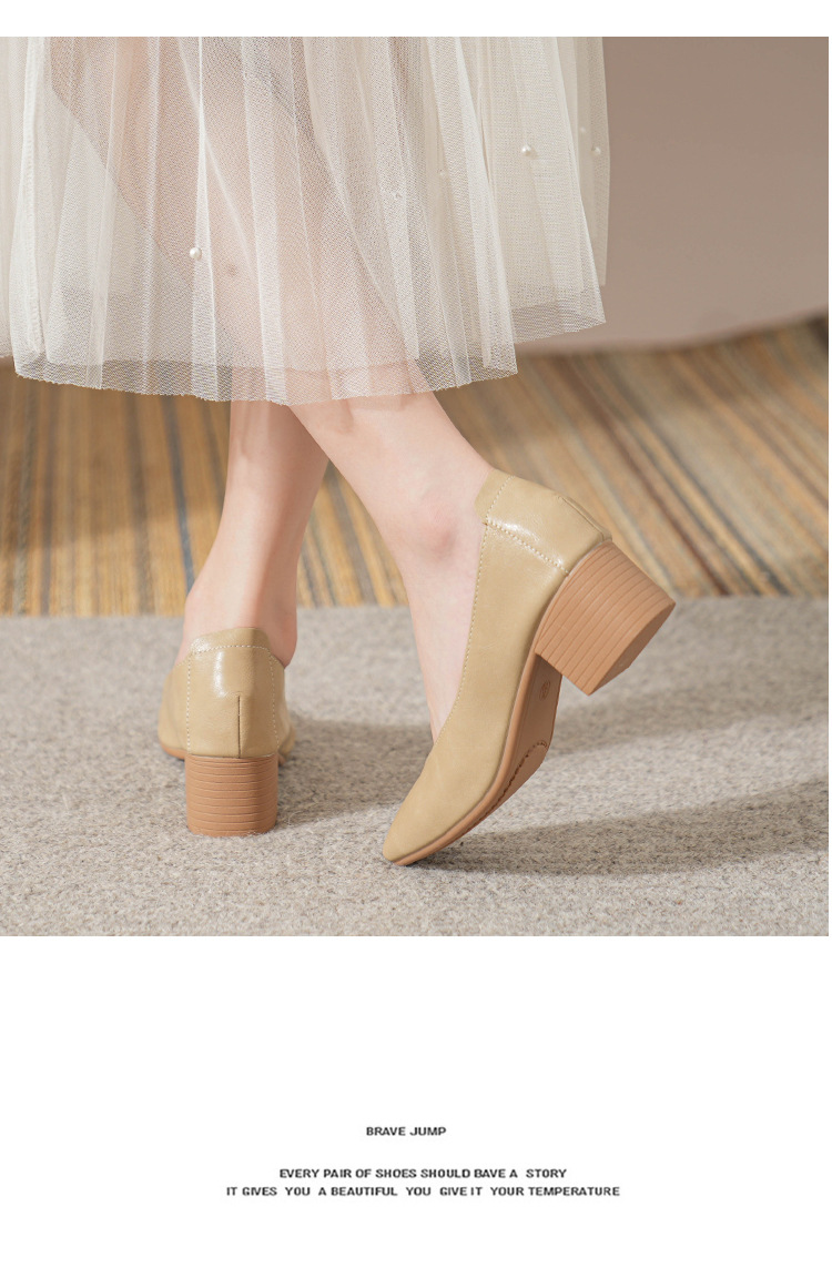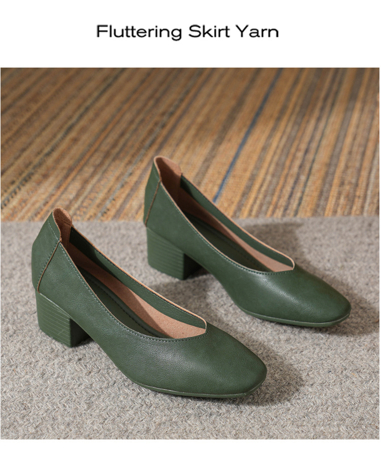 통근 밀크 신발 여성 레트로 소프트 가죽 V-입 미드 힐 요정 하이힐 여성 두꺼운 힐 메리 제인 신발 여성 여름