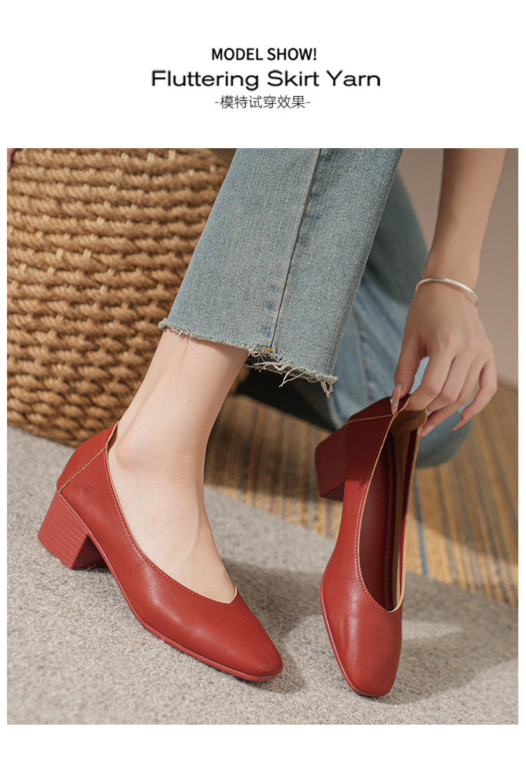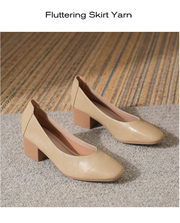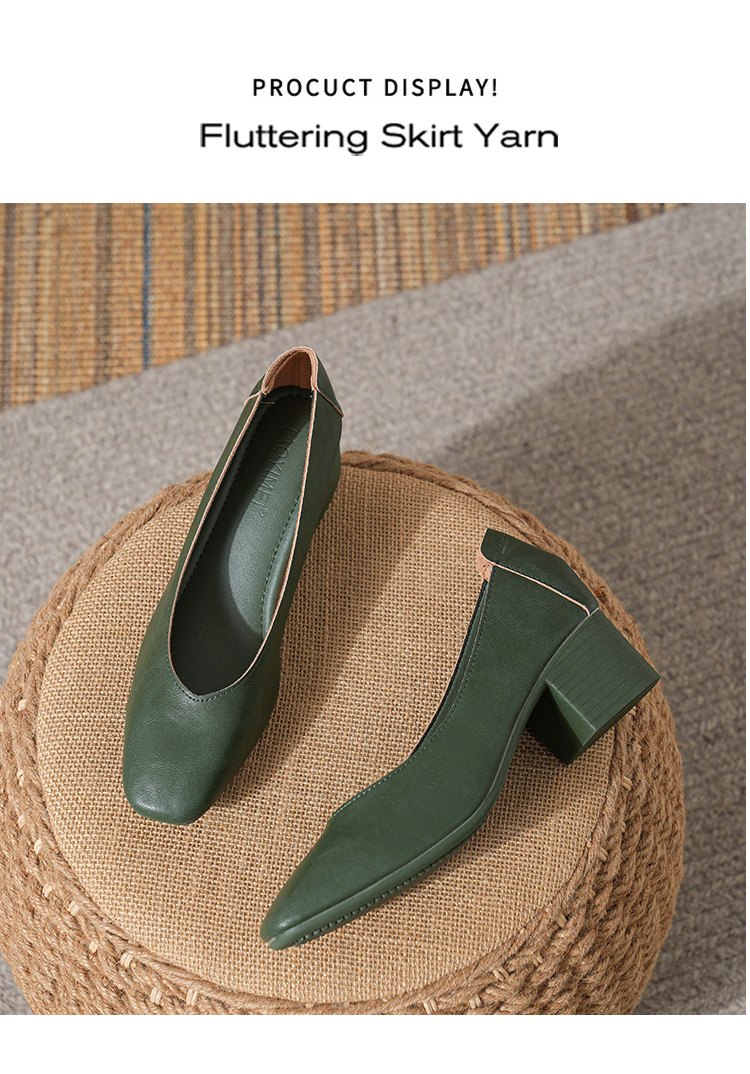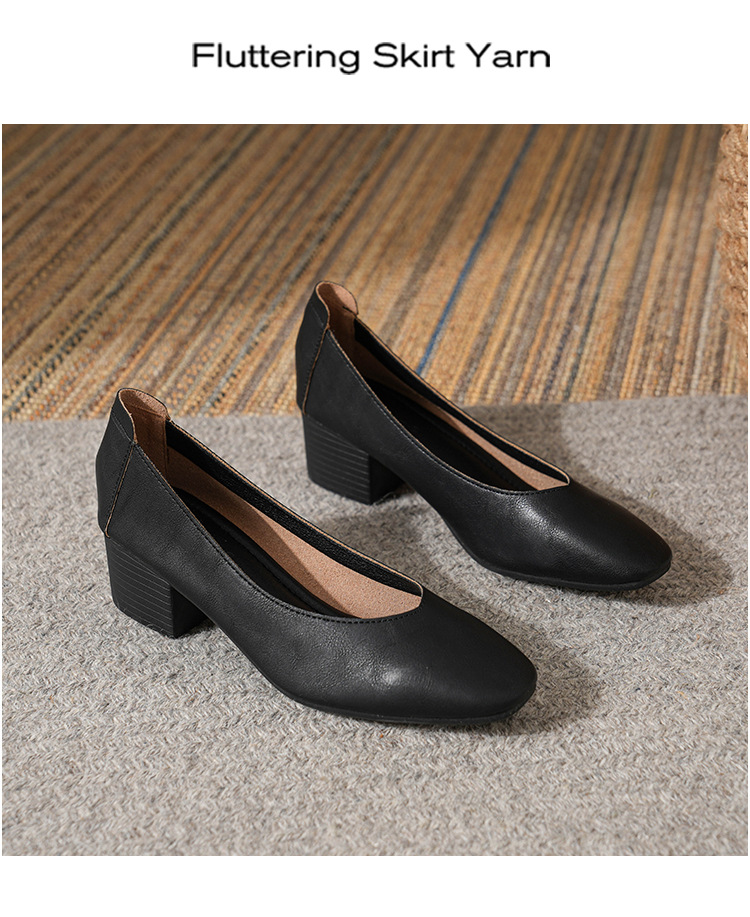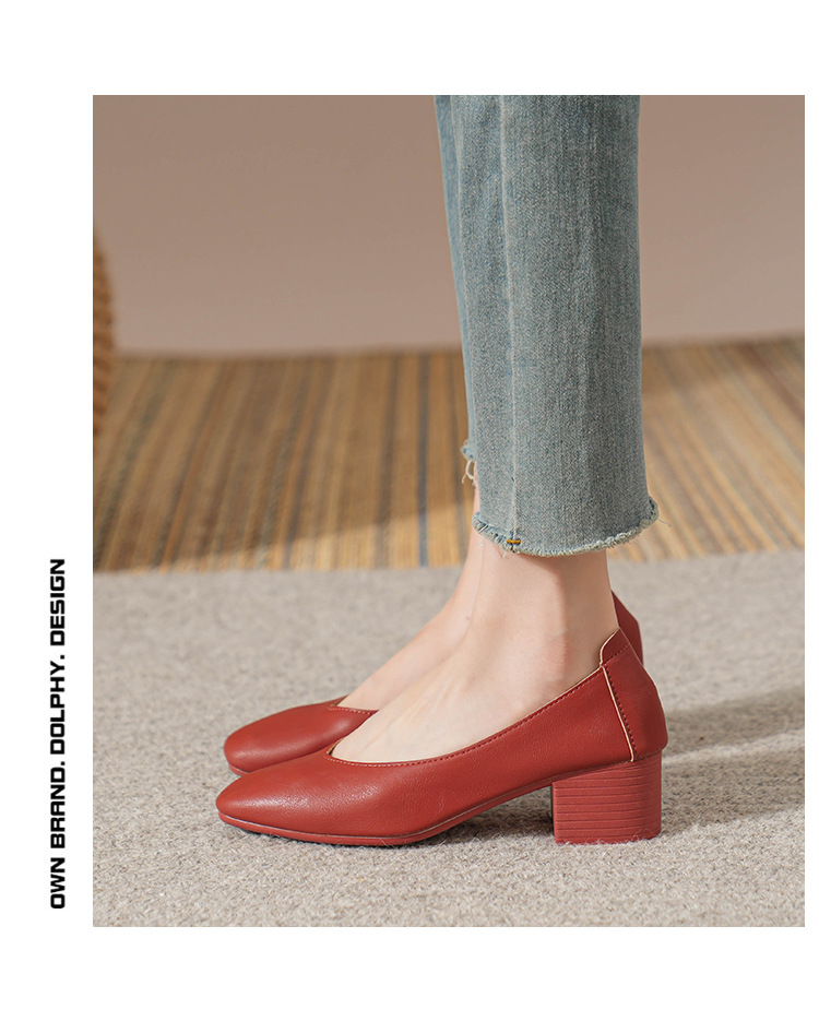 통근 밀크 신발 여성 레트로 소프트 가죽 V-입 미드 힐 요정 하이힐 여성 두꺼운 힐 메리 제인 신발 여성 여름