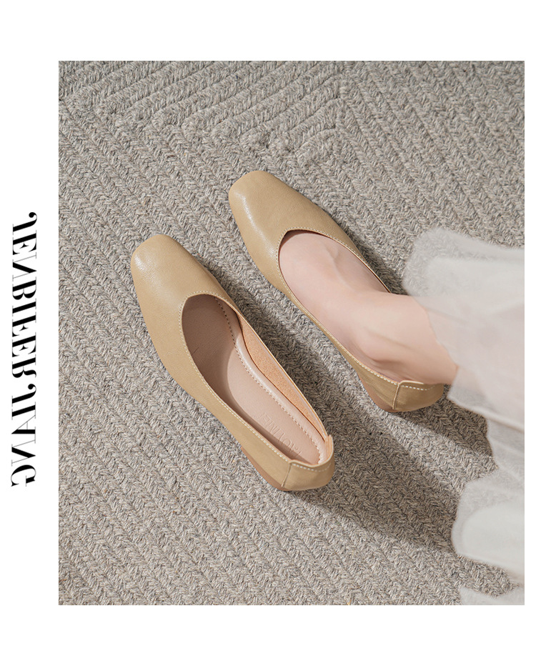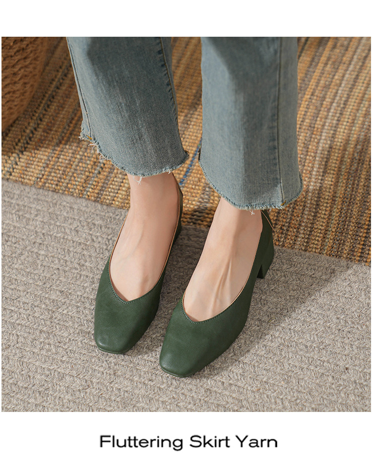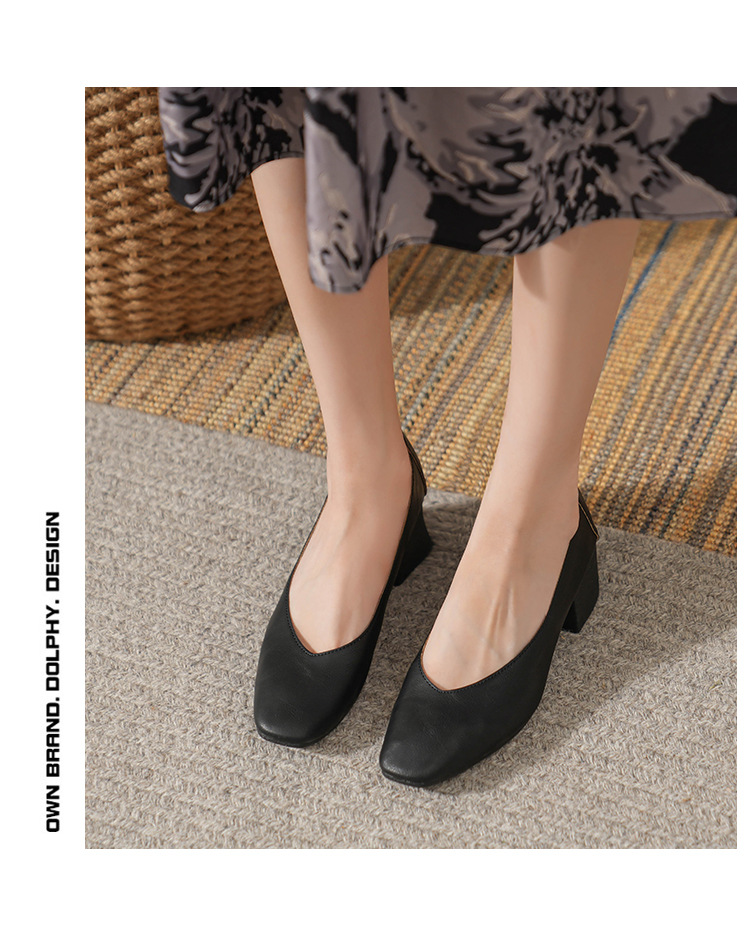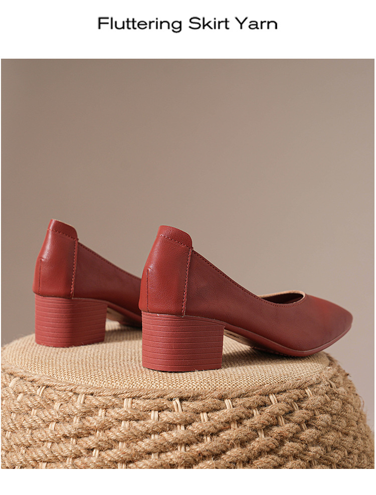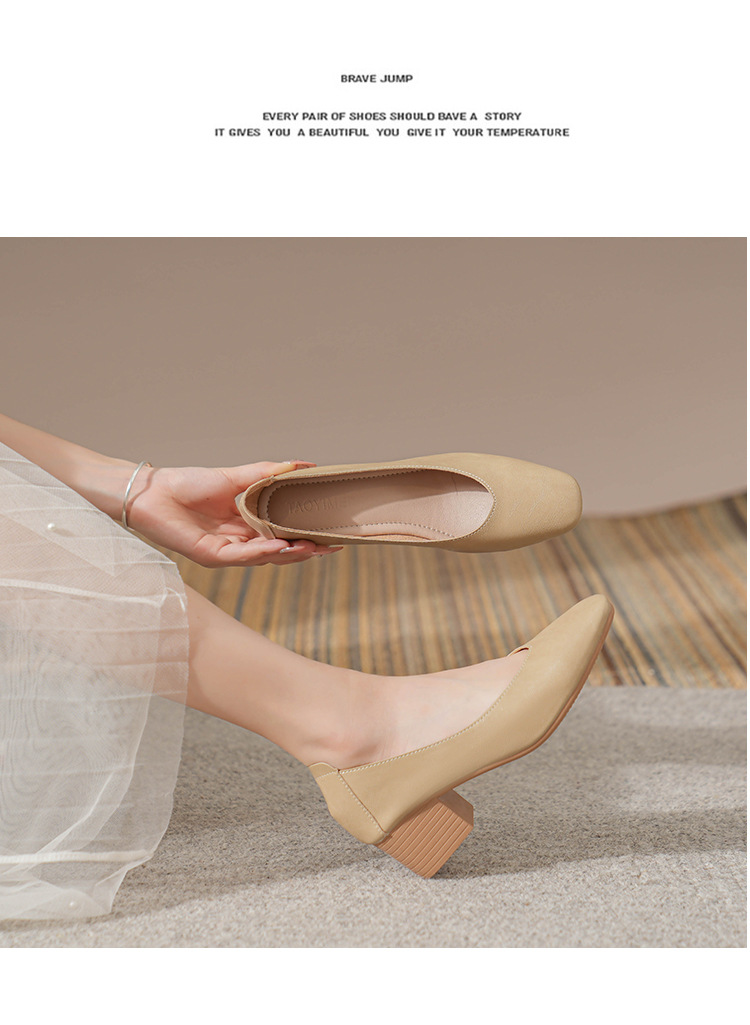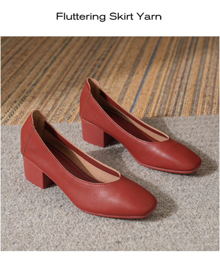 통근 밀크 신발 여성 레트로 소프트 가죽 V-입 미드 힐 요정 하이힐 여성 두꺼운 힐 메리 제인 신발 여성 여름