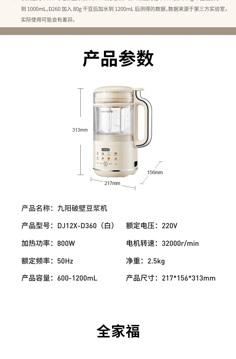 조양 두유기 블렌더 1.2L 가정용 대용량 빠른 분쇄 8가지 기능 요리기 DJ12X-D360스토어 가기