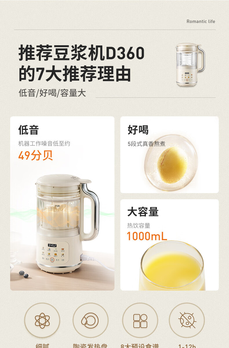 조양 두유기 블렌더 1.2L 가정용 대용량 빠른 분쇄 8가지 기능 요리기 DJ12X-D360