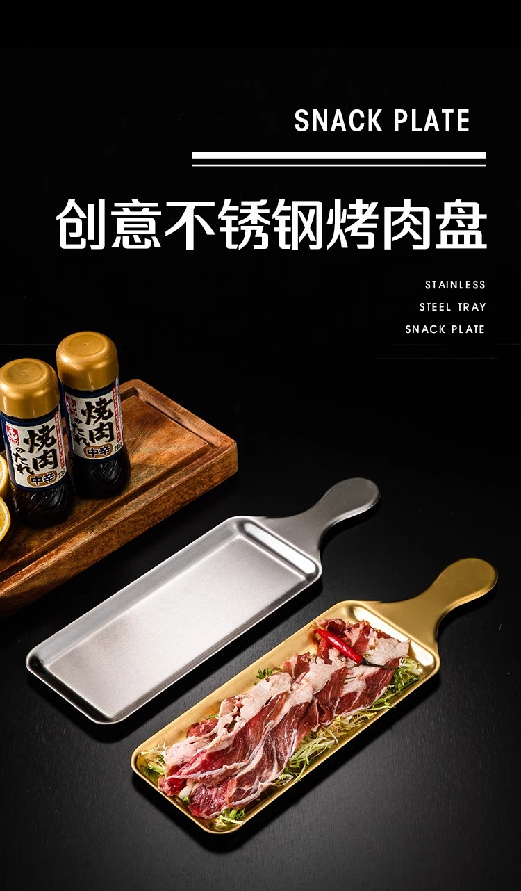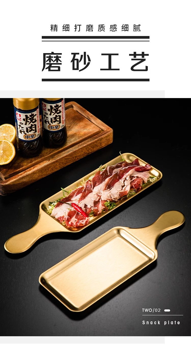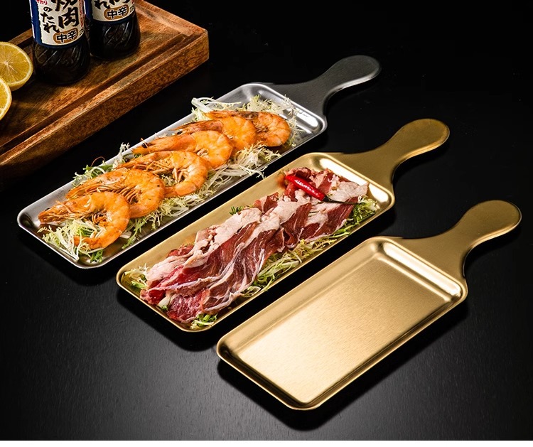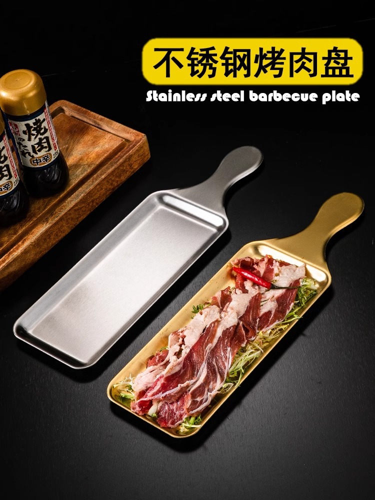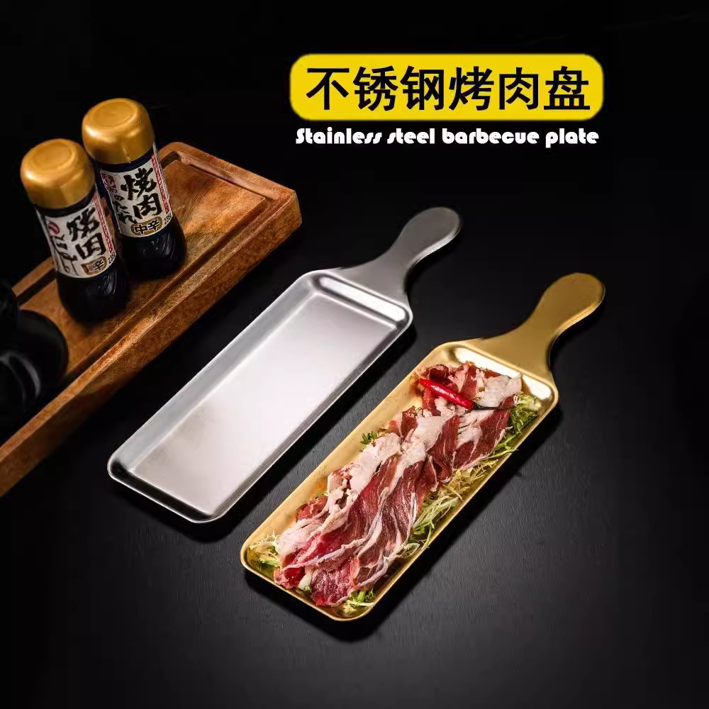 한국식 스테인레스 스틸 직사각형 플레이트 서양식 스테이크 플레이트 골든 벨트 플랫 그릴 플레이트 트레이 스낵 플레이트 디너 플레이트 플레이트스토어 가기