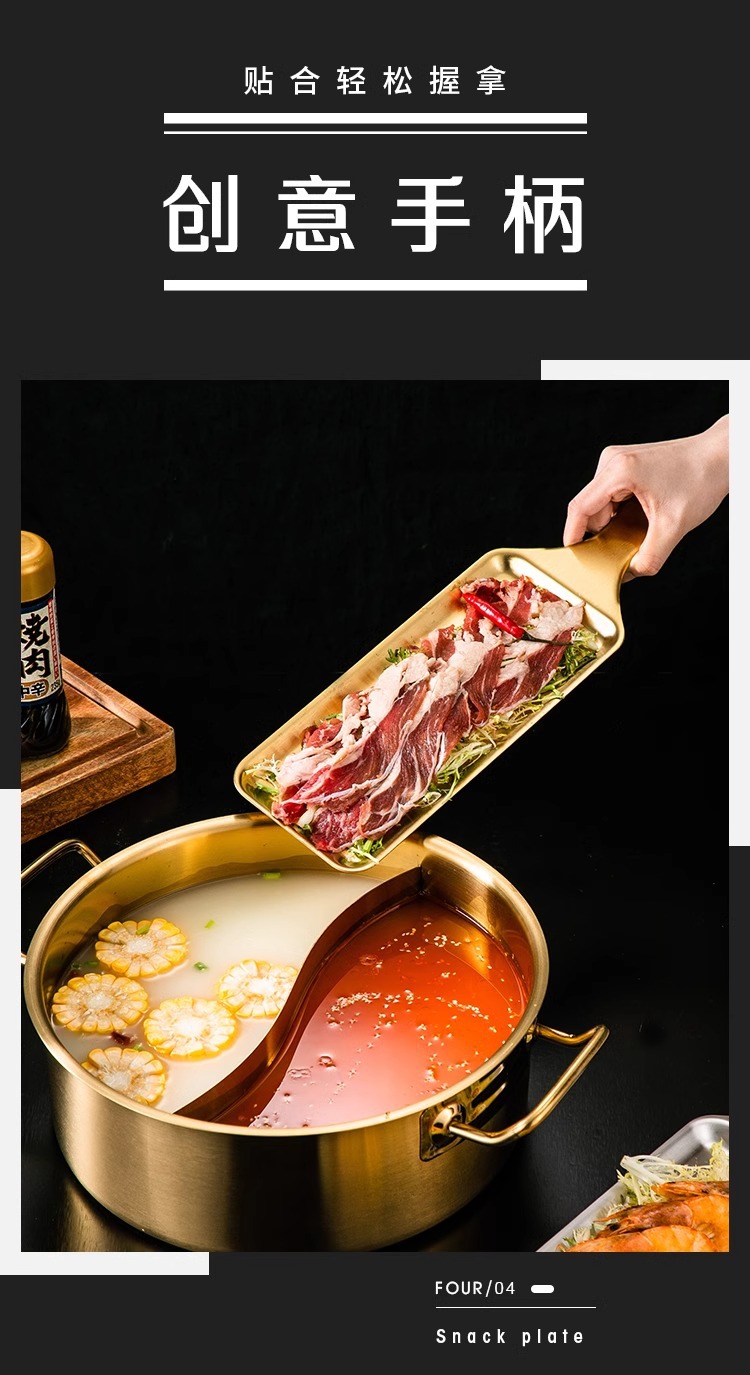 • 30cm*11.5cm 손잡이가 있는 다용도 접시 [골드]
