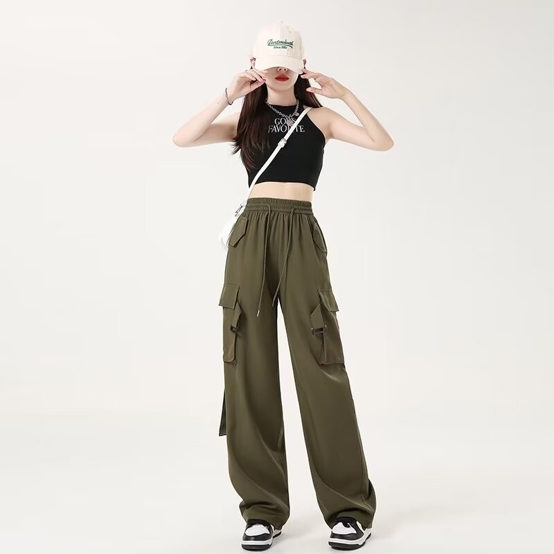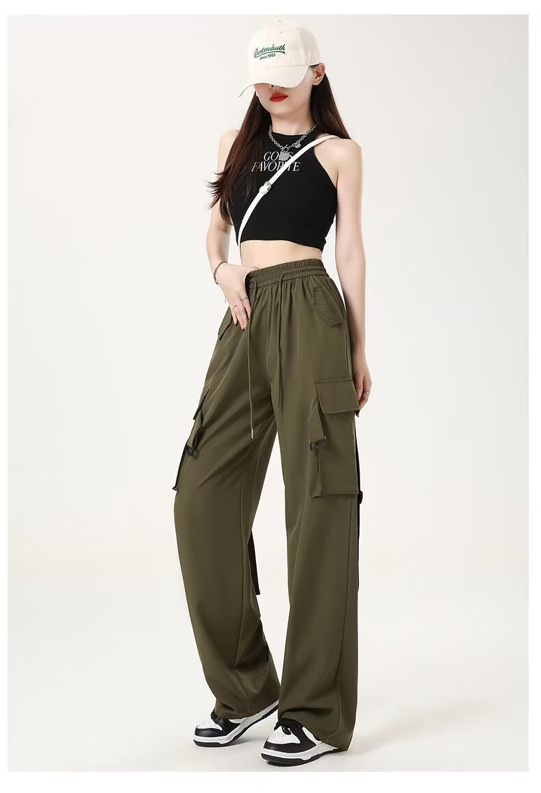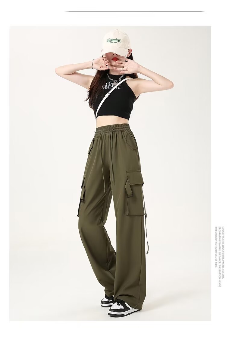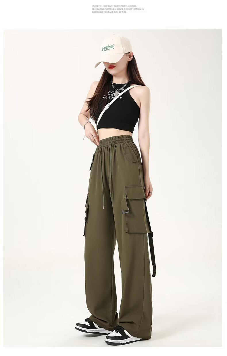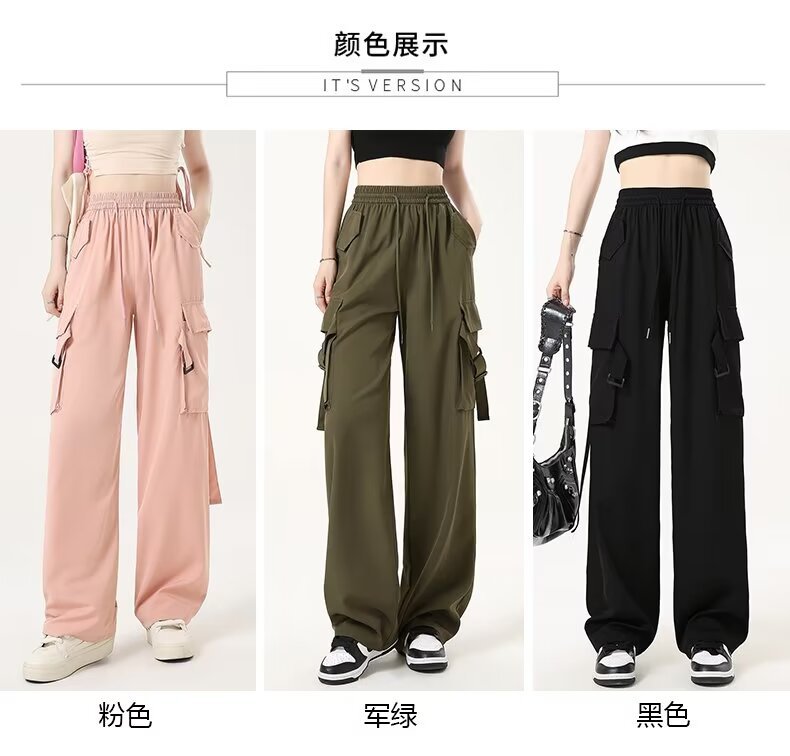 2024 여성용 작업복 바지 얇은 스포츠 바지 여성용 스트레이트 등산 캐주얼 와이드 팬츠 기능성 스타일 약간의 신축성