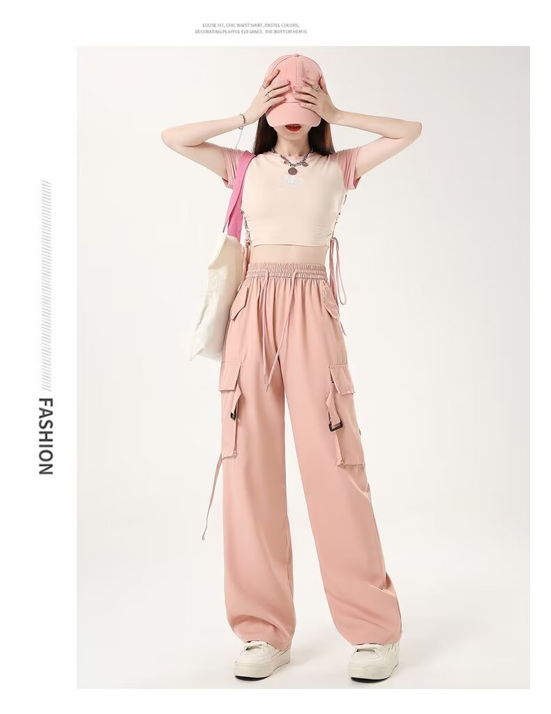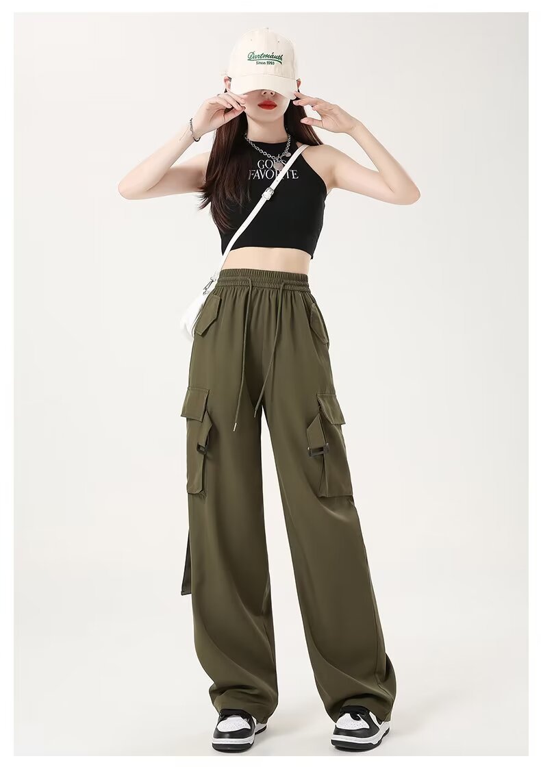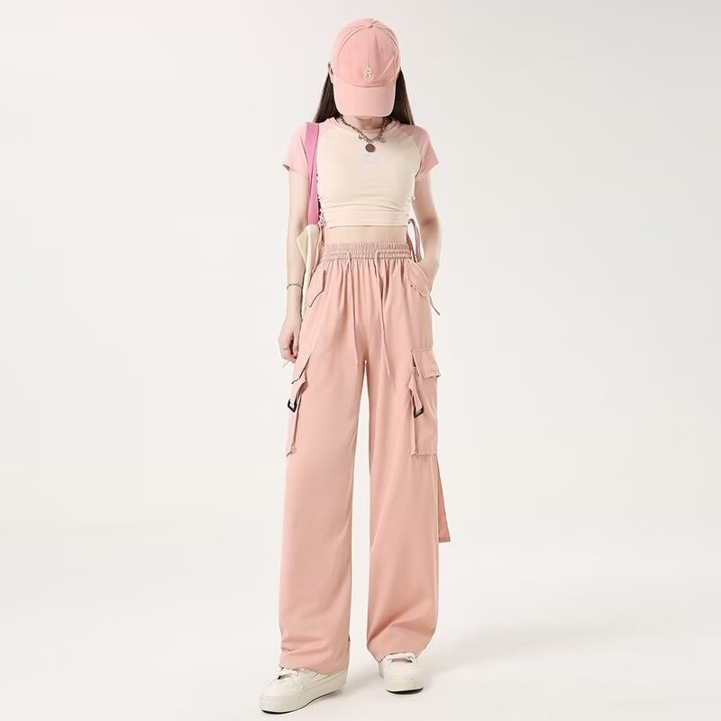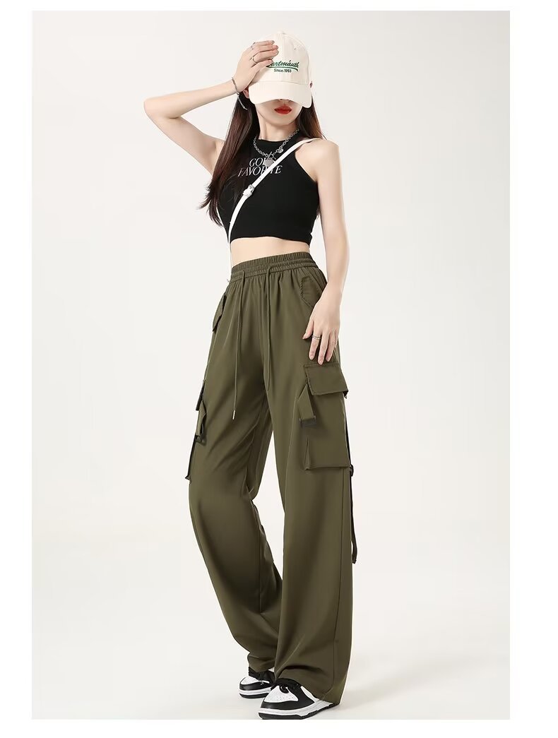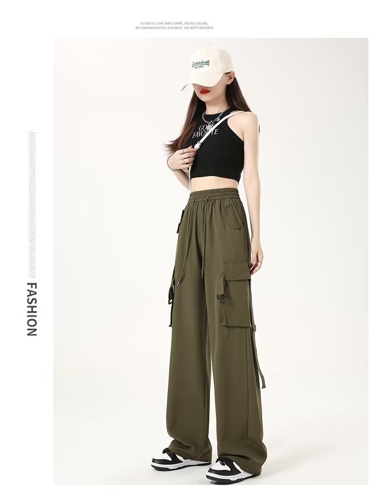 2024 여성용 작업복 바지 얇은 스포츠 바지 여성용 스트레이트 등산 캐주얼 와이드 팬츠 기능성 스타일 약간의 신축성