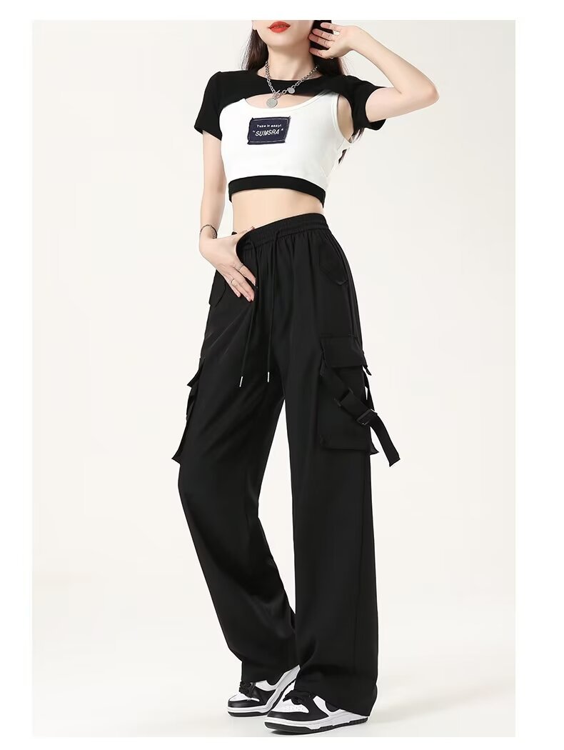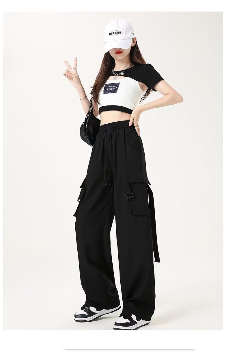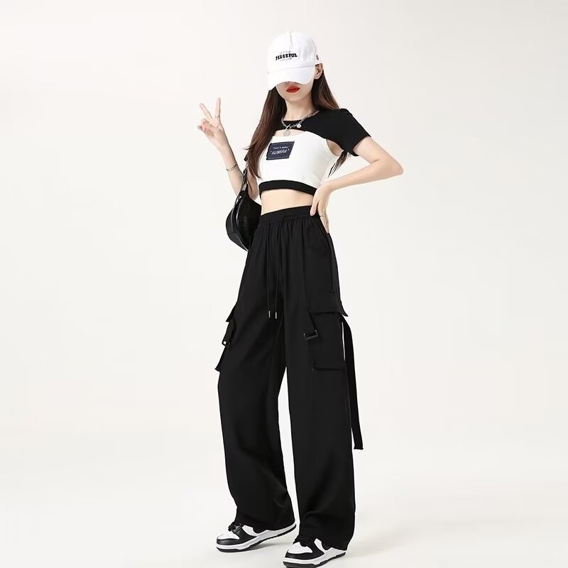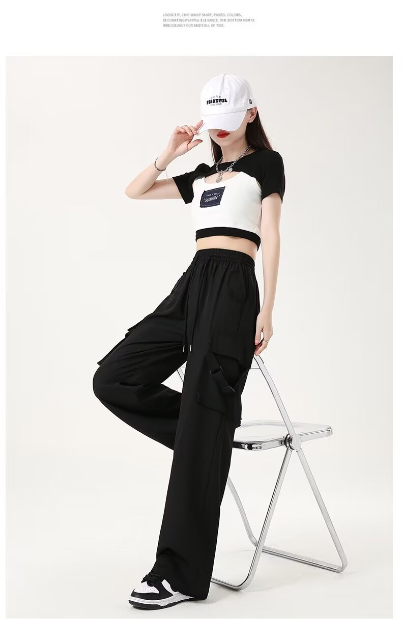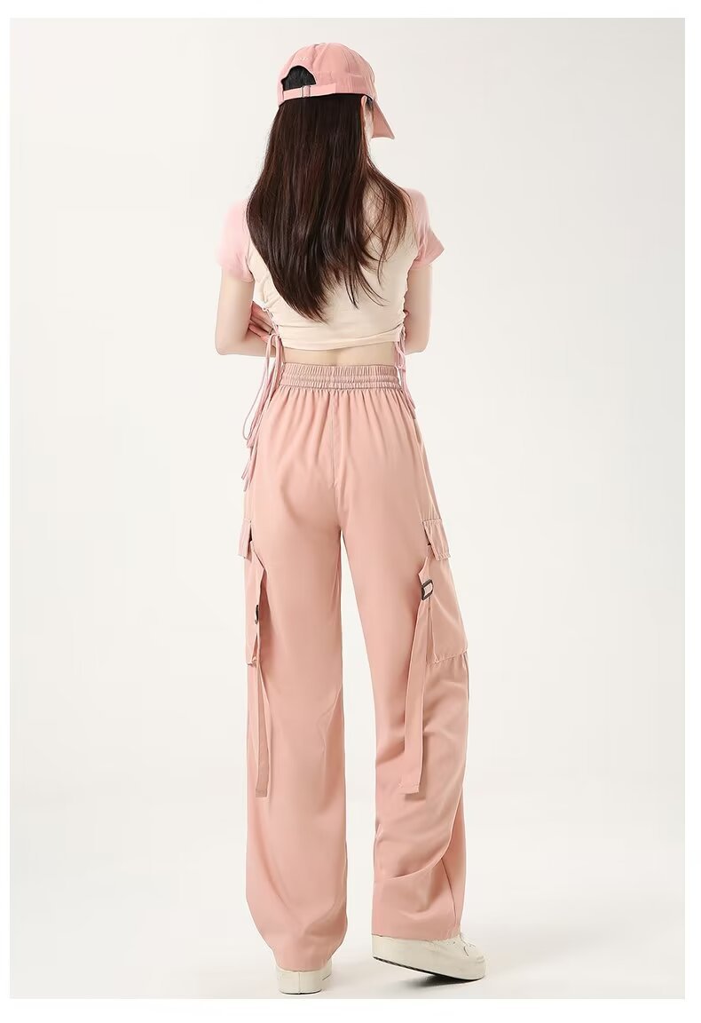2024 여성용 작업복 바지 얇은 스포츠 바지 여성용 스트레이트 등산 캐주얼 와이드 팬츠 기능성 스타일 약간의 신축성