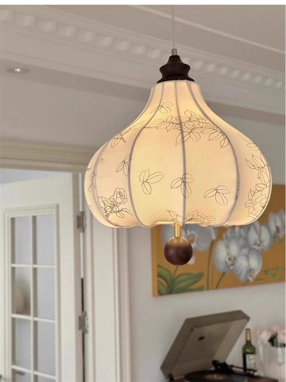 레트로 프랑스 스타일의 침실 직물 작은 샹들리에 인쇄 중간 고대 거실 식당 바 단단한 나무 망토 룸 램프