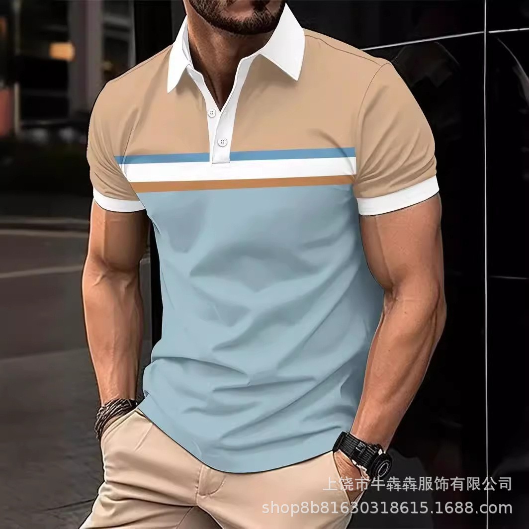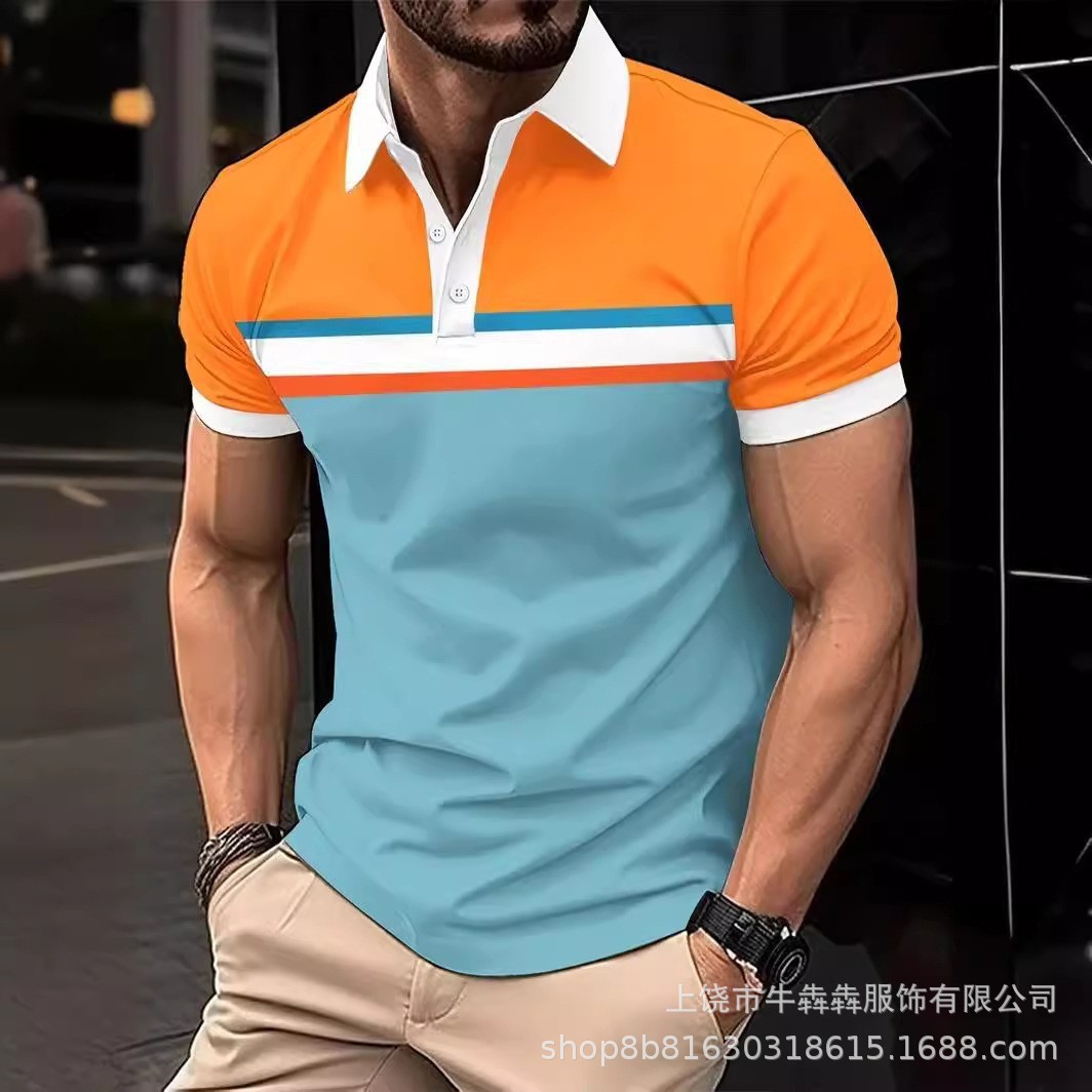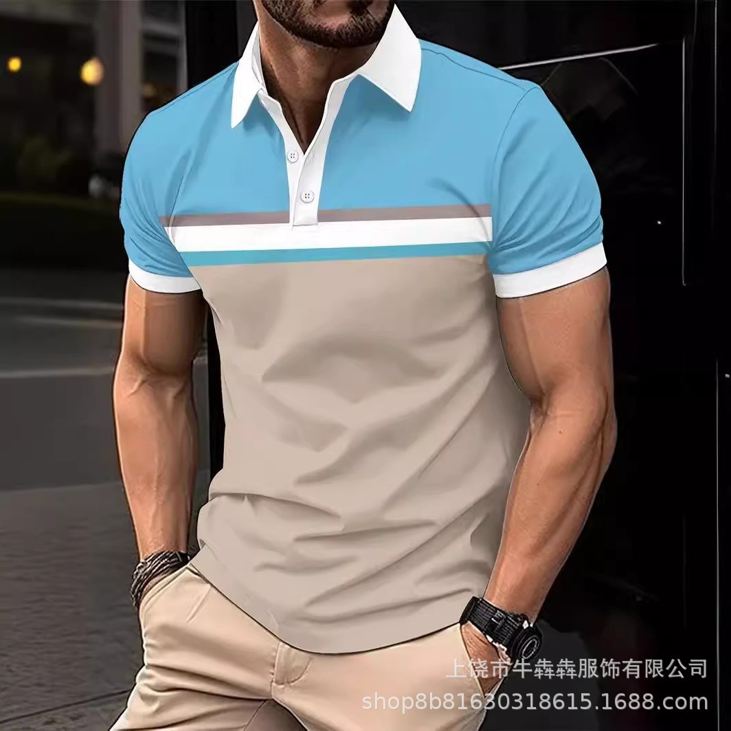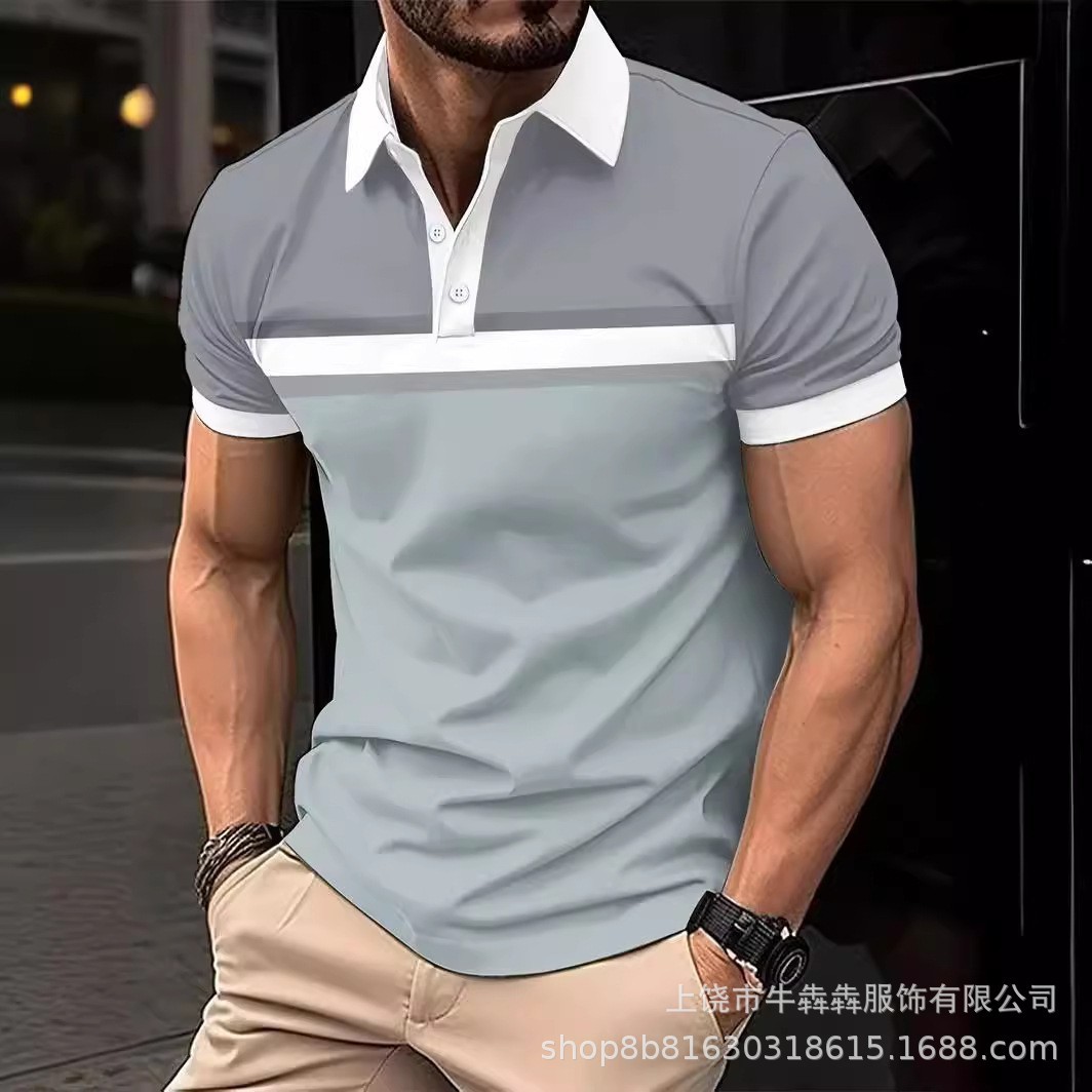 2024 아마존 새로운 국경 남성 캐주얼 폴로 셔츠 컬러 블록 레이저 버튼 반팔 티셔츠 탑