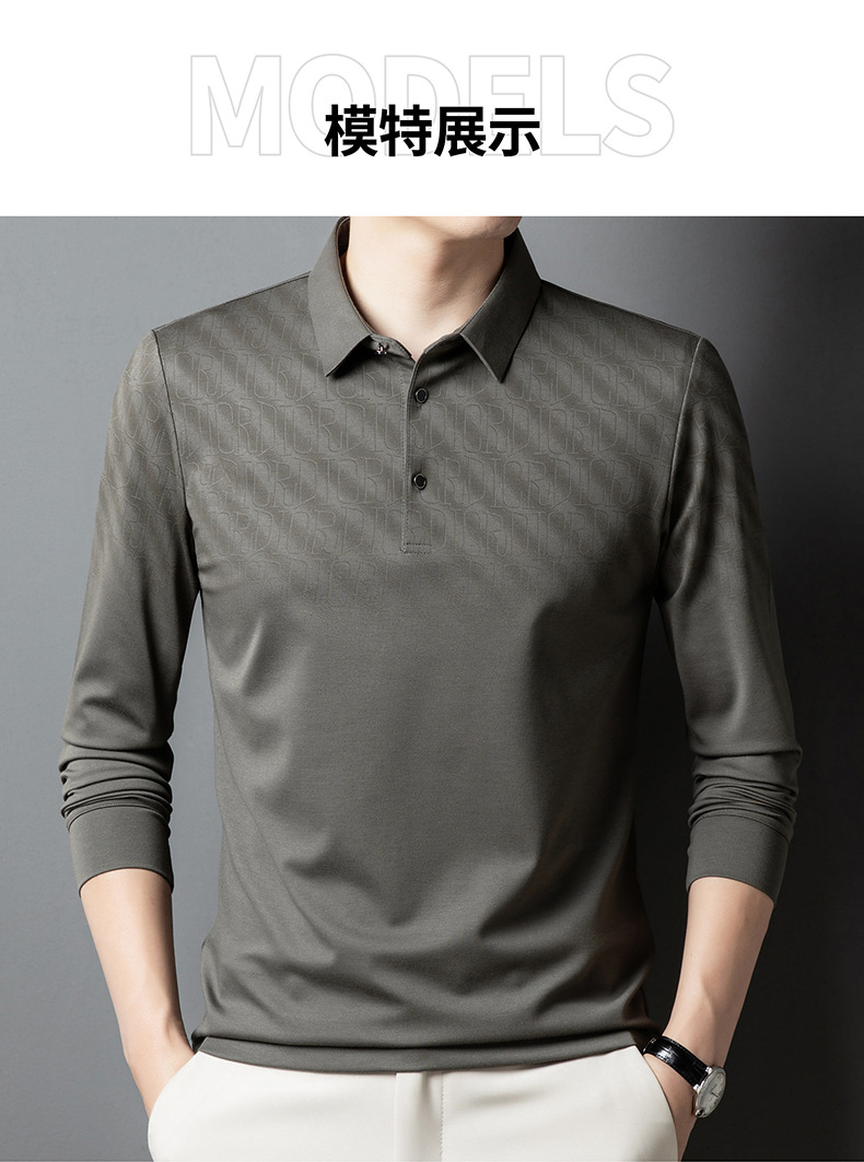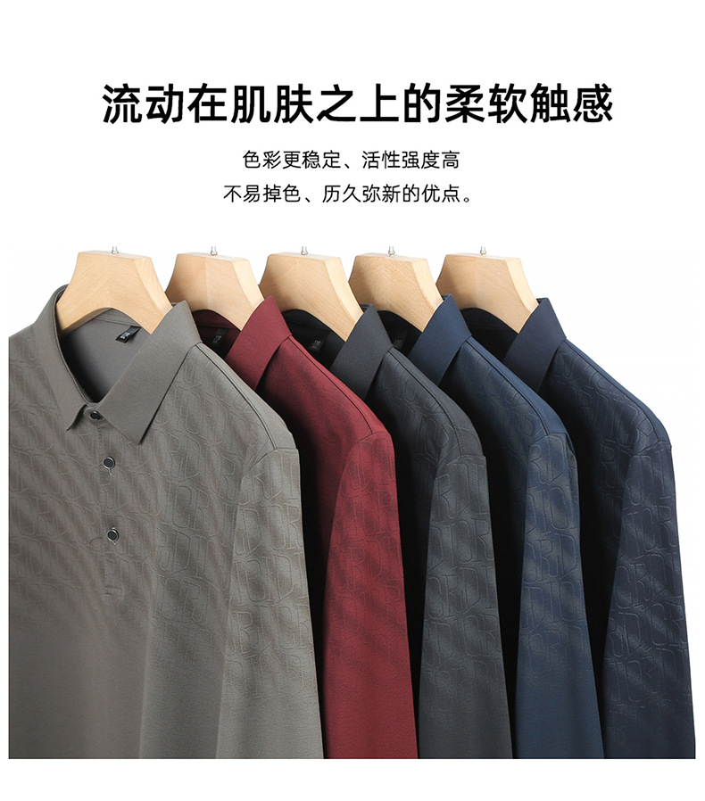 봄과 가을 새로운 남성 추적없는 긴팔 자카드 티셔츠 비즈니스 캐주얼 옷깃 폴로 셔츠 올 매치 탑스토어 가기