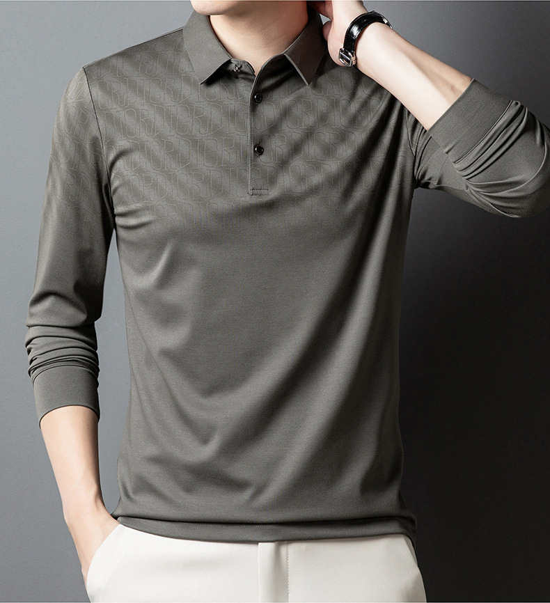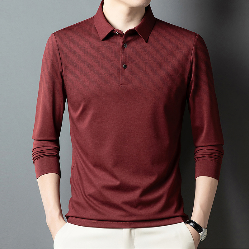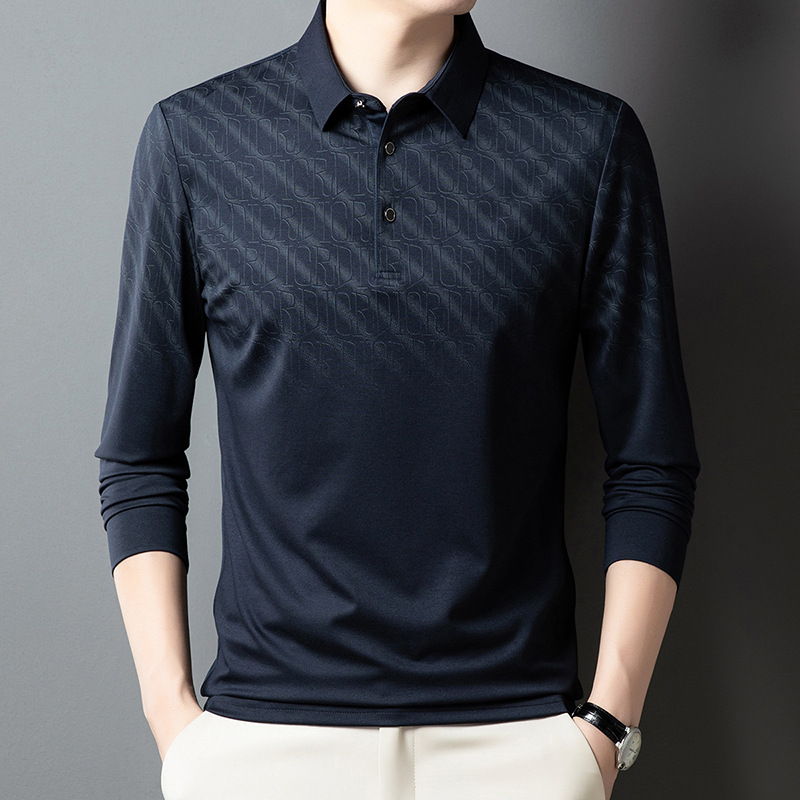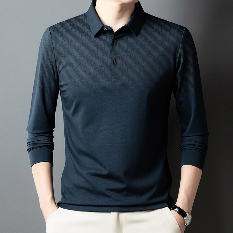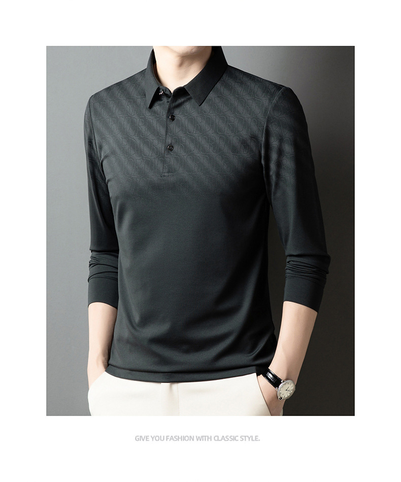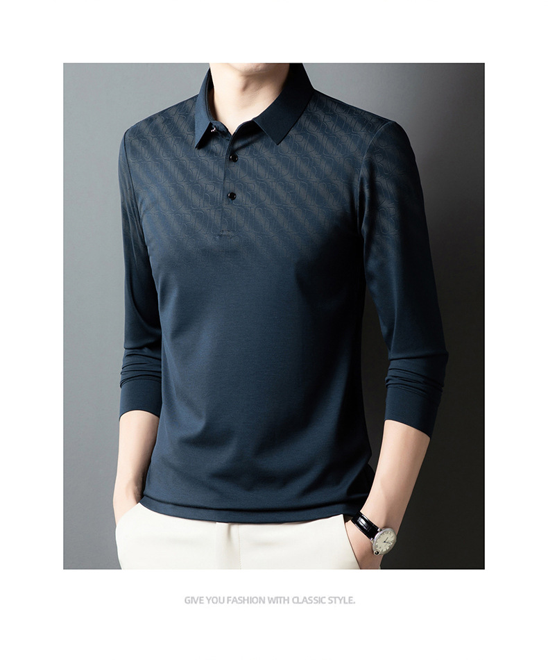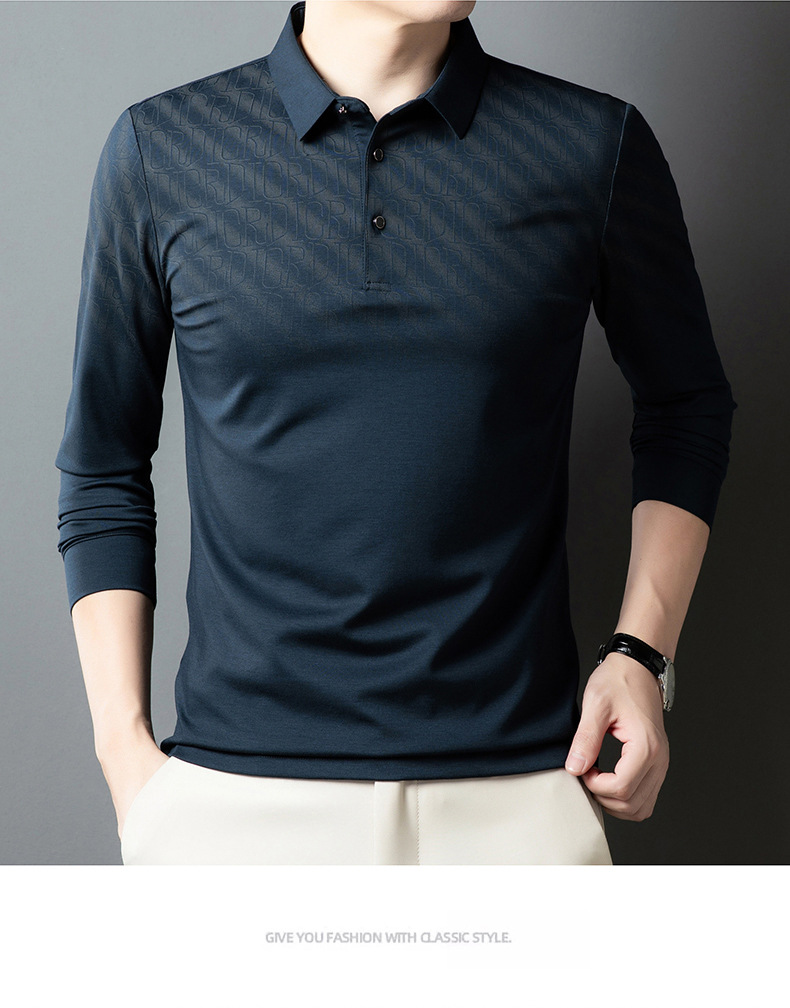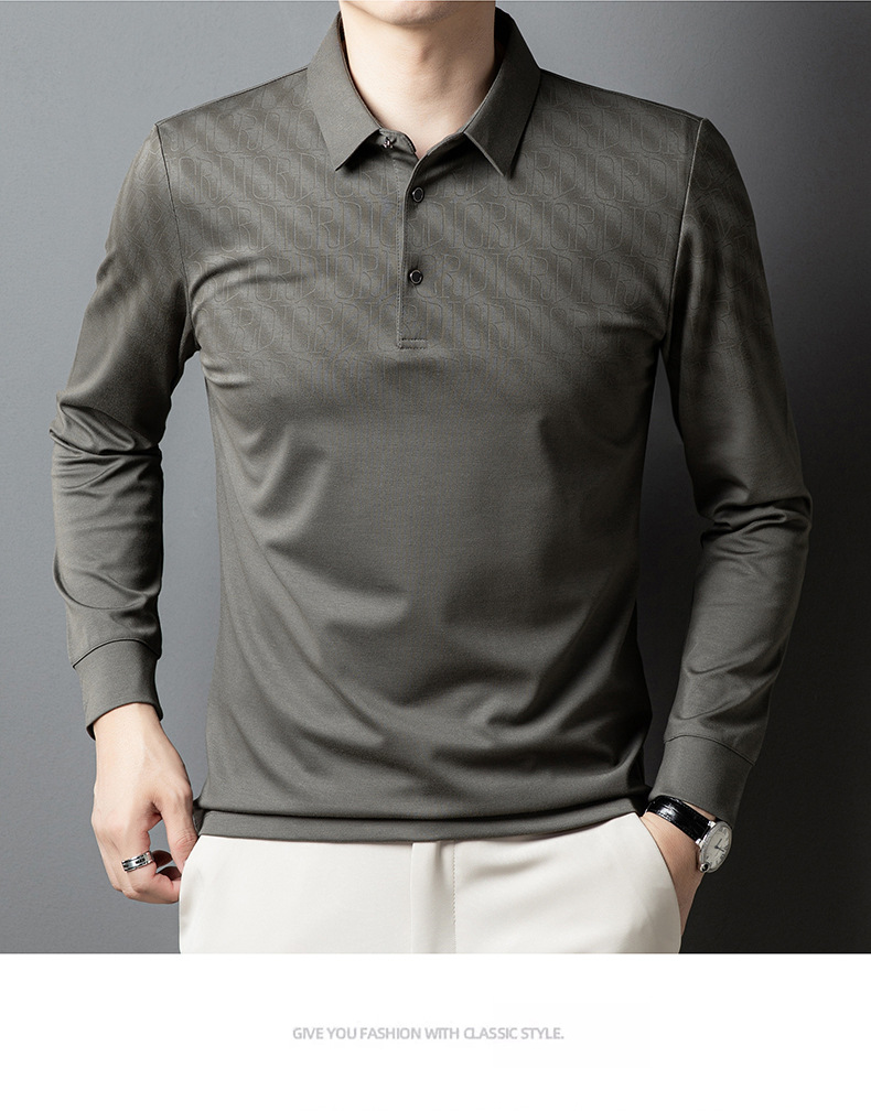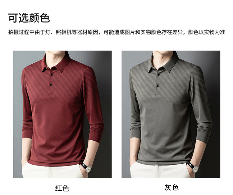 봄과 가을 새로운 남성 추적없는 긴팔 자카드 티셔츠 비즈니스 캐주얼 옷깃 폴로 셔츠 올 매치 탑