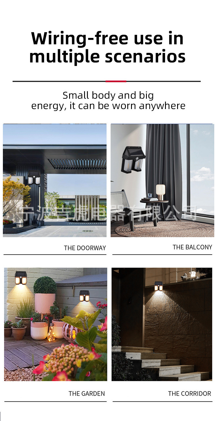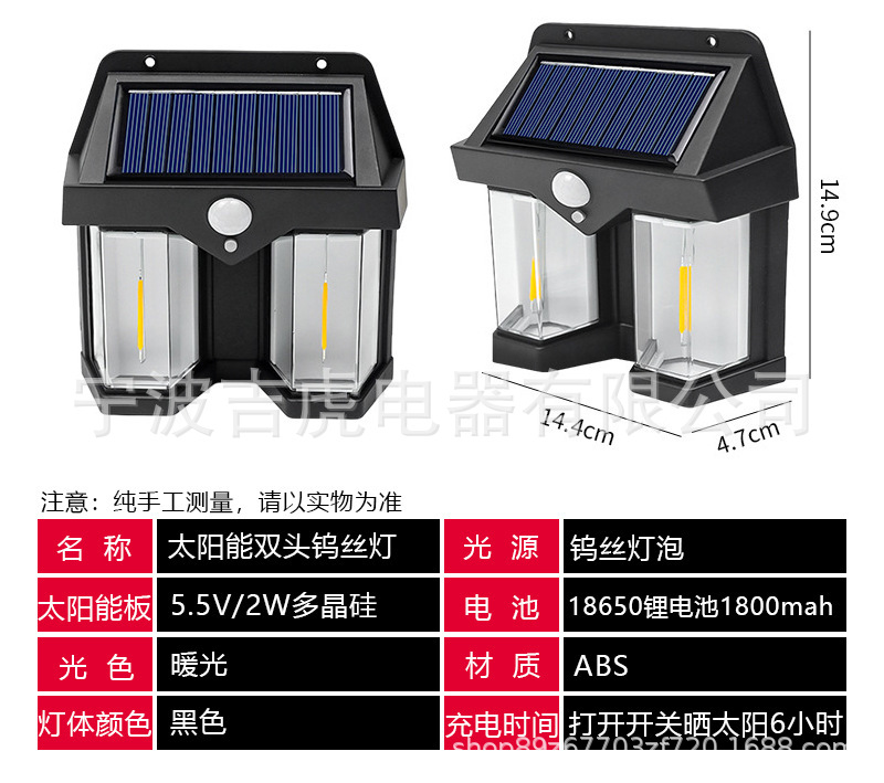 새로운 광장 야외 태양 텅스텐 와이어 벽 램프 인체 유도 3 모드 정원 야외 방수 LED 야간 조명