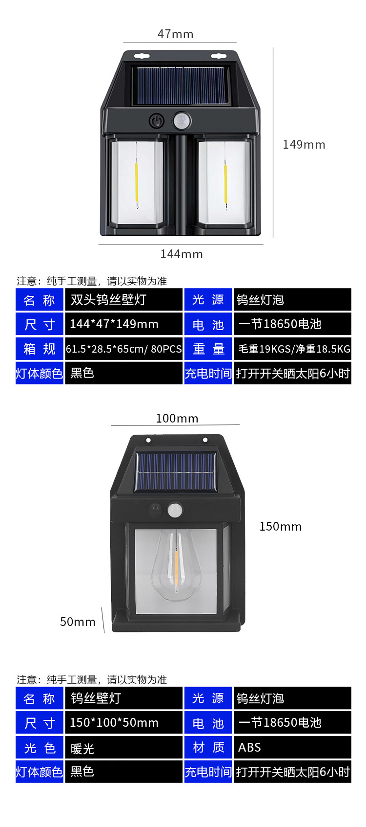 새로운 광장 야외 태양 텅스텐 와이어 벽 램프 인체 유도 3 모드 정원 야외 방수 LED 야간 조명스토어 가기