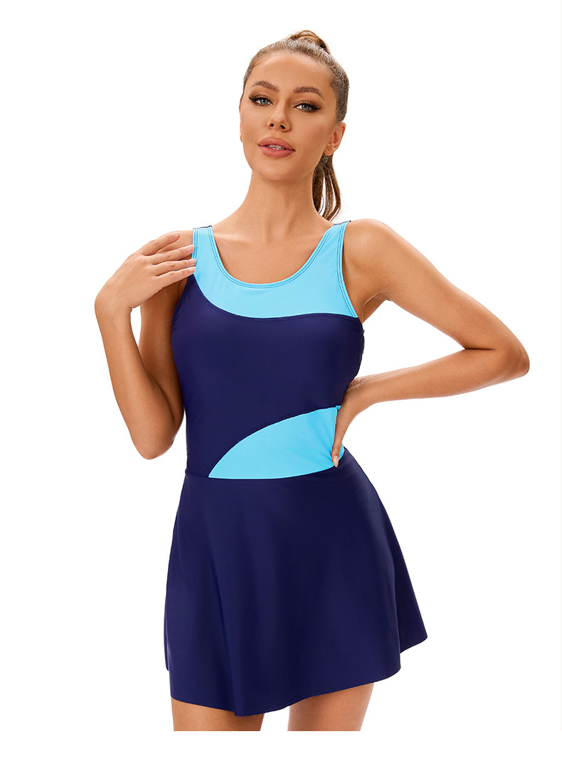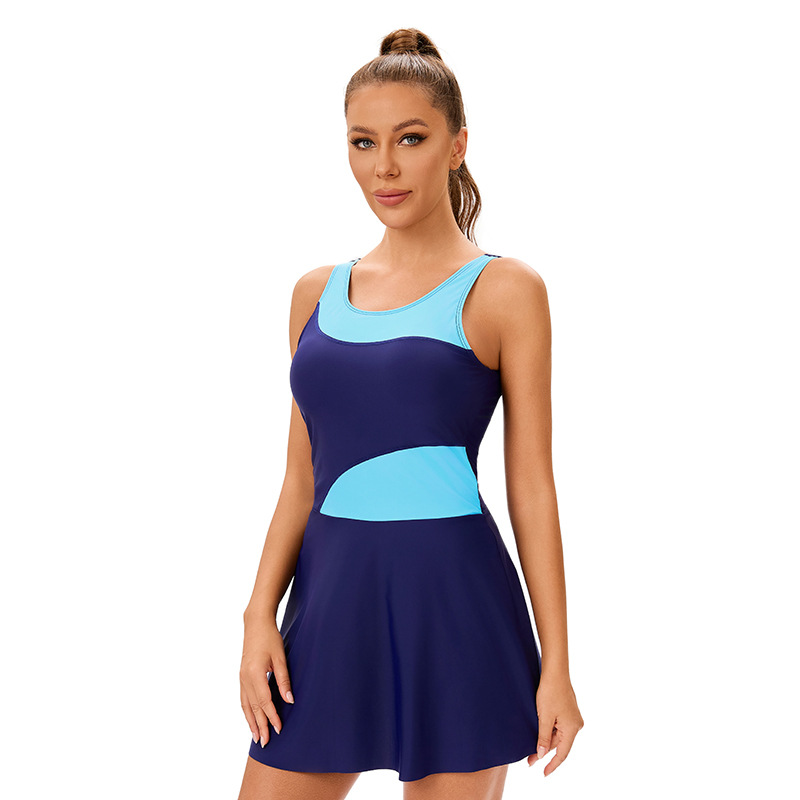 대외 무역 유럽과 미국의 컬러 매칭 보수적 배꼽 분할 수영복 여성 국경 간 폭발 섹시한 백리스 삼각형 스커트 수영복