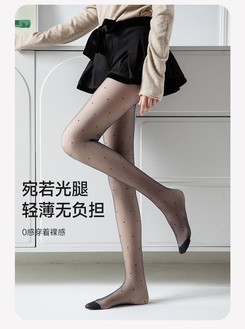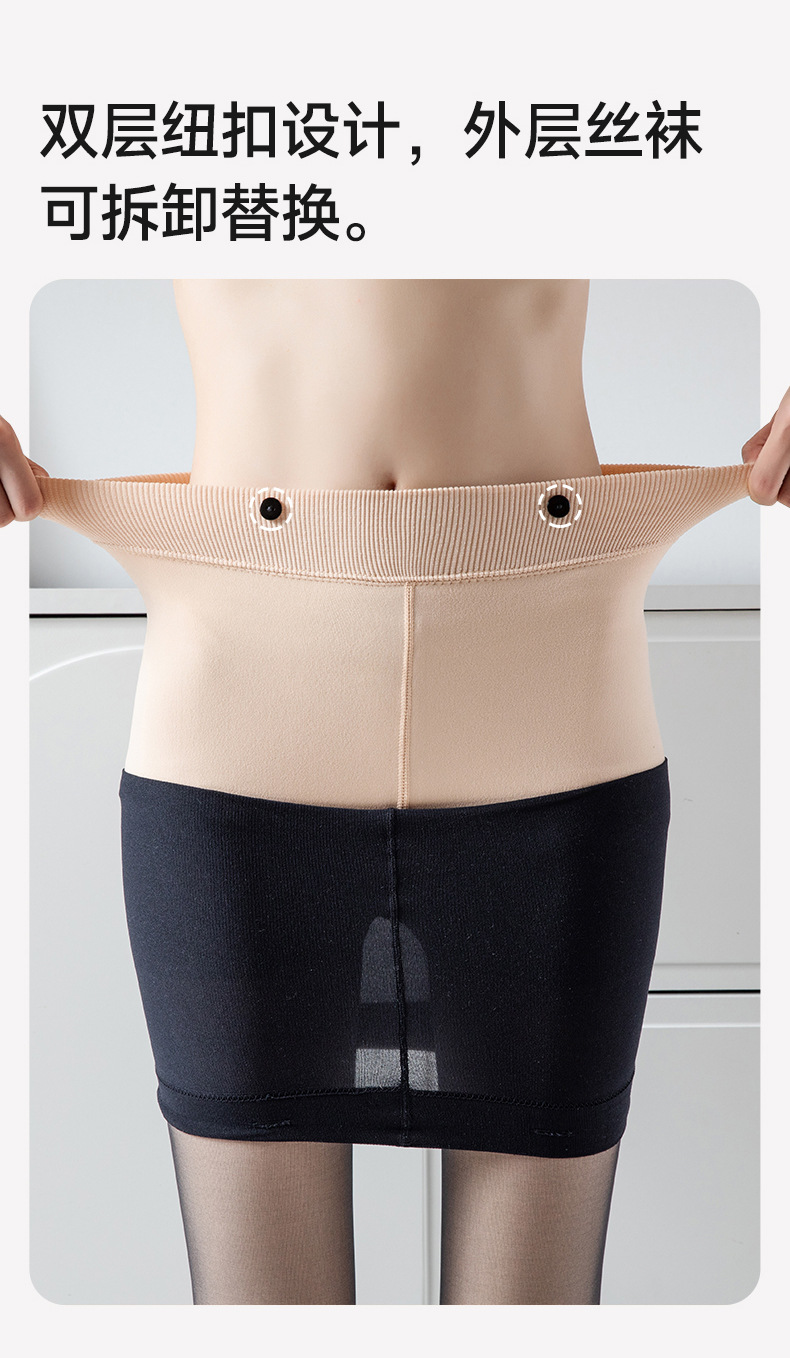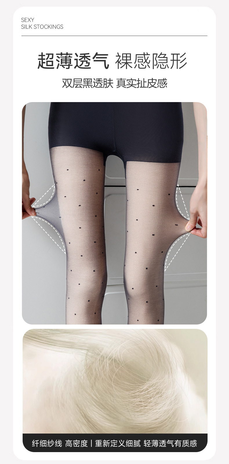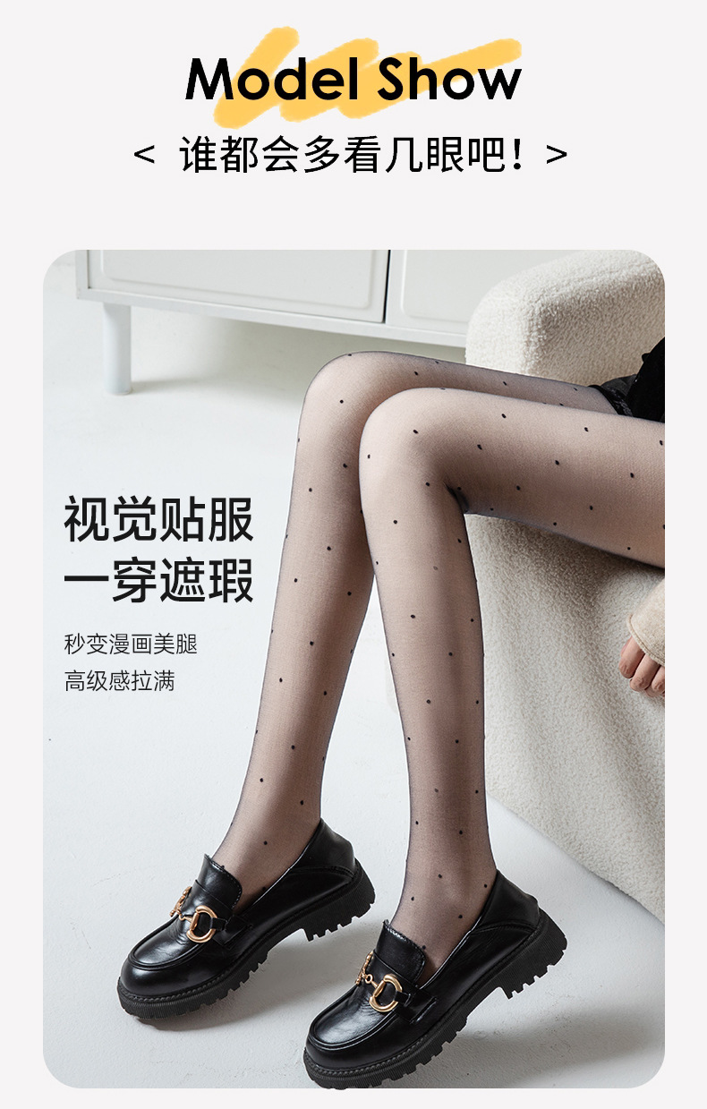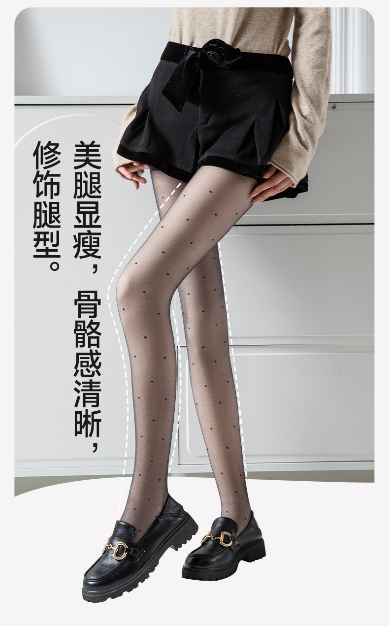 시우안 이중 레이어 플리스 도트 무늬 블랙 실크 레그 워머 버튼형 탈부착 가능 가을 겨울 보온 투명 팬티스타킹