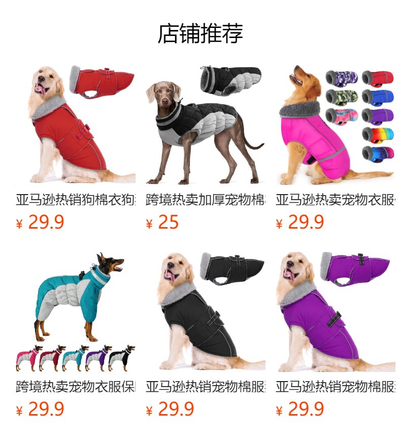 국경을 넘어 인기 있는 애완동물 옷, 강아지 겨울 방풍 보온 면옷, 플러스 벨벳과 두꺼운 보온 면옷스토어 가기