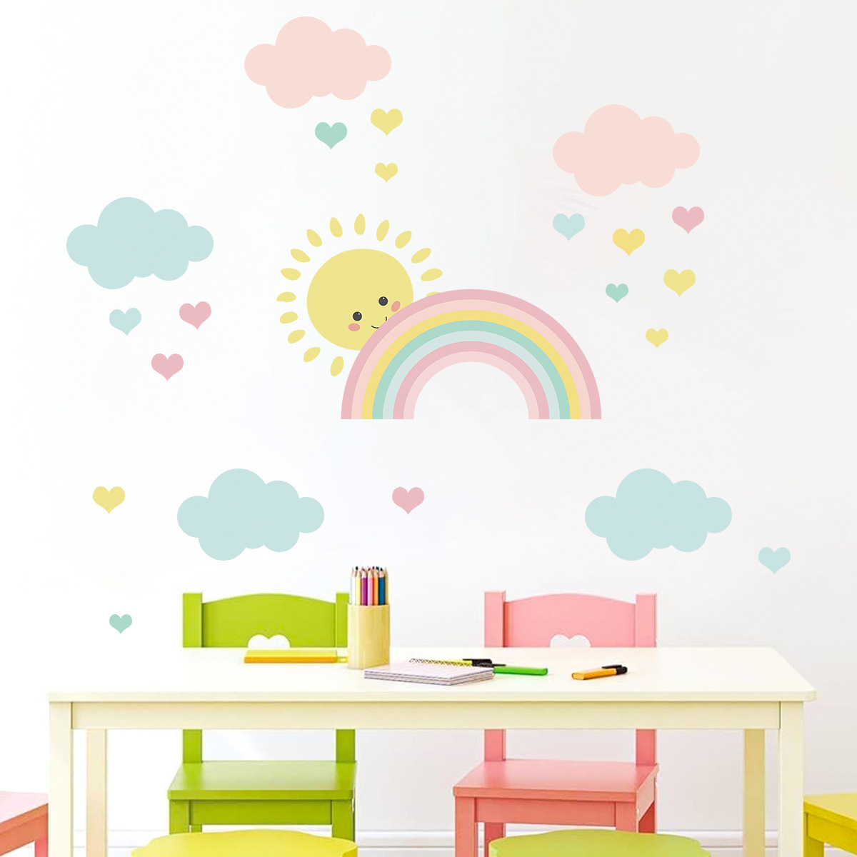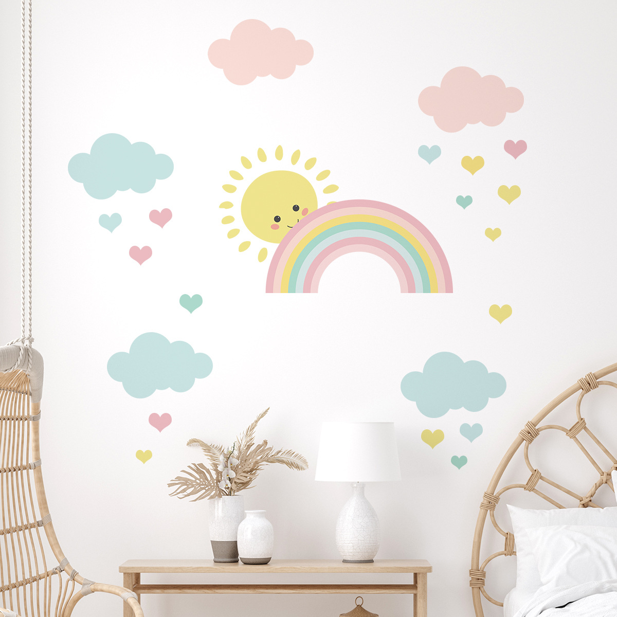 만화 색 구름 무지개 태양 자기 접착 벽 스티커 귀여운 어린이 방 침실 장식 스티커 ZN0889F